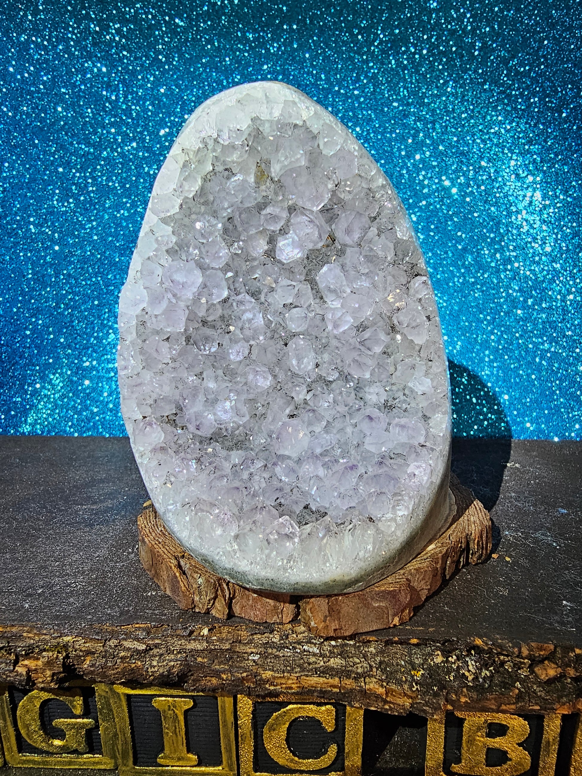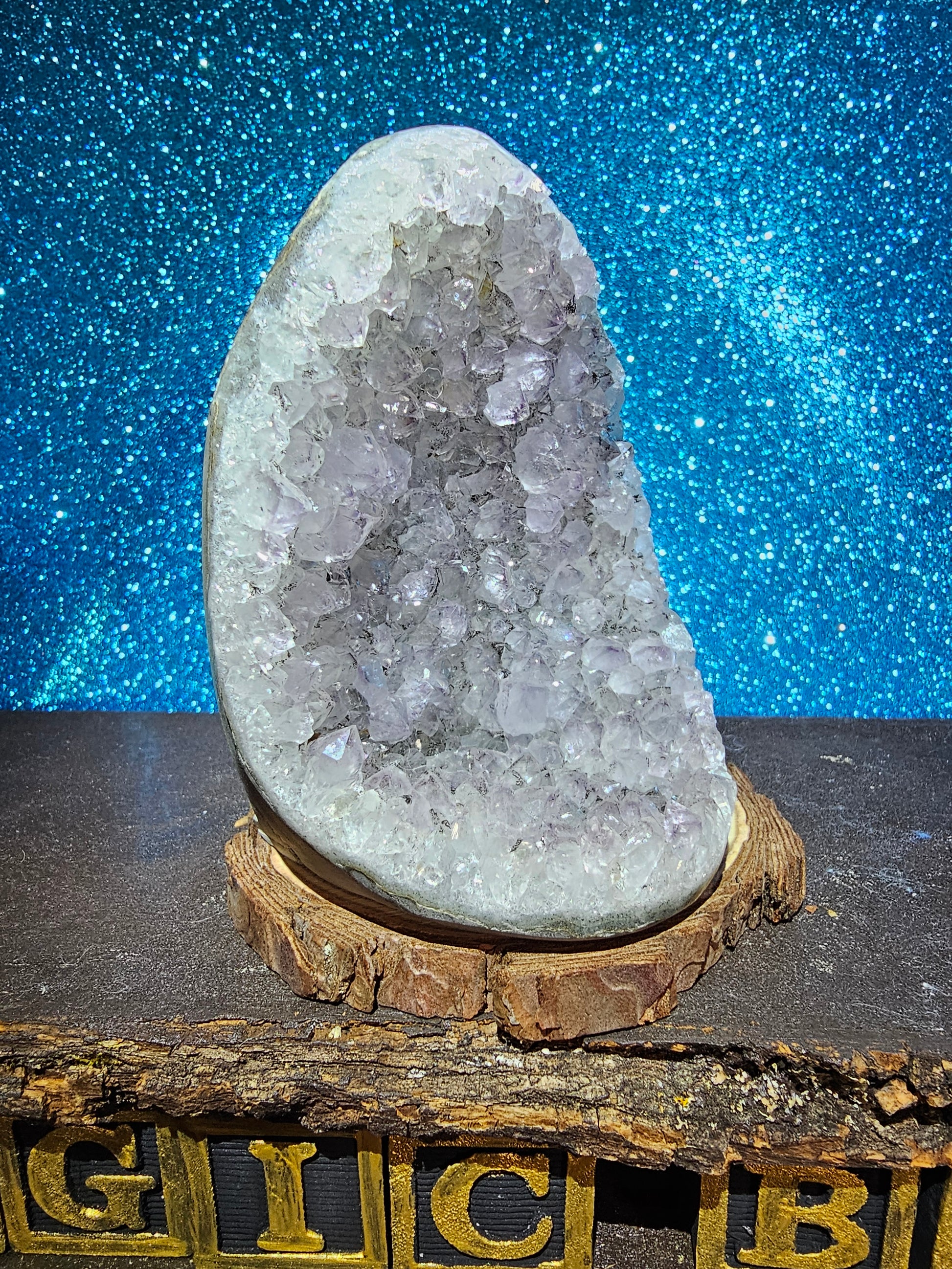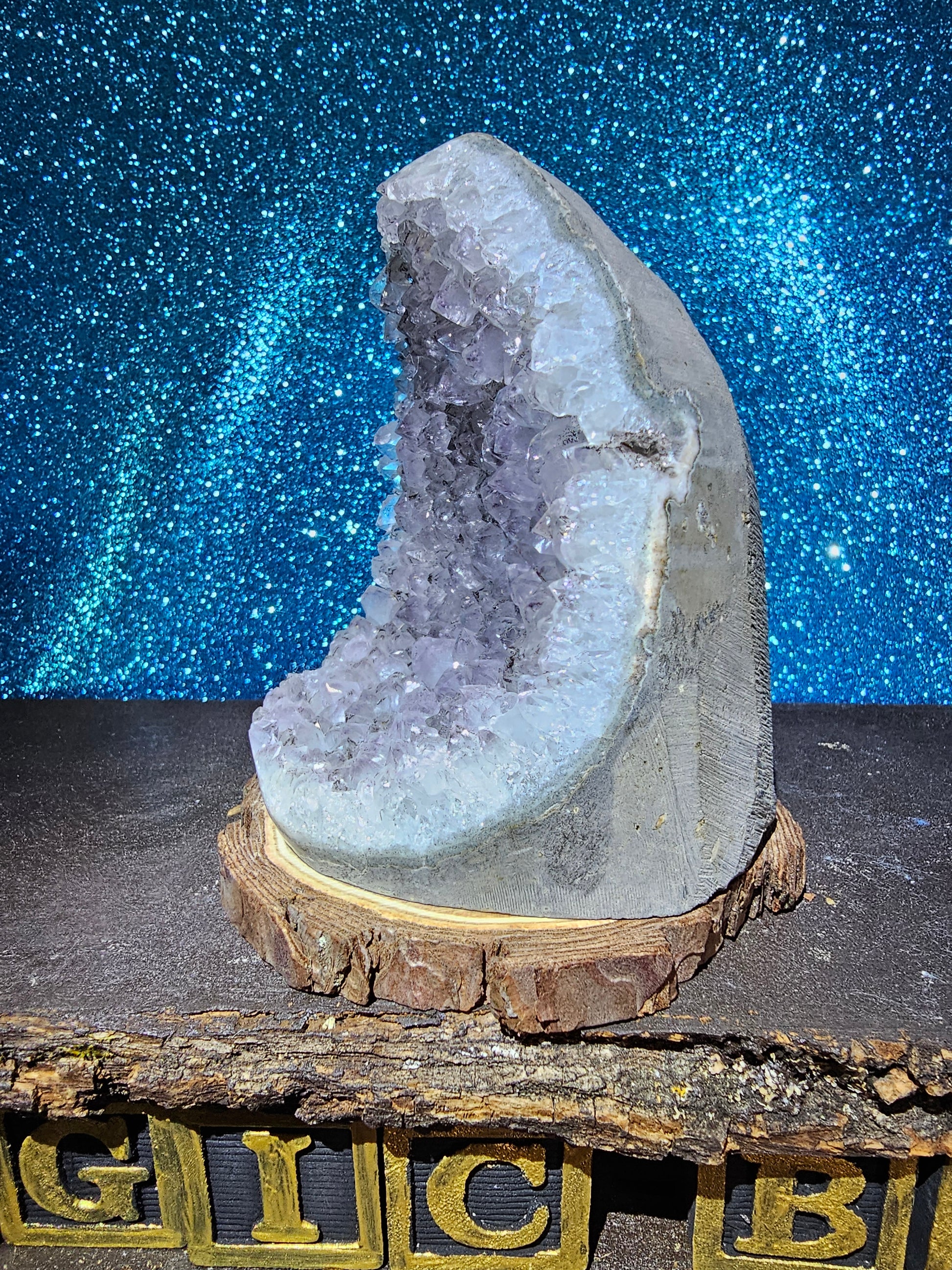 Introducing the Amethyst Geode: Experience the enchanting beauty of nature's marvels with our exquisite Amethyst Geode. This remarkable product showcases the captivating allure of amethyst crystals in a stunning, one-of-a-kind display piece.