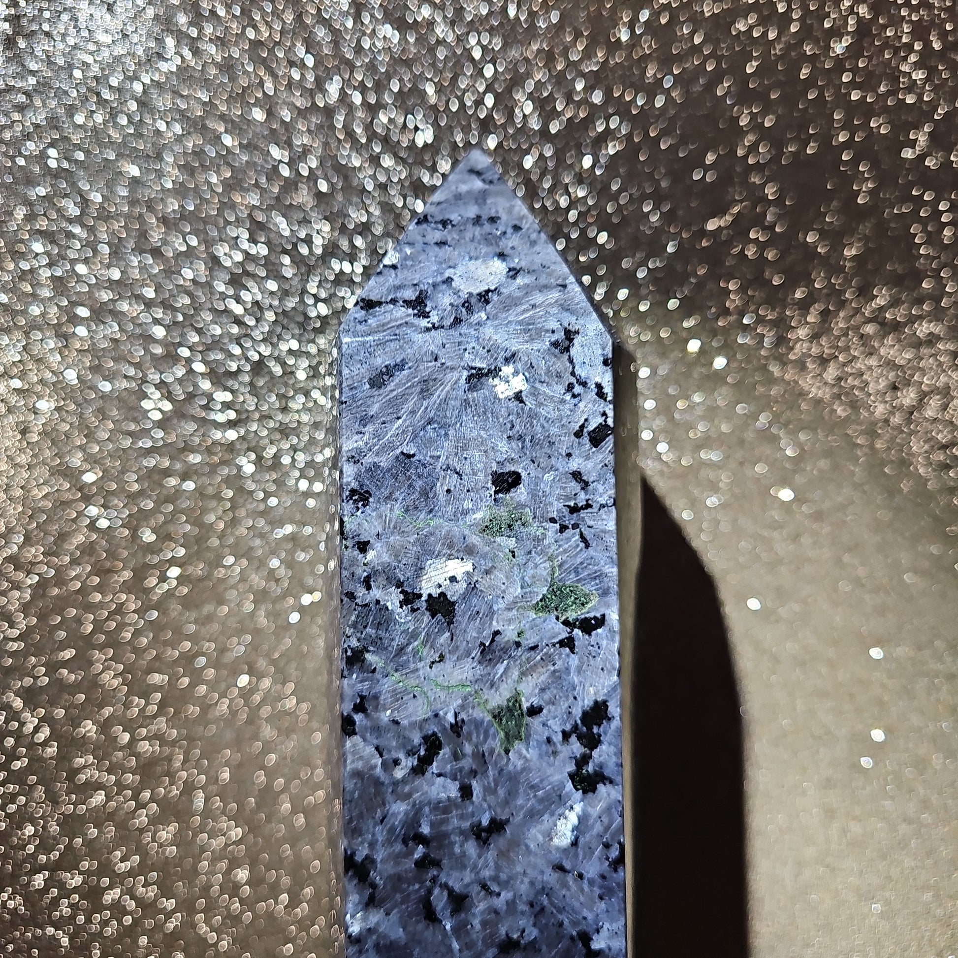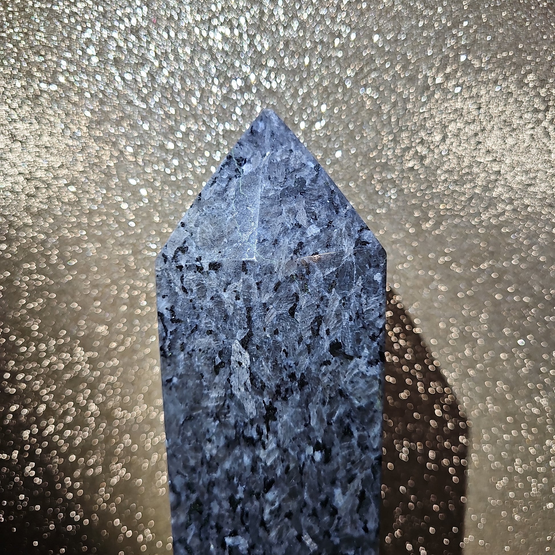 Elevate your space with the commanding presence of our 10.5lbs 19.5in Larvikite Tower. Crafted from the finest Larvikite, this towering masterpiece stands as a testament to both natural beauty and earthly strength.