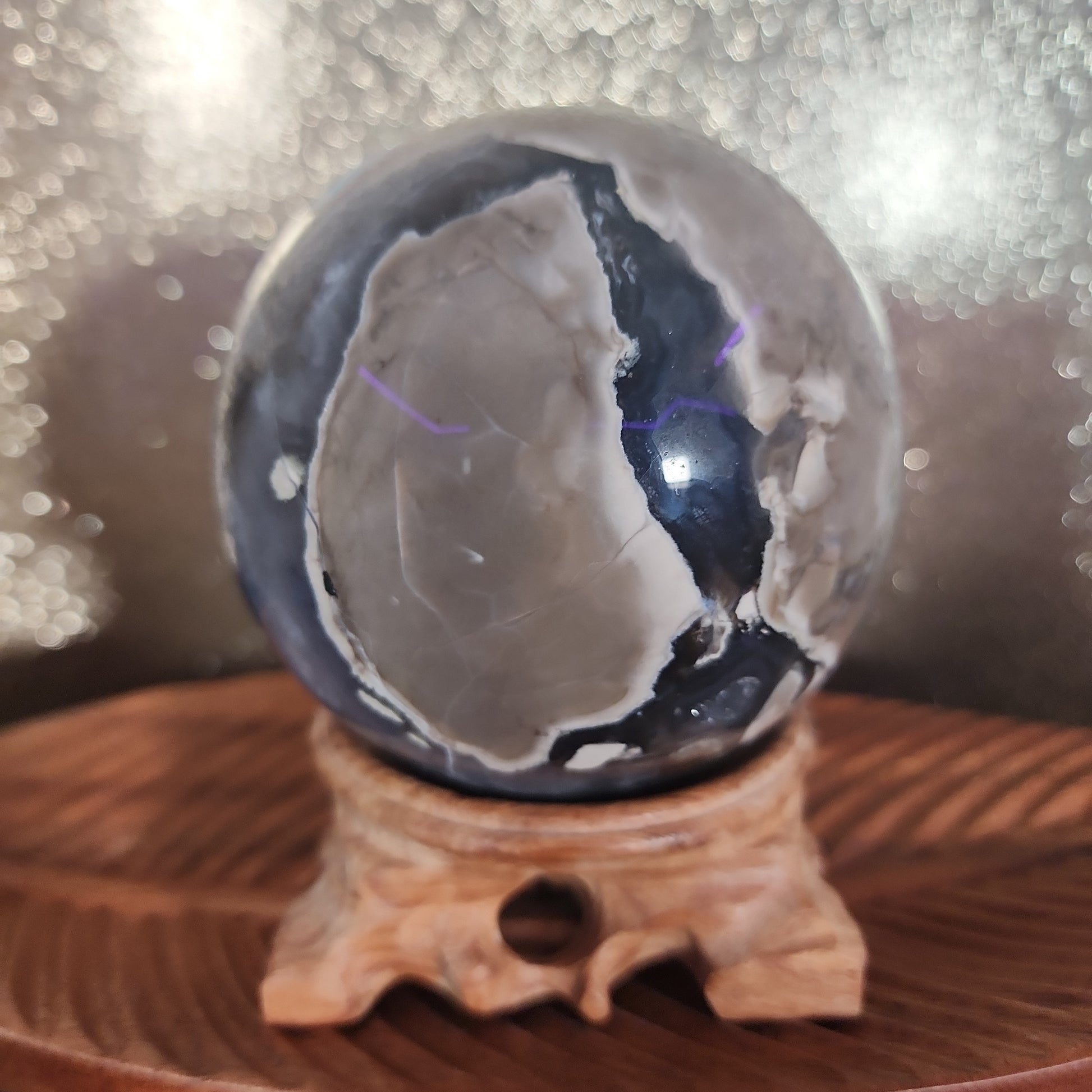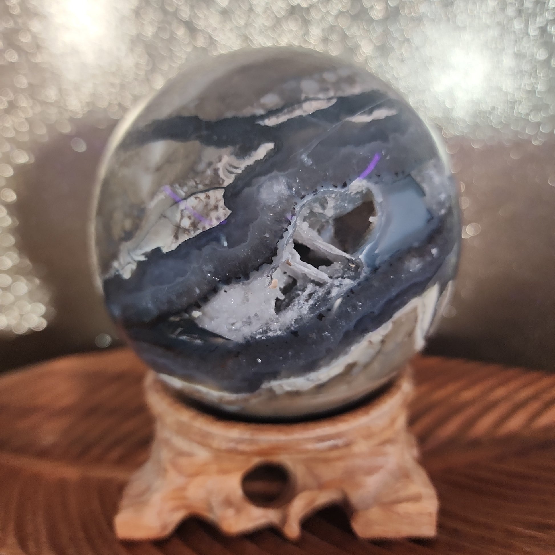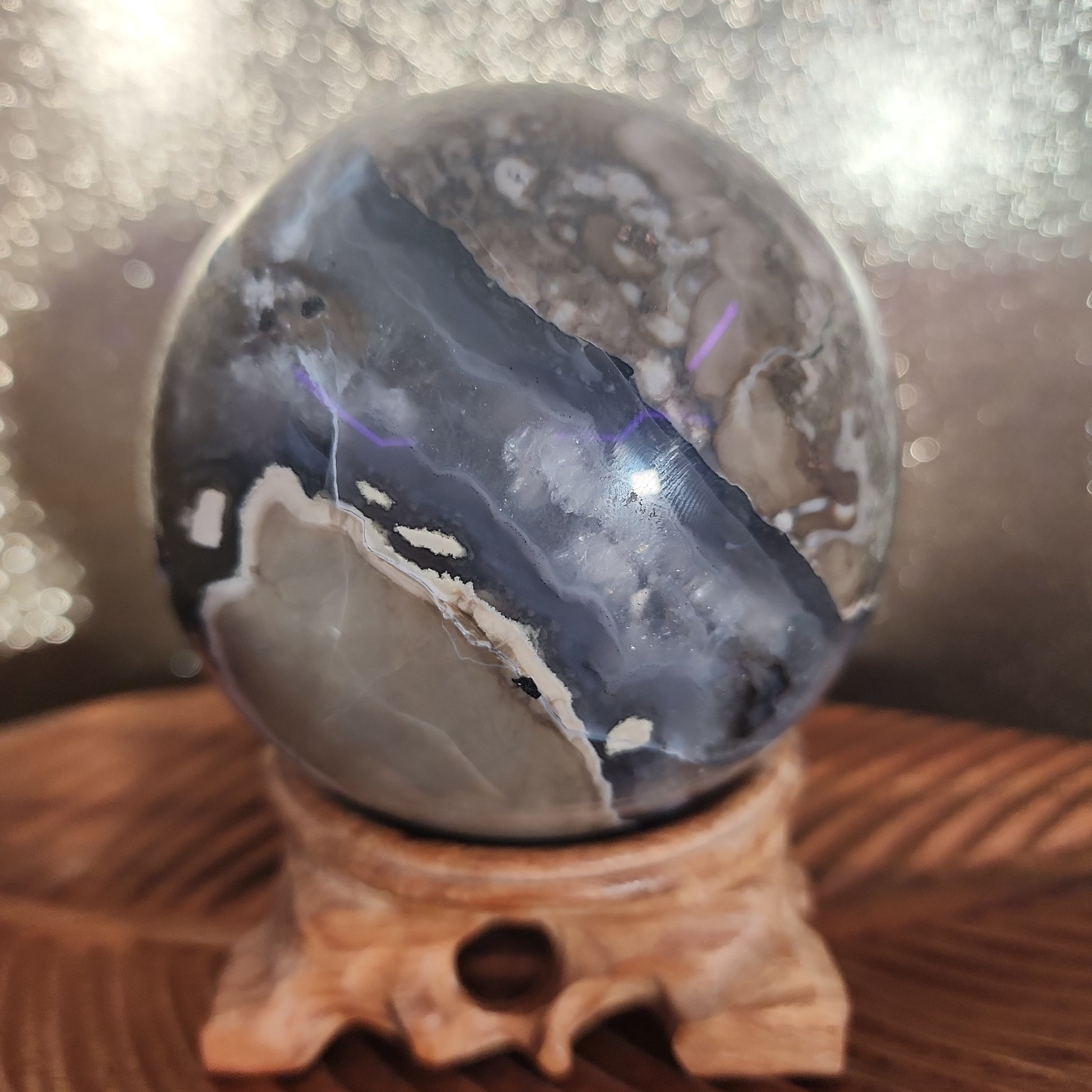 Introducing the Volcanic Agate Sphere, a captivating and unique gemstone creation that combines the raw power of volcanic energy with the mesmerizing beauty of agate. Crafted with precision and care, this exquisite sphere is a testament to the natural wonders of the Earth.