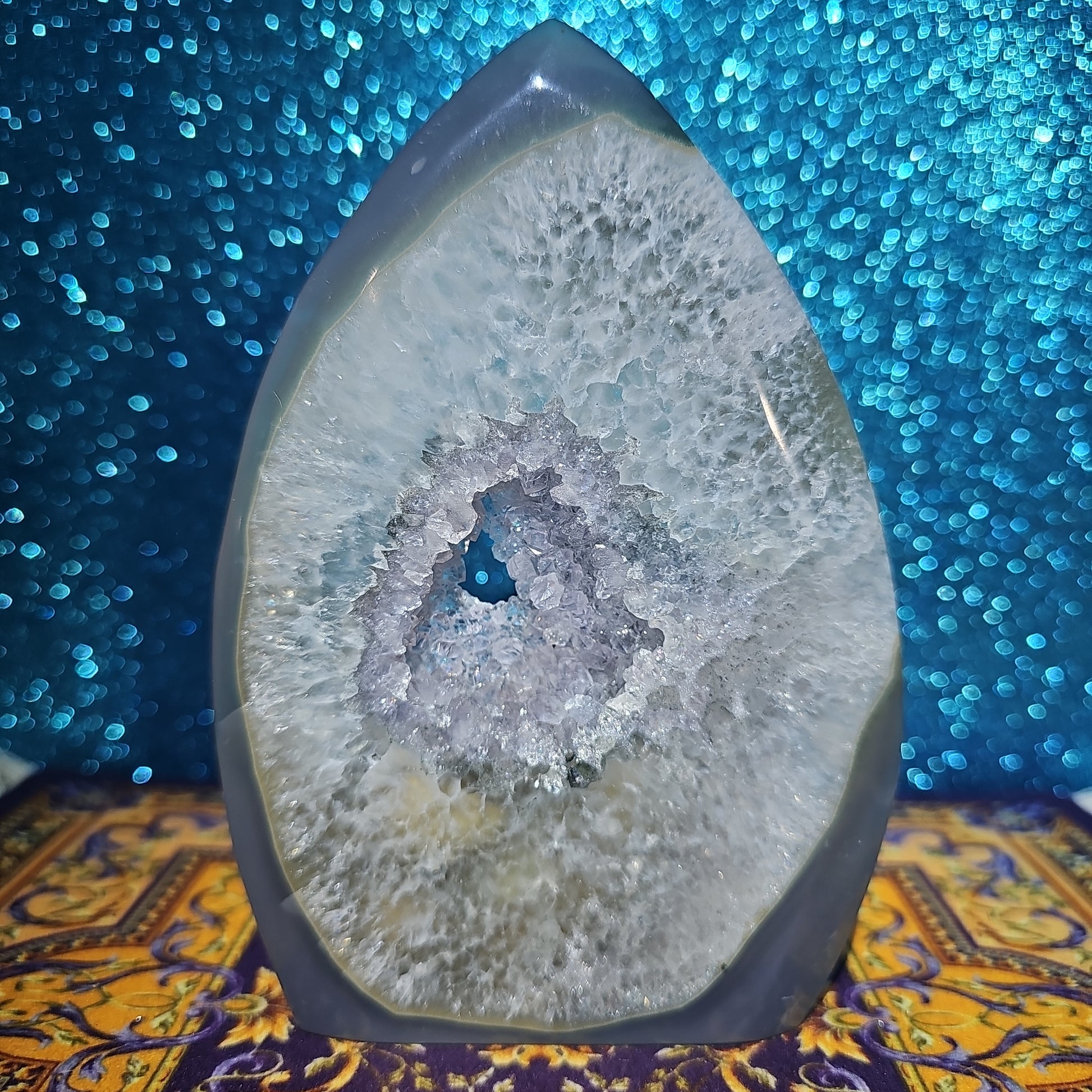 Elevate your interior decor with the captivating Agate Crystal Spade-Shaped Ornament. This meticulously crafted piece combines the allure of natural agate crystal with the iconic silhouette of a spade, creating a truly unique and enchanting decorative accent.