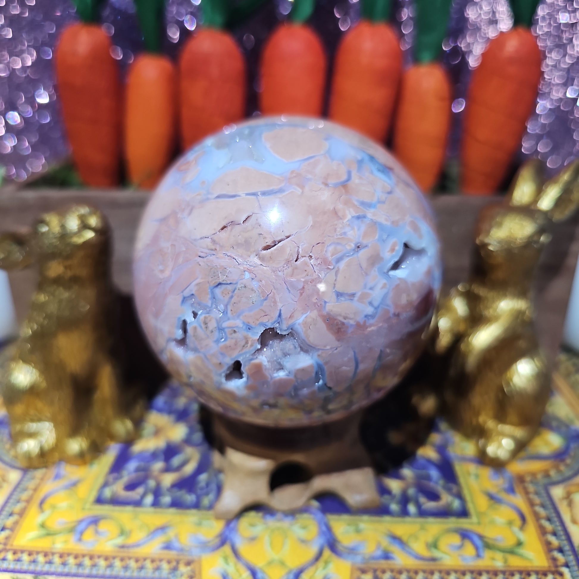 Introducing our exquisite Agate Sphere, a marvel of nature's artistry and a testament to the beauty found within the Earth's depths. Handcrafted with precision and care, this spherical gemstone showcases the captivating allure of agate in all its glory.