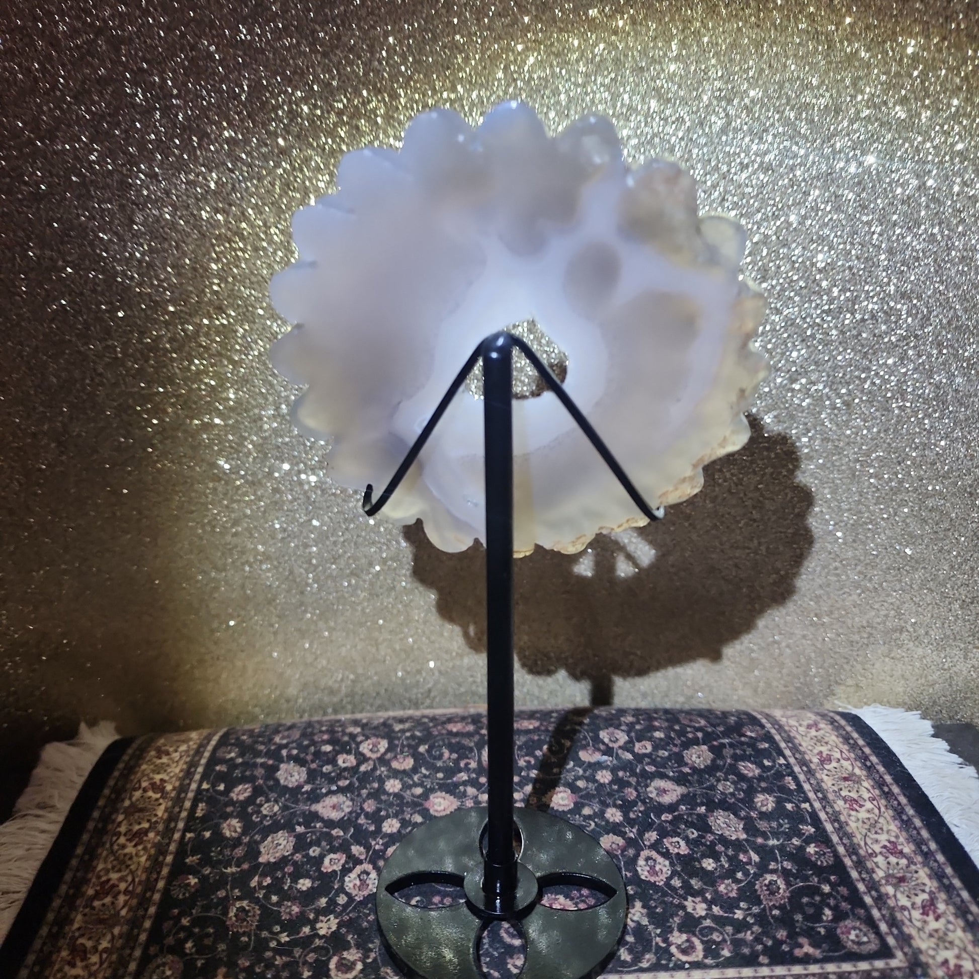 Introducing our Agate Sunflower with Stand, a radiant testament to the exquisite beauty of nature's sunniest bloom. This stunning sunflower sculpture is meticulously crafted from premium agate, with its petals and center expertly carved to capture the intricate details and vibrant hues found in these iconic flowers. The agate's warm and earthy tones provide the perfect backdrop, highlighting the sunflower's natural allure. The sculpture is gracefully presented on a matching agate stand, offering both stability and a touch of artistic flair. Whether adorning your living space as a decorative centerpiece, symbolizing the vitality of sunflowers, or serving as a thoughtful gift for those who appreciate the beauty of nature, our Agate Sunflower with Stand brings the warmth and radiance of the sunflower into your home. Embrace the grounding and harmonizing energies of agate while infusing your environment with the timeless charm of this beloved bloom. Illuminate your space with the cheerful presence of this unique sculpture, a harmonious blend of artistic elegance and the natural world's splendor.