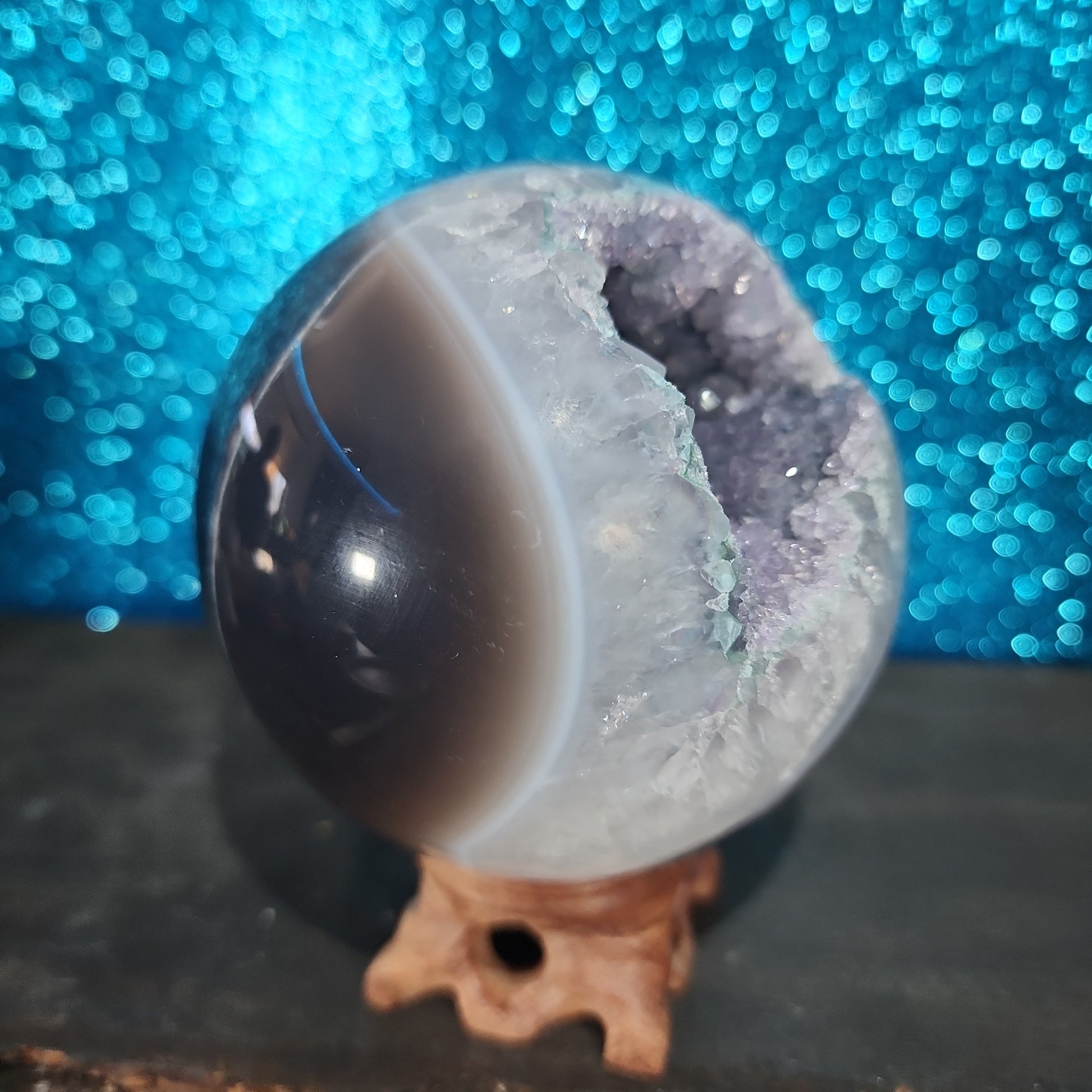 Introducing the Amethyst Agate Sphere – a mesmerizing fusion of elegance and natural beauty. Crafted from exquisite amethyst and agate crystals, this spherical wonder is more than just a decorative piece; it's a captivating work of art and a source of positive energy.