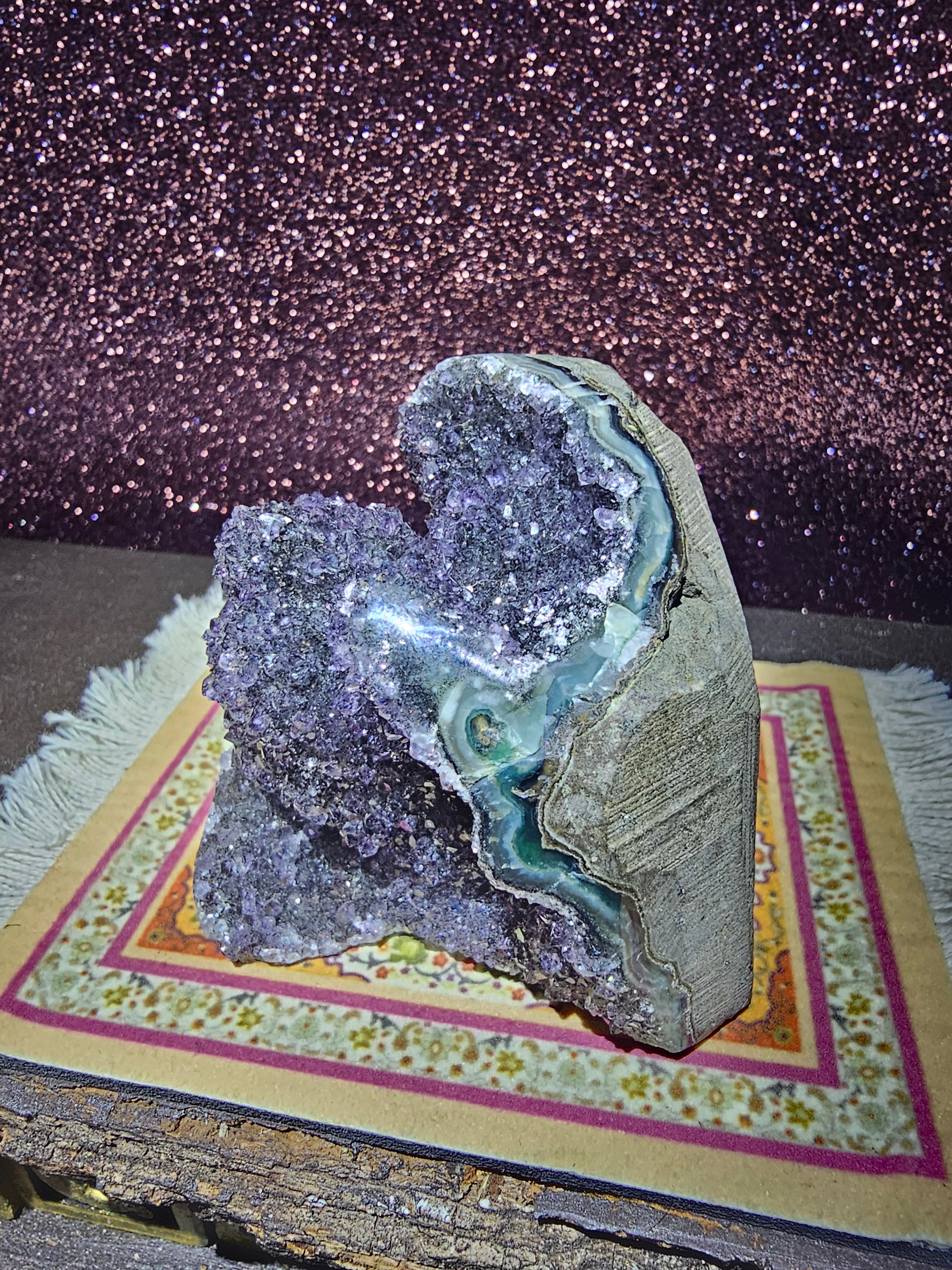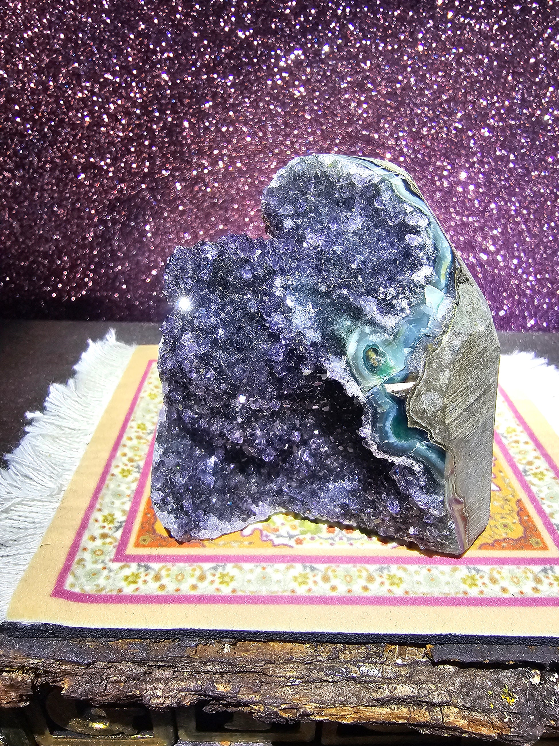 Introducing the Amethyst Geode: Experience the enchanting beauty of nature's marvels with our exquisite Amethyst Geode. This remarkable product showcases the captivating allure of amethyst crystals in a stunning, one-of-a-kind display piece.