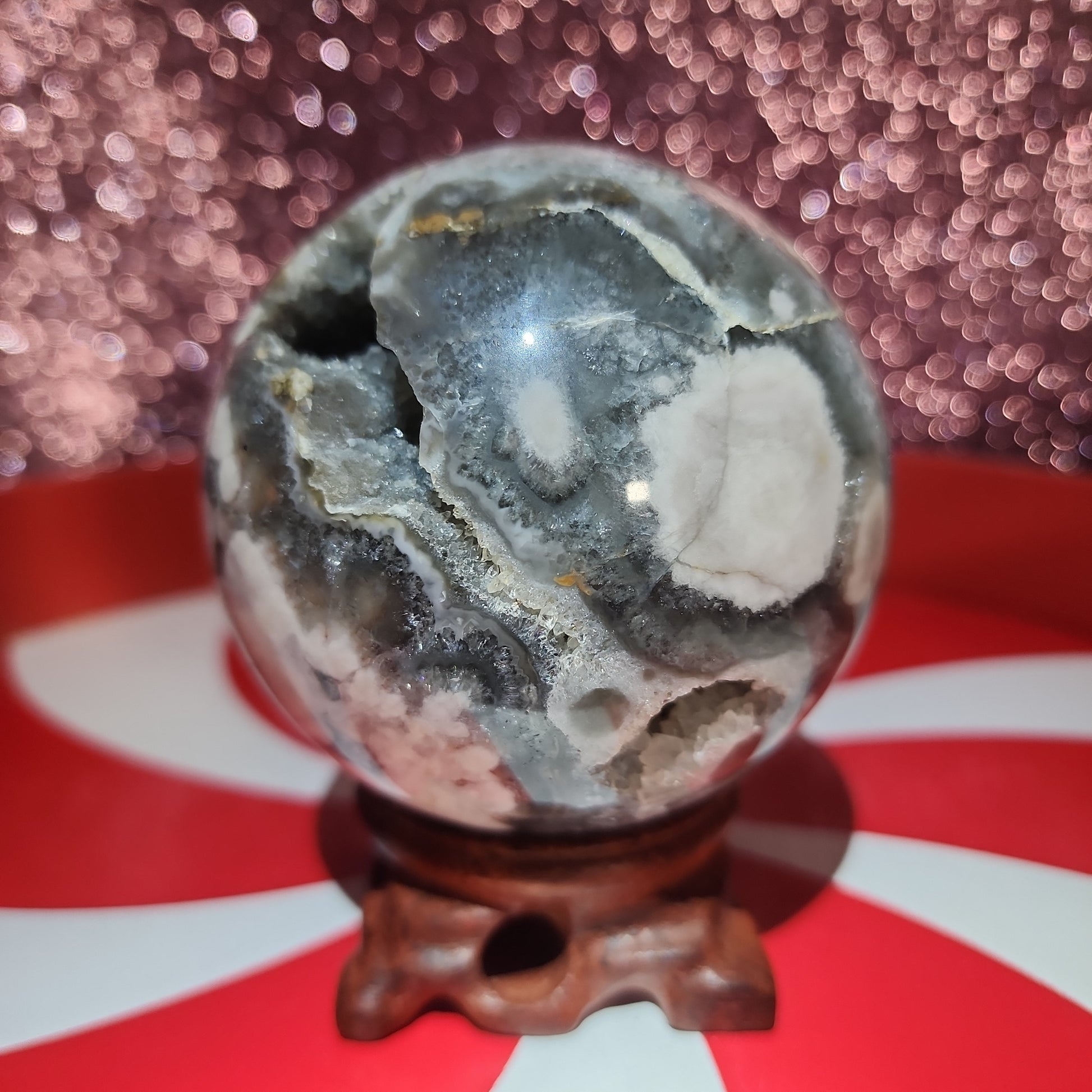 Black Flower Agate Sphere