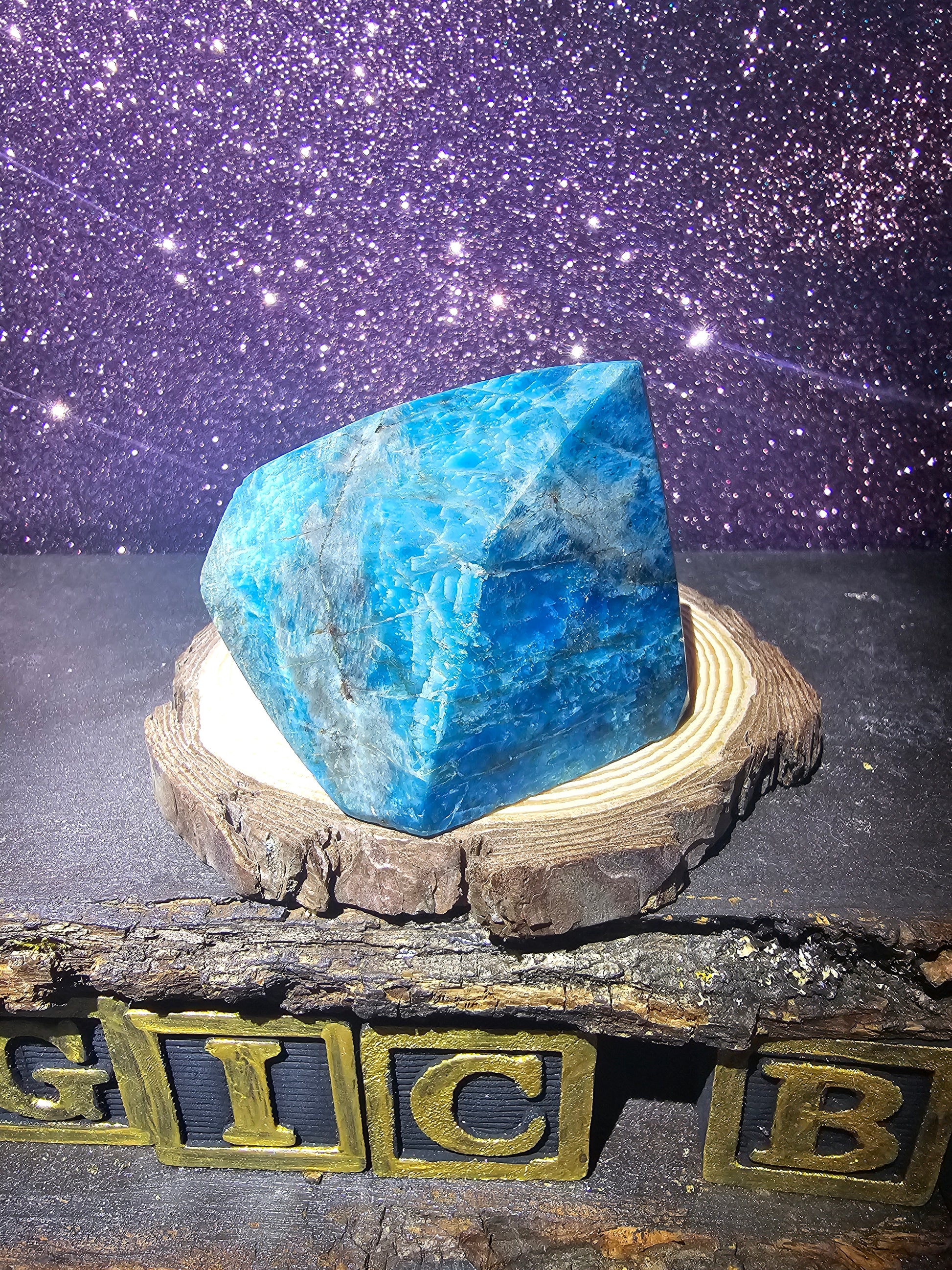 Dive into the tranquil beauty of our Blue Apatite Freeform. This exquisite crystal is carefully crafted to showcase the mesmerizing blue hues and natural patterns of blue apatite, creating a stunning piece that captivates the eye and soothes the soul.