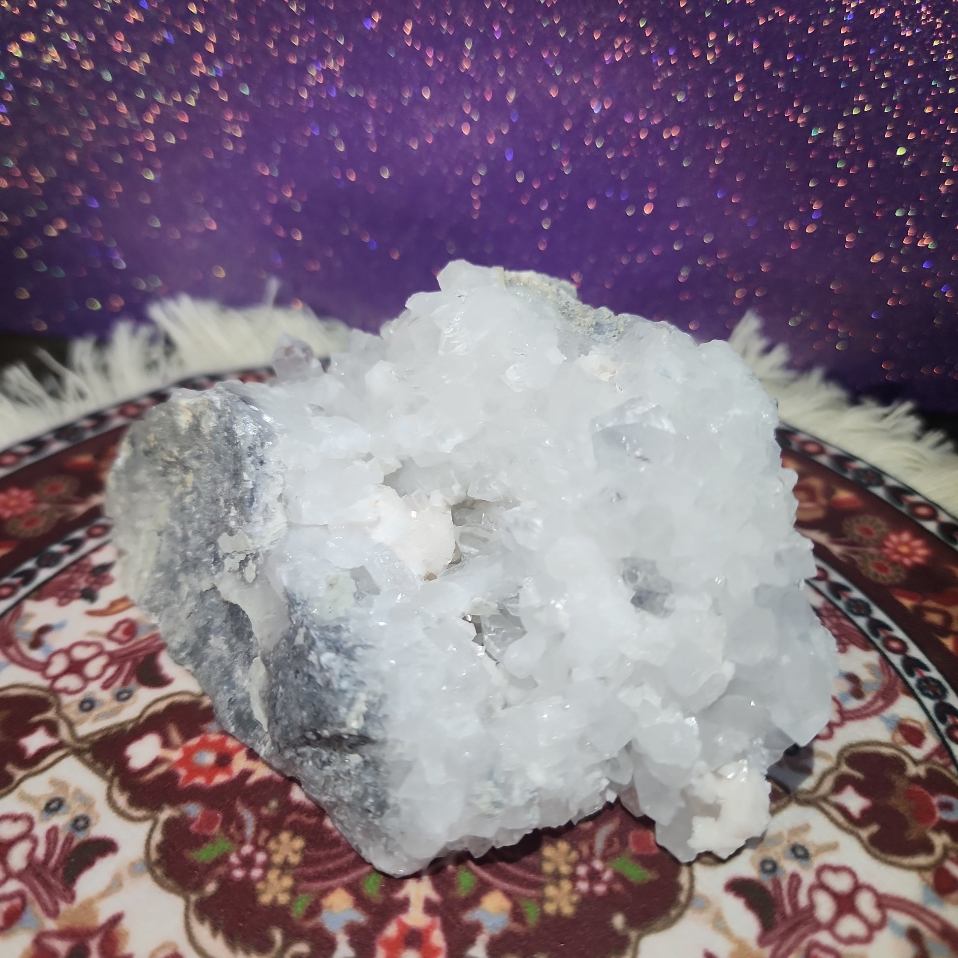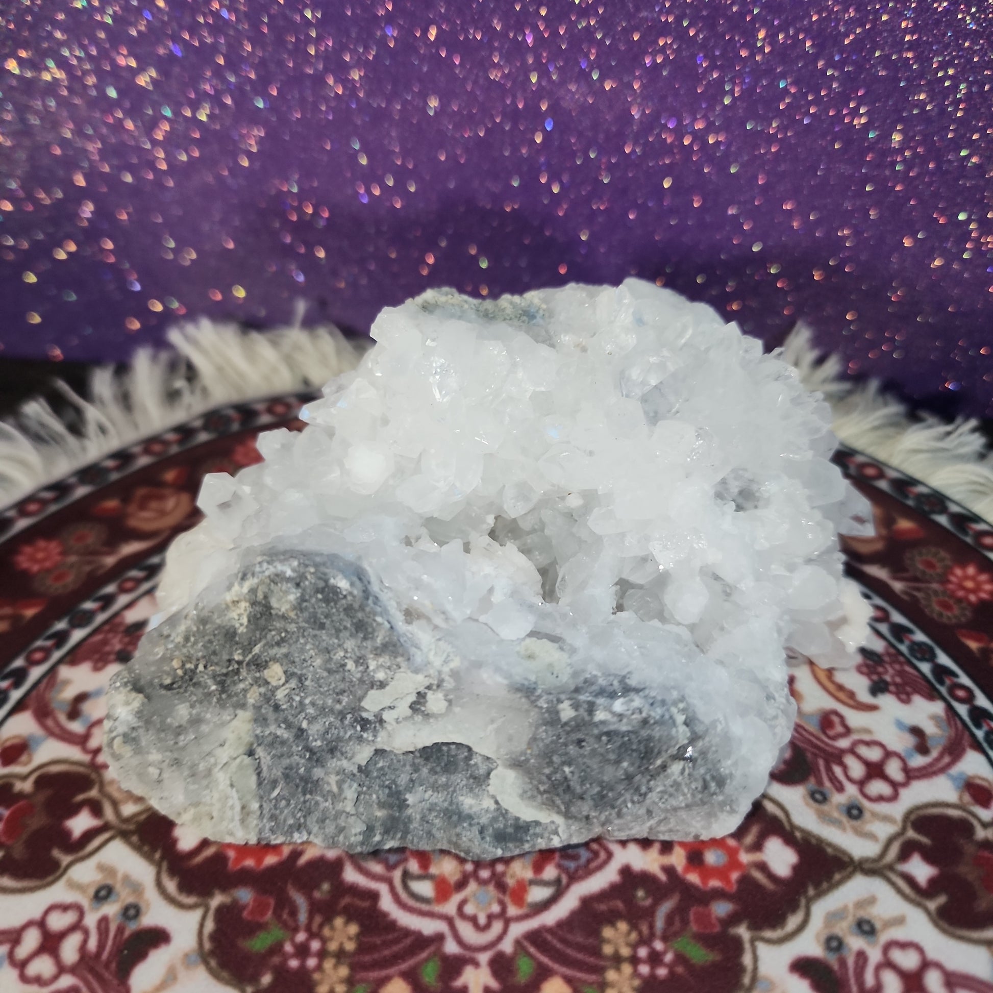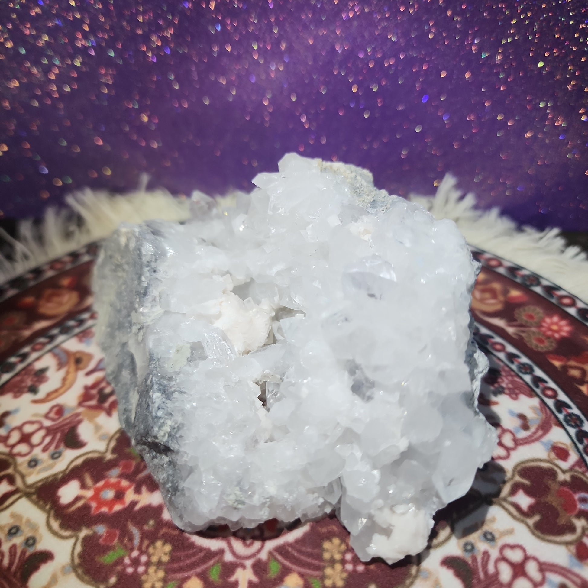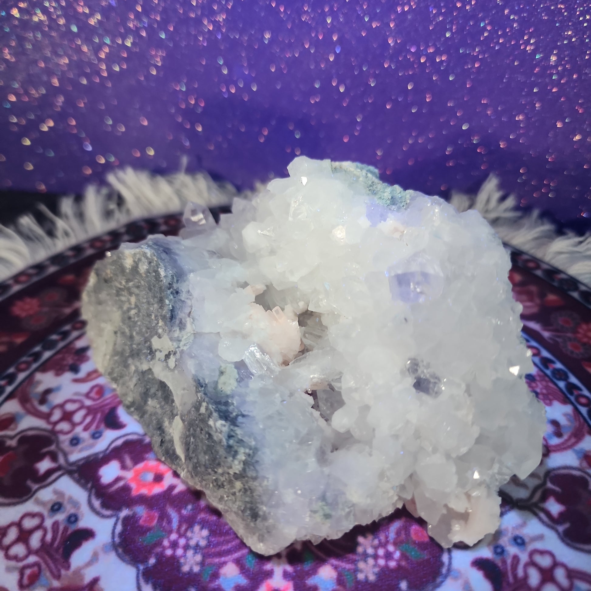 Introducing our stunning Calcite Quartz Fluorite Cluster, a true masterpiece of nature's beauty. This exquisite specimen features delicate, translucent calcite crystals intertwined with sparkling quartz points, creating a mesmerizing display of elegance and harmony. Perfect for both collectors and those seeking a touch of natural wonder in their decor, our Calcite Quartz Cluster will infuse any space with a timeless, ethereal allure.