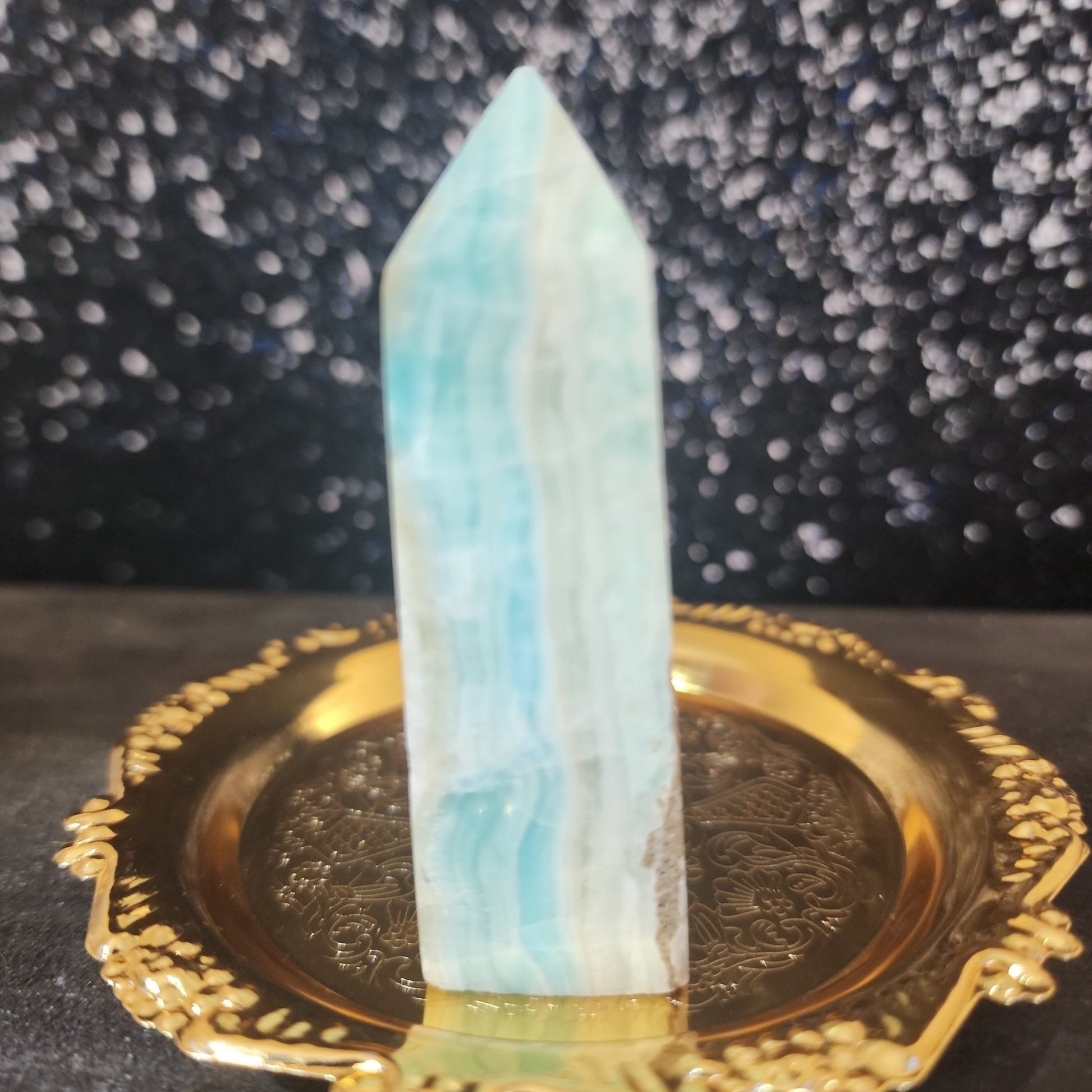 Whether you're an experienced crystal collector or just starting out, the Caribbean Calcite Tower is sure to be a cherished addition to your crystal collection. Display it on your desk, bookshelf, or bedside table and let its beauty and energy bring a sense of peace and tranquility to your space.