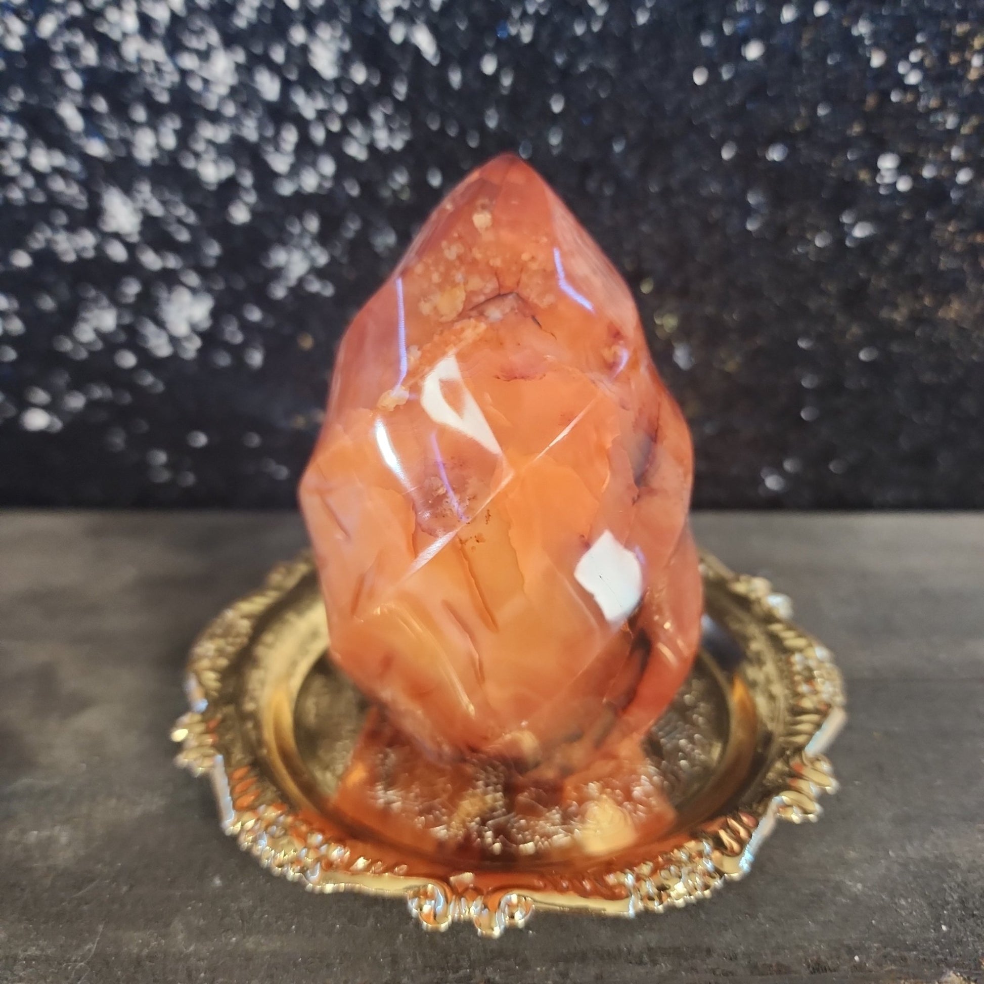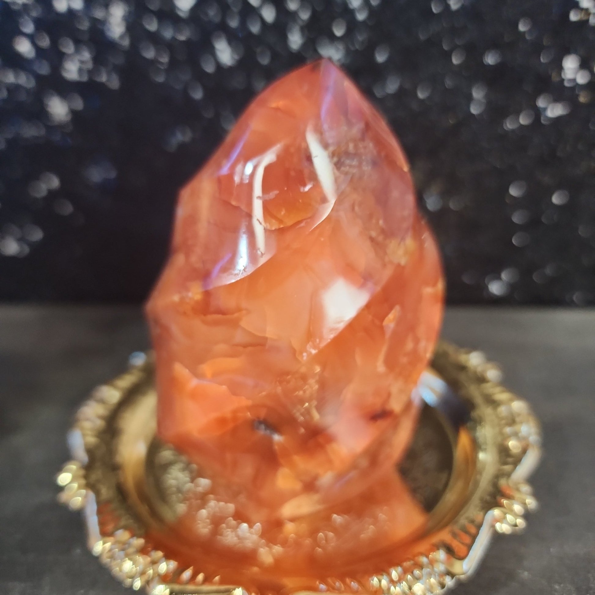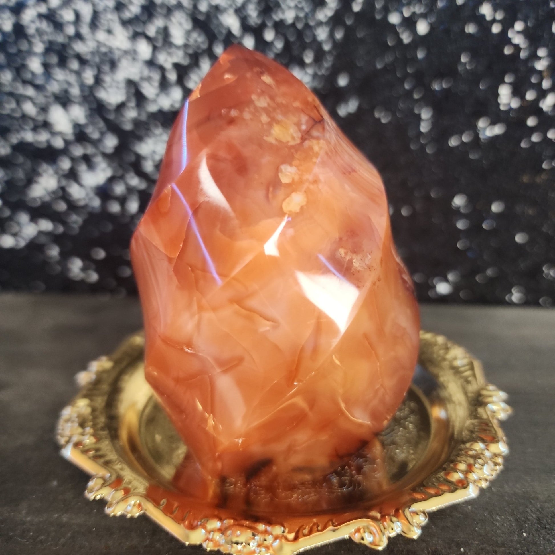 A Carnelian Flame is a unique and beautiful crystal that features a stunning orange-red color and a unique flame-like shape. This crystal is made from high-quality Carnelian stone, which is known for its grounding and energizing properties. The flame shape of the Carnelian Flame makes it perfect for use in meditation, energy healing, and spiritual rituals. It can be held in the hand or placed on a flat surface, and its vibrant color and energy make it a beautiful addition to any home or workspace. The Carnelian Flame is not only a beautiful decorative piece but also a powerful tool for promoting creativity, motivation, and confidence.