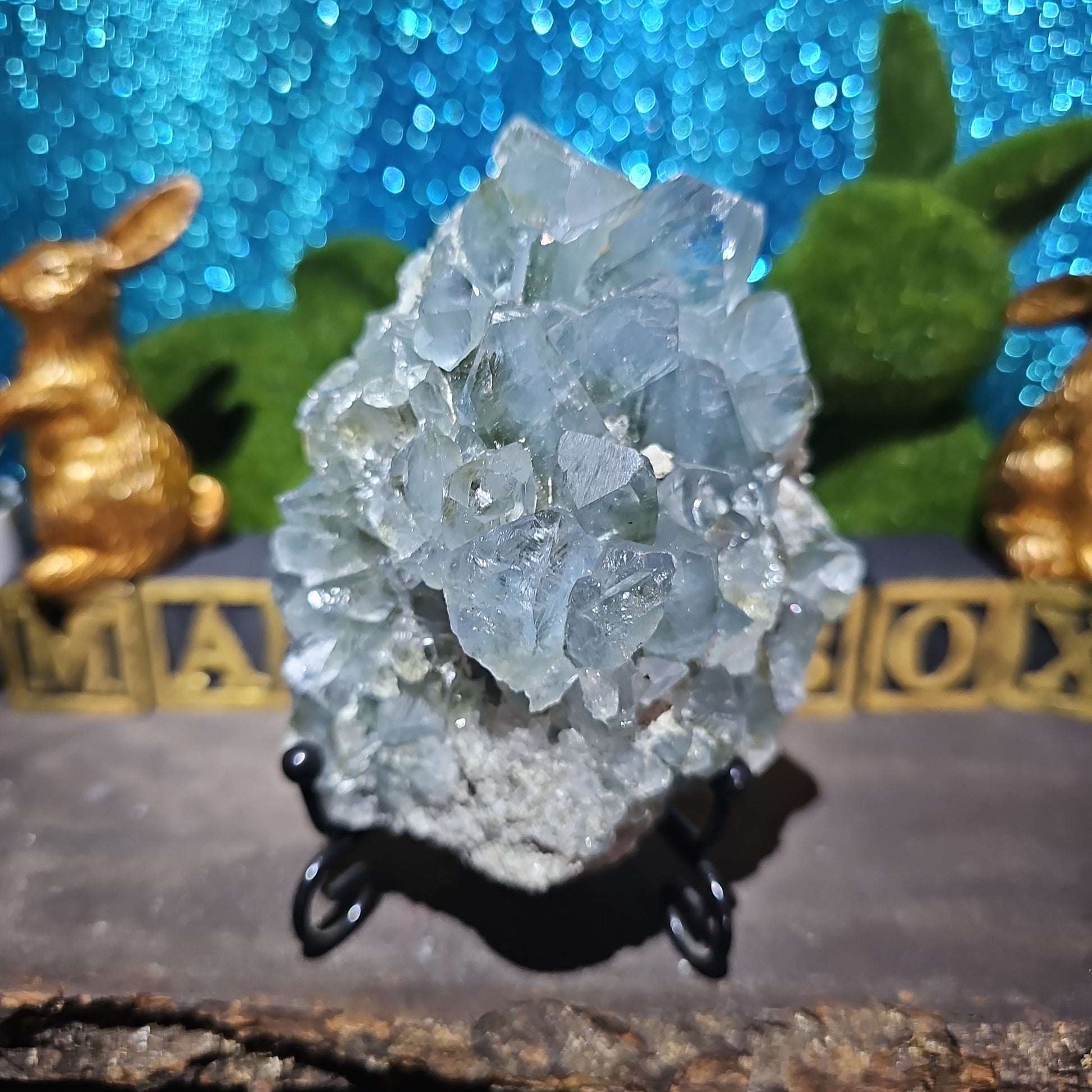 Celestite is known as a stone of divine connection and spiritual expansion, offering a sense of peace, clarity, and enlightenment. Our Celestite Cluster Geode embodies these qualities, serving as a portal to higher realms and inner wisdom.