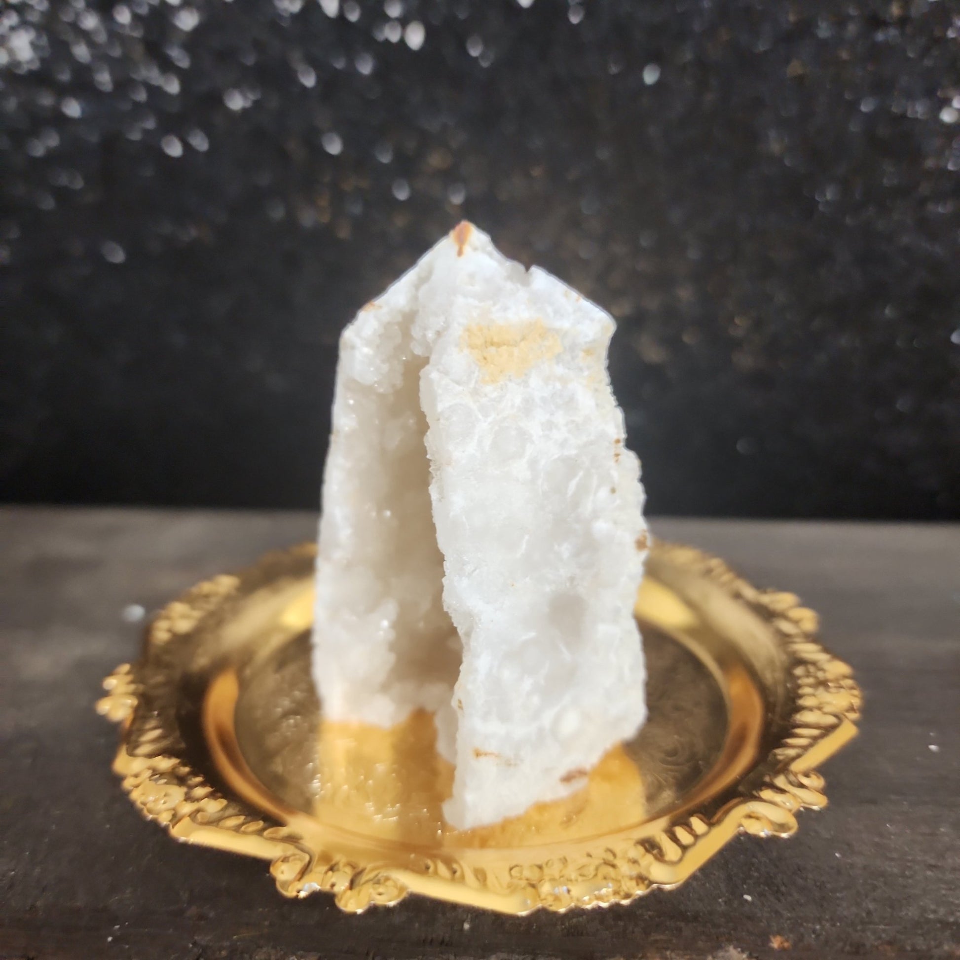 A stunning and unique crystal accessory for your home or sacred space. This beautiful piece is crafted from high-quality clear quartz with a druzy texture, renowned for its ability to amplify and enhance energy, making it perfect for meditation, manifestation, and spiritual growth.
