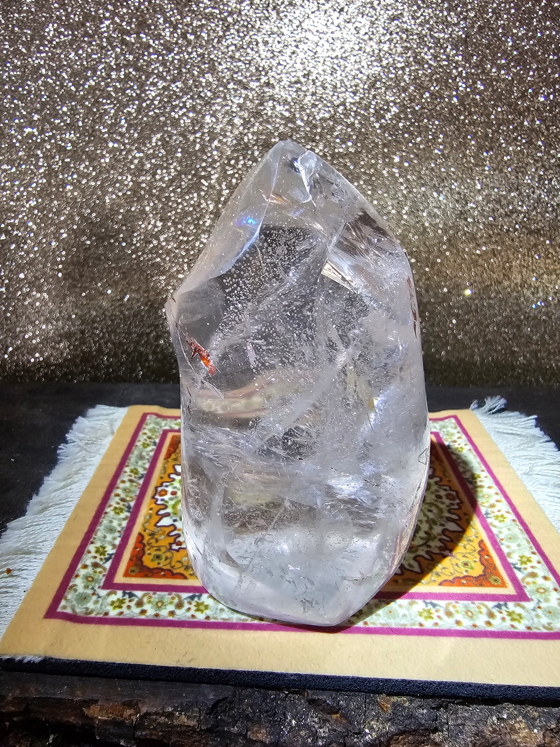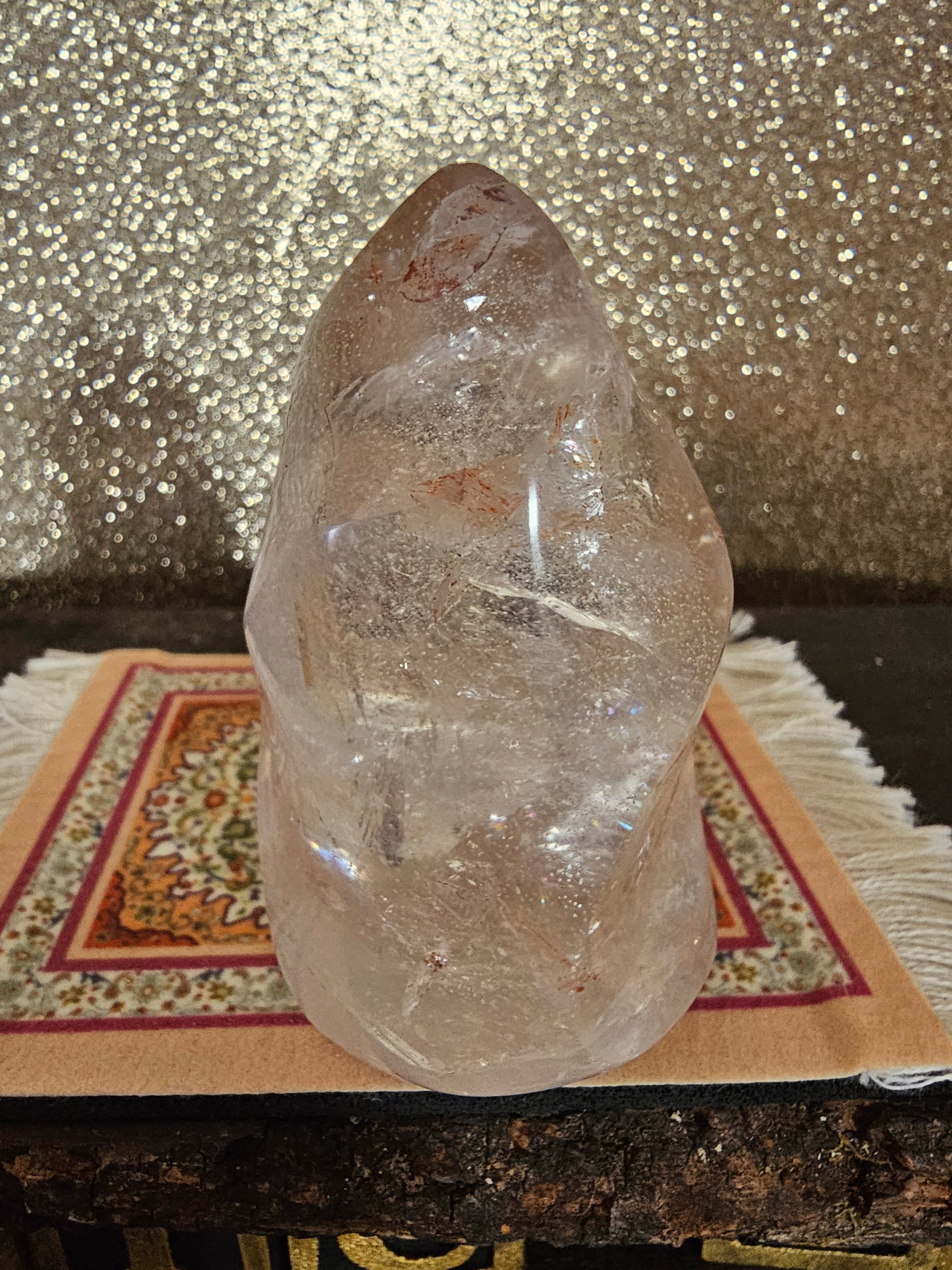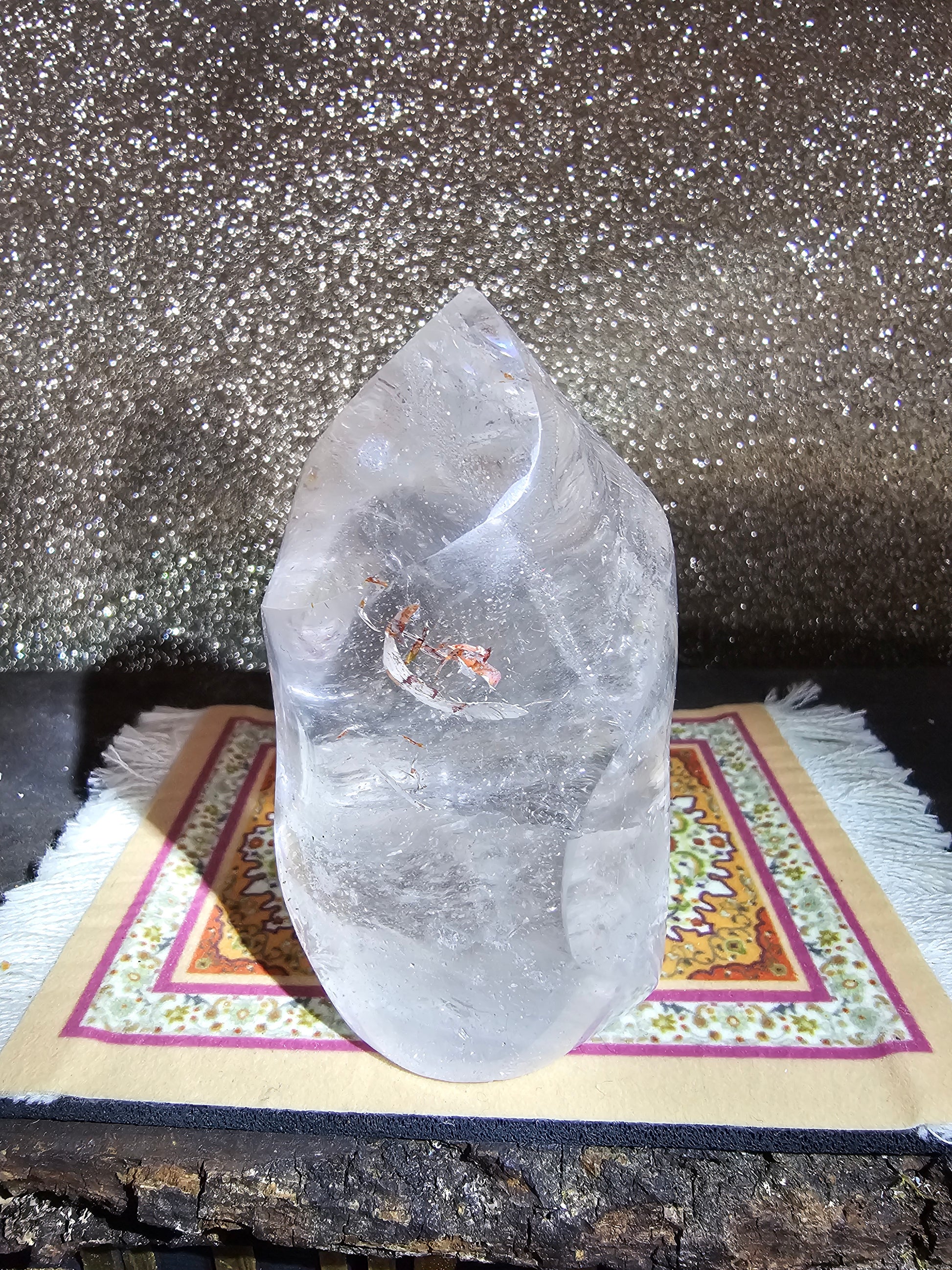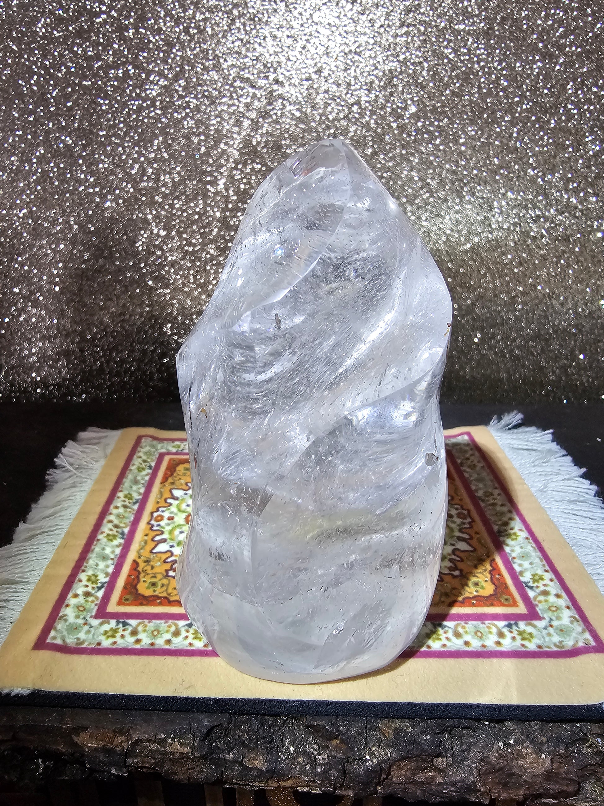 Clear quartz is revered for its amplifying properties and is believed to enhance clarity of thought and intention. Whether used for meditation, energy work, or simply as a decorative accent, our Clear Quartz Flame invites you to harness the power of the cosmos and manifest your highest potential.