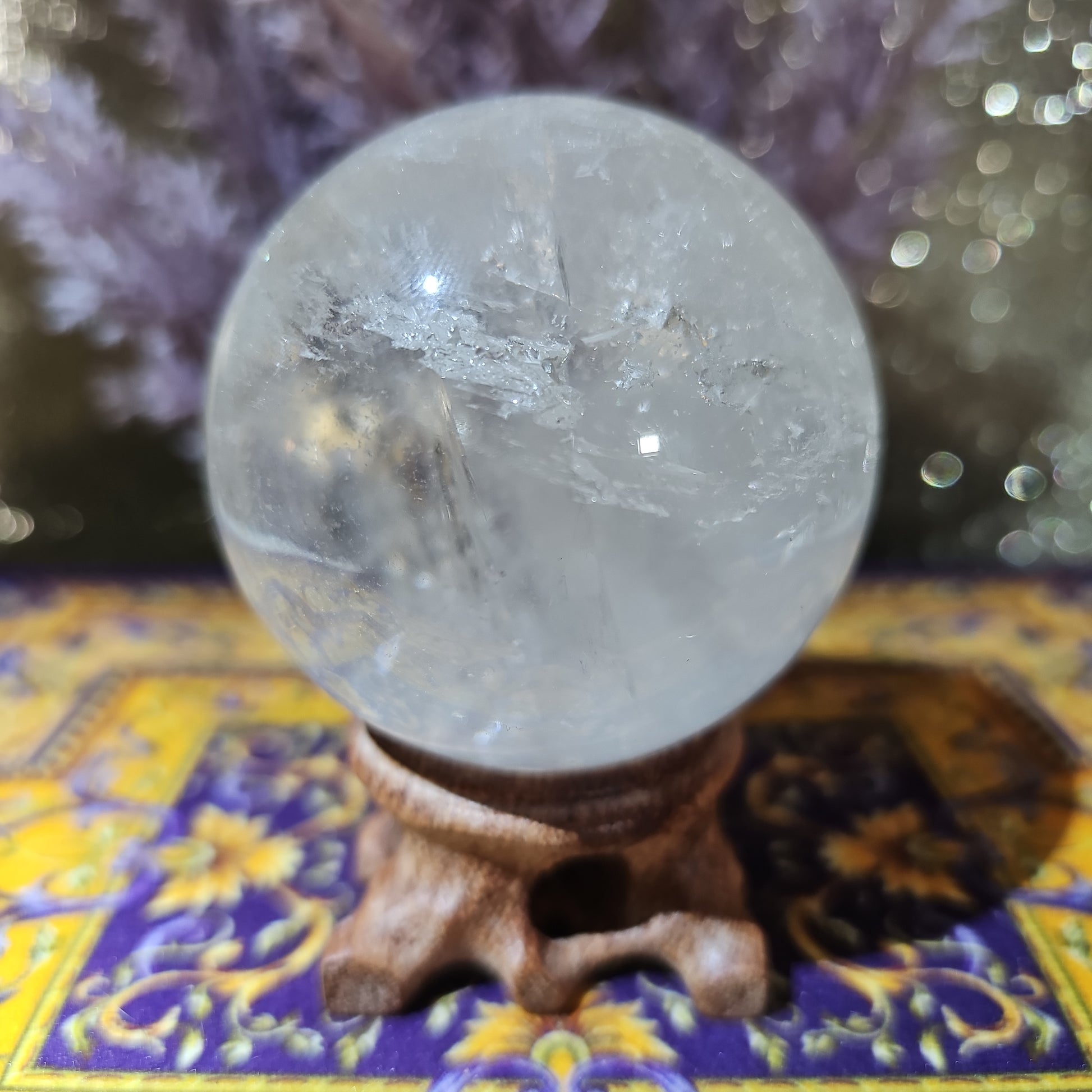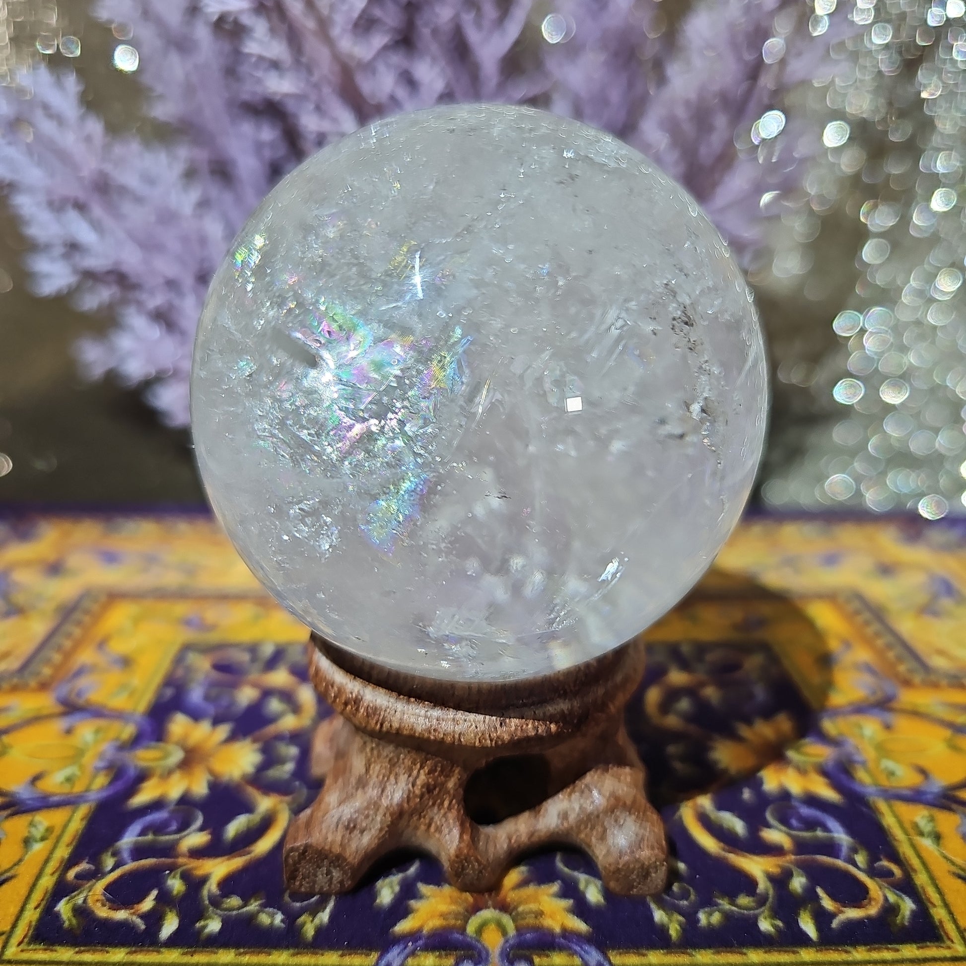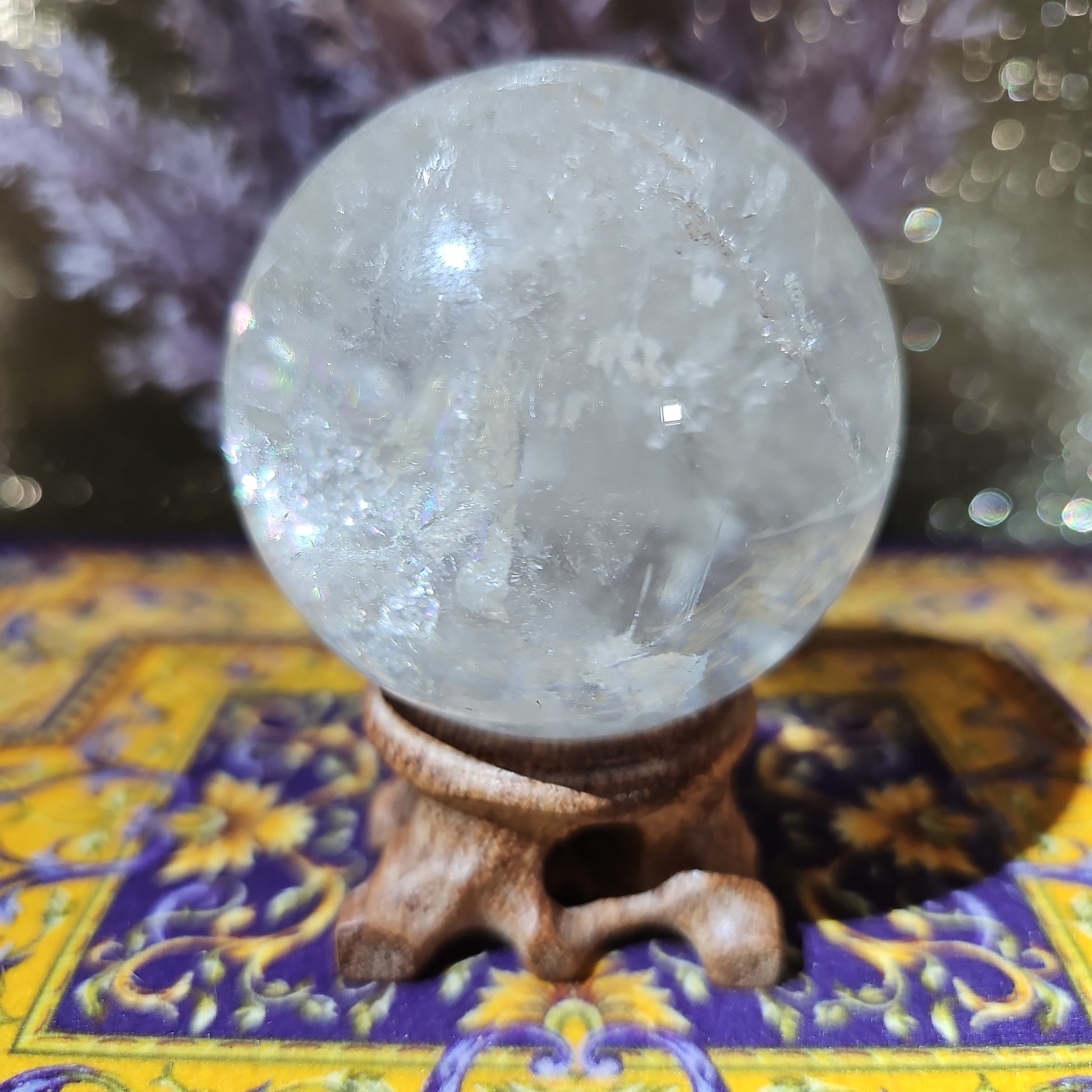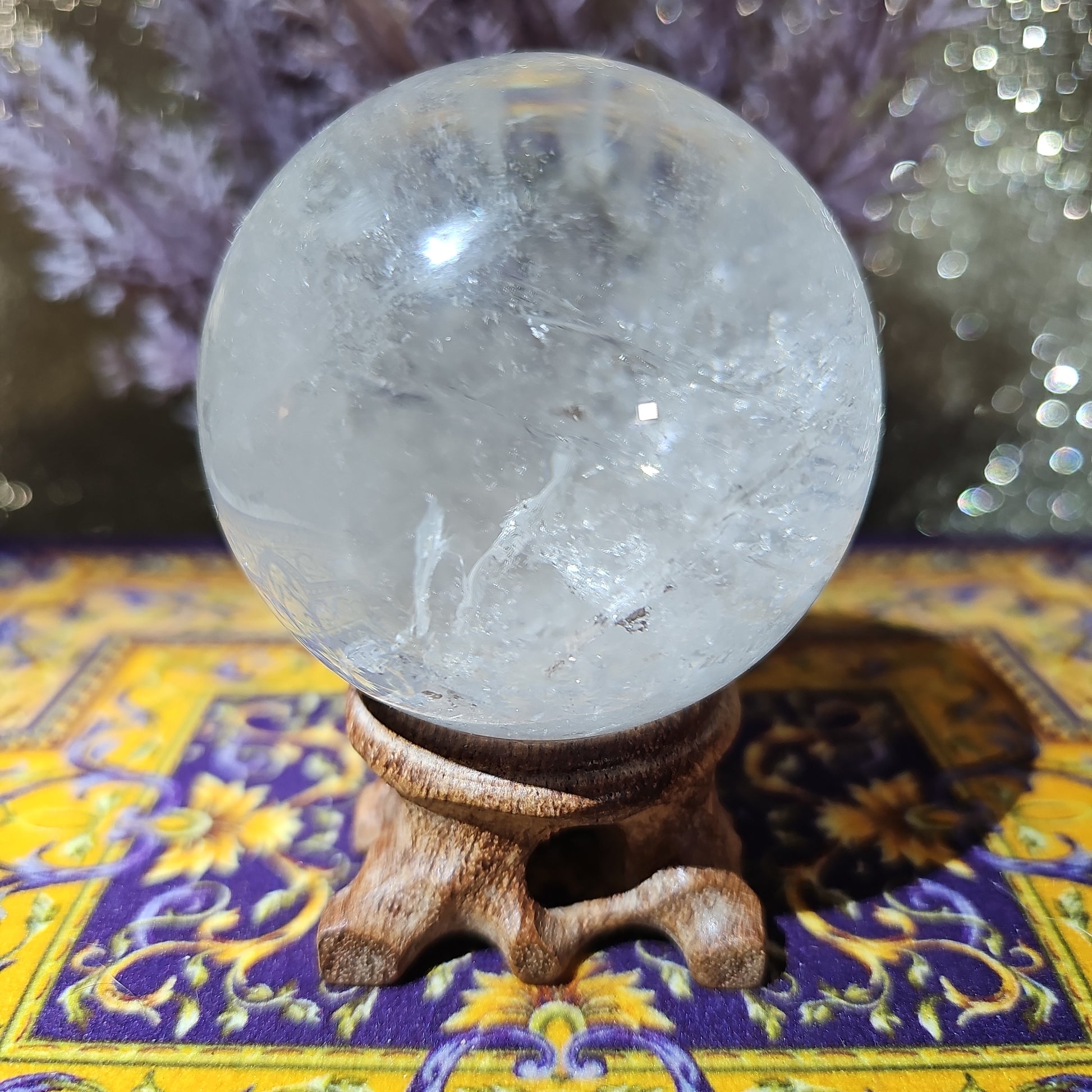 Clear quartz is a versatile and highly sought-after crystal that can be used for a wide range of purposes, including meditation, spiritual development, and energy work. It is believed to help clear the mind, enhance intuition, and promote overall well-being. With its pure and transparent appearance, this clear quartz sphere is sure to enhance the energy of any space it's placed in.