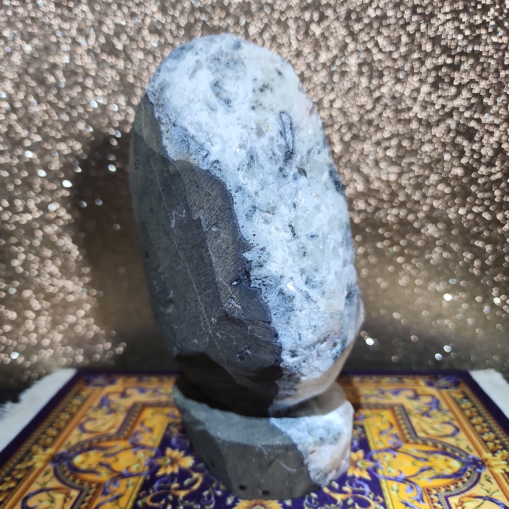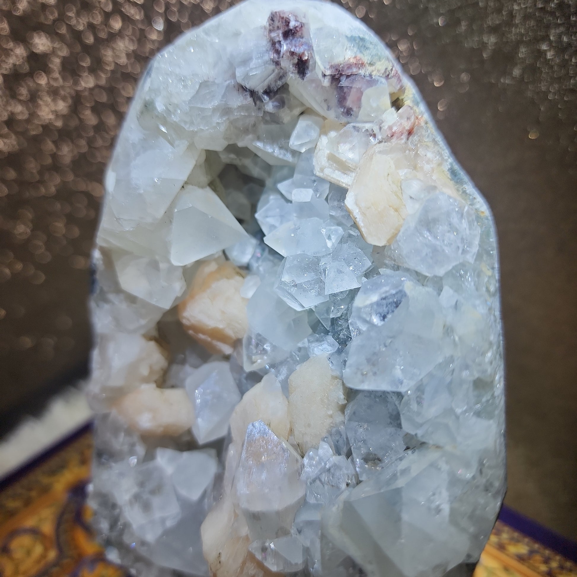 Gaze upon the Diamond Apophylite Specimen, and you'll be immediately drawn to its radiant allure. The delicate, pyramid-like apophylite crystals, reminiscent of glistening diamonds, delicately blanket the matrix, creating a captivating contrast between the natural sparkle and the subdued backdrop. The specimen's pristine clarity and reflective qualities give it a distinct brilliance, captivating the eye from every angle.