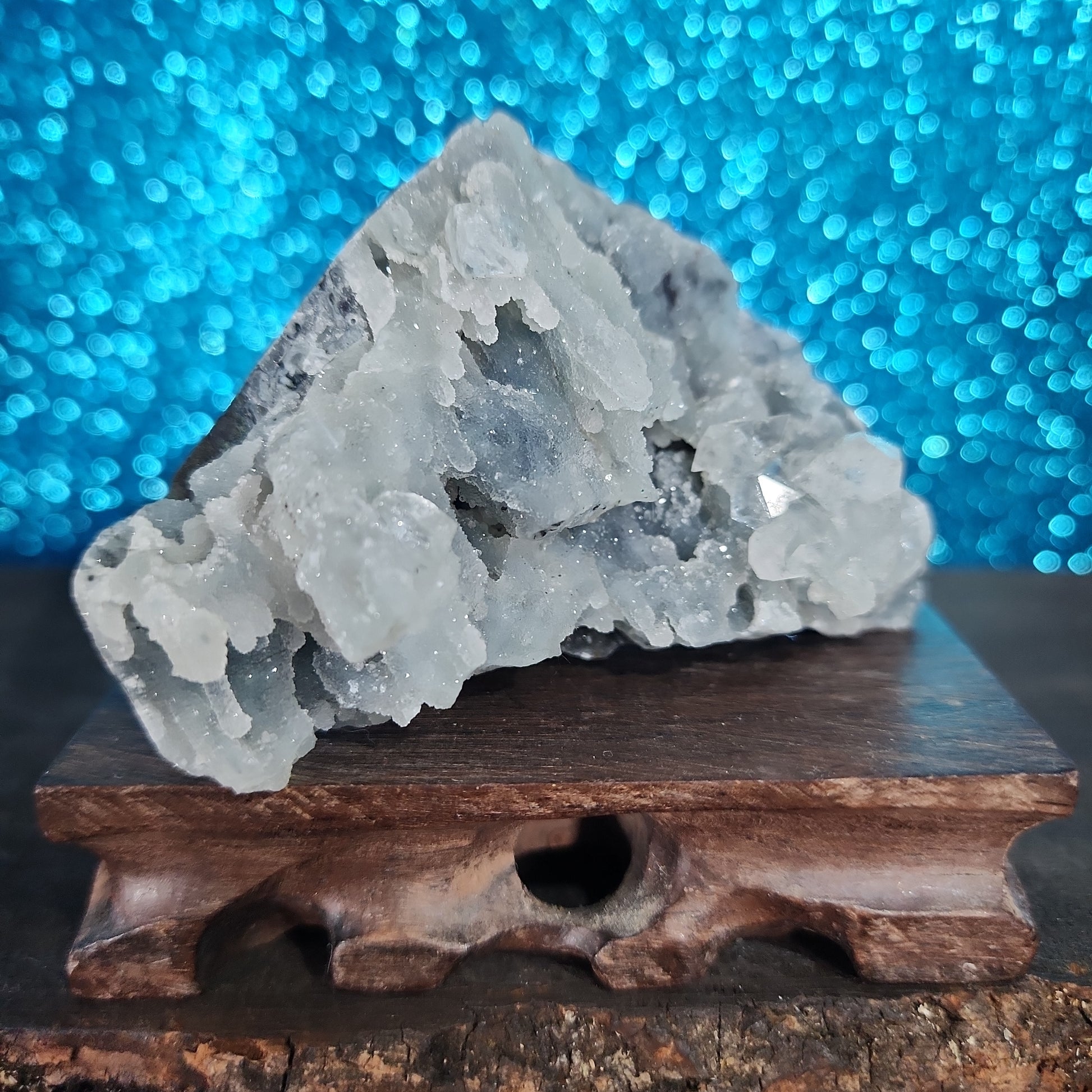 Presenting the exquisite Diamond Apophylite Specimen – a true marvel of nature's artistry and a testament to the captivating beauty of crystal formations. This exceptional specimen showcases the harmonious fusion of diamond-like sparkle and the ethereal grace of apophylite, resulting in a mesmerizing masterpiece that evokes a sense of wonder and awe.
