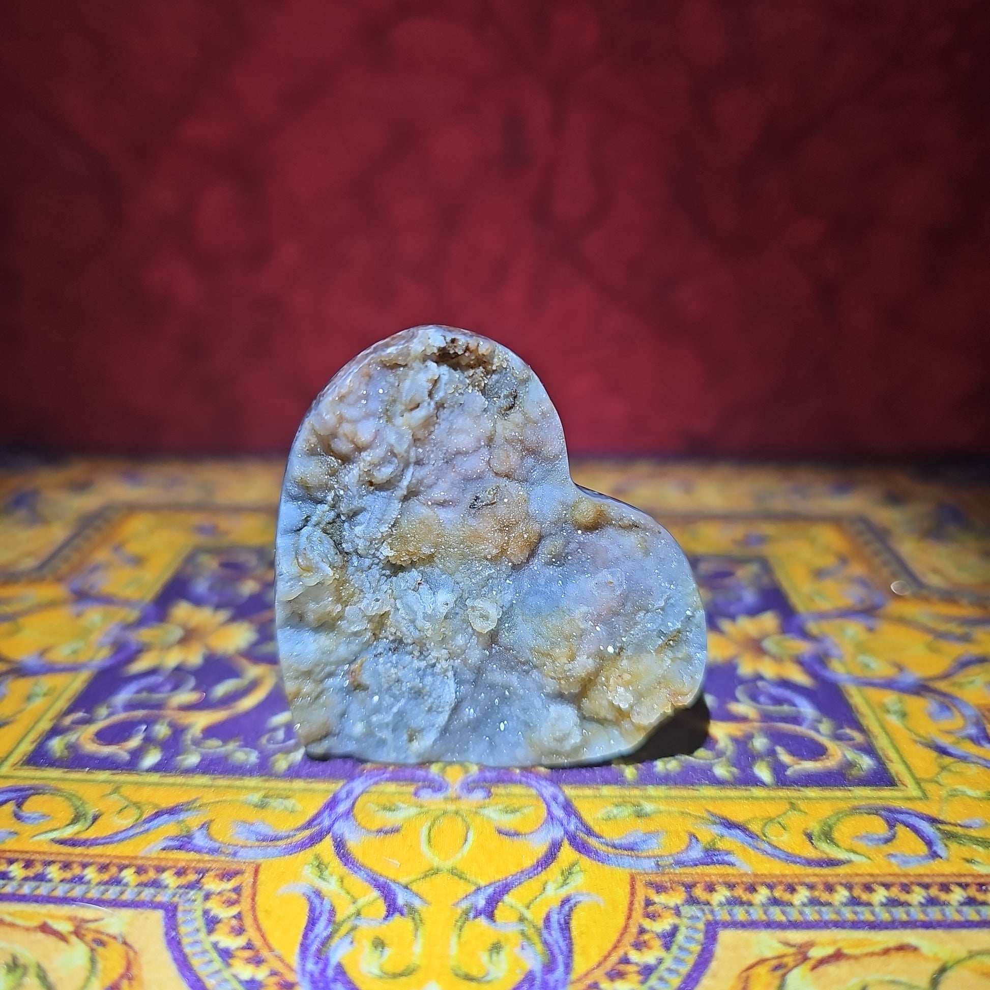 Our Druzy Agate Heart is a mesmerizing gemstone creation that embodies the beauty of nature's patterns and the warmth of heartfelt emotions. Meticulously crafted, this heart-shaped specimen showcases the intricate texture and sparkling crystals of druzy agate, creating a visually enchanting and spiritually resonant work of art.
