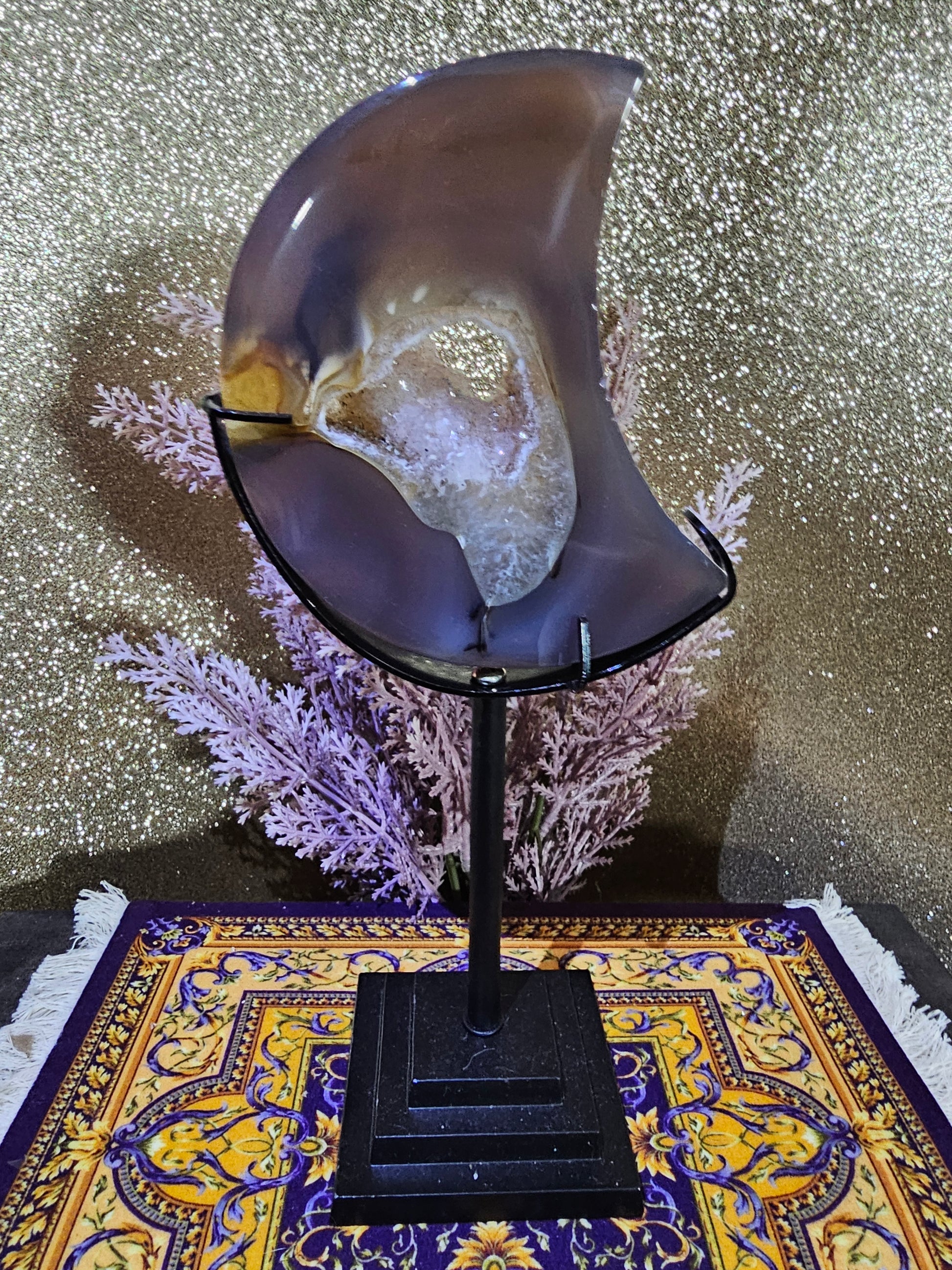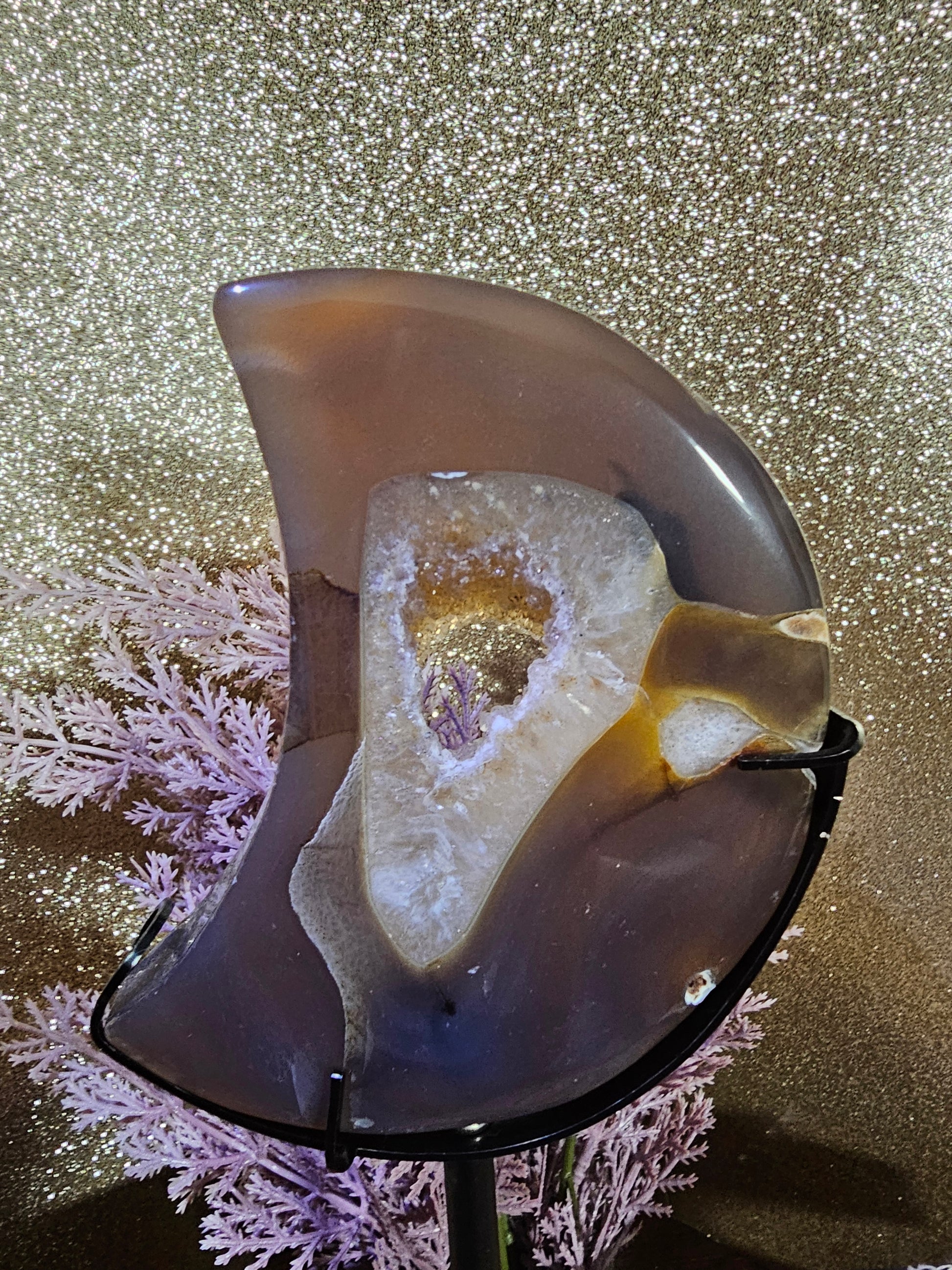 Druzy Agate Moon with stand