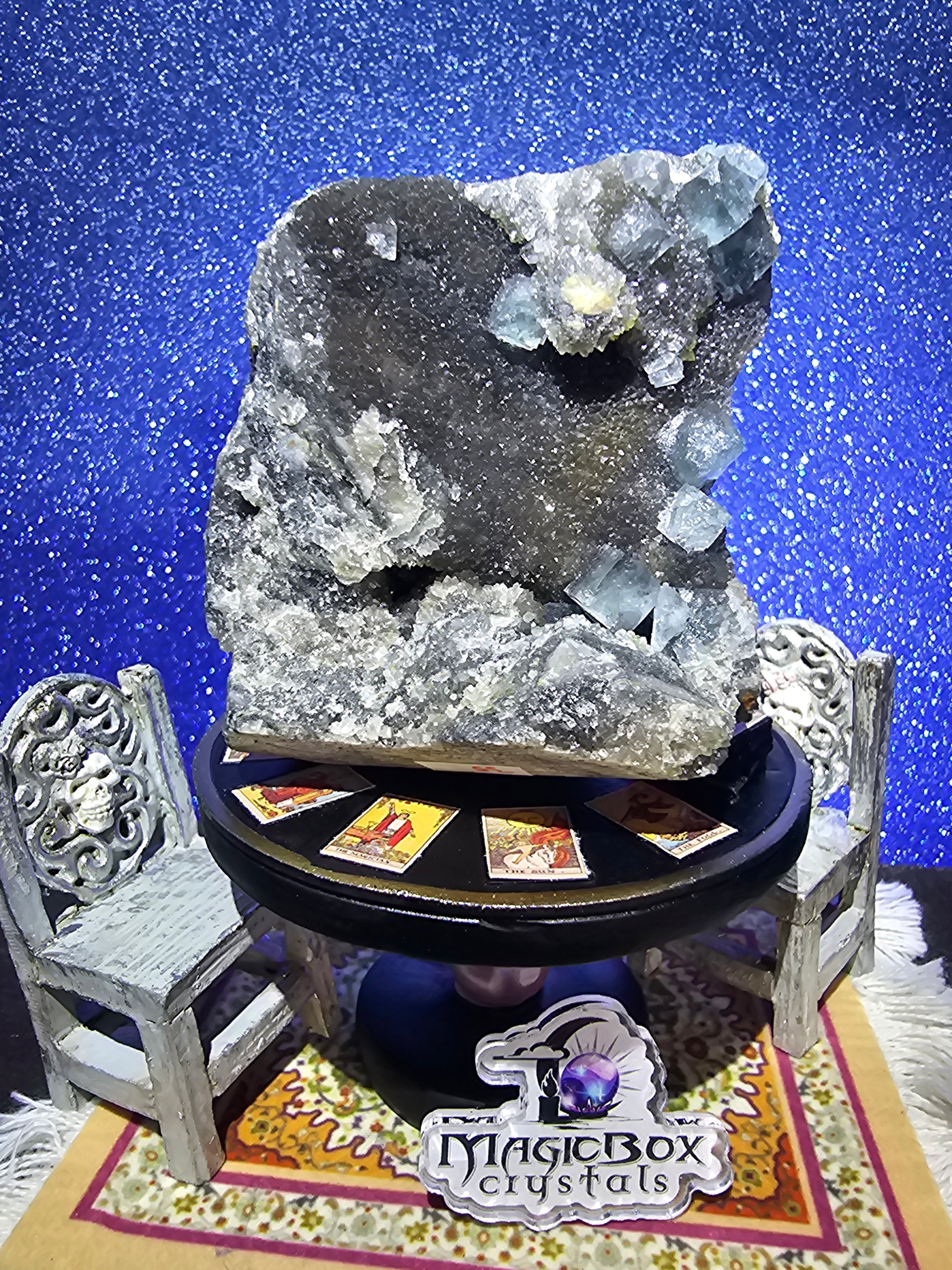 Discover the enchanting allure of our Druzy Chalcedony with Fluorite. This captivating specimen combines the shimmering beauty of druzy chalcedony with the vibrant energy of fluorite, creating a stunning piece that mesmerizes and inspires.