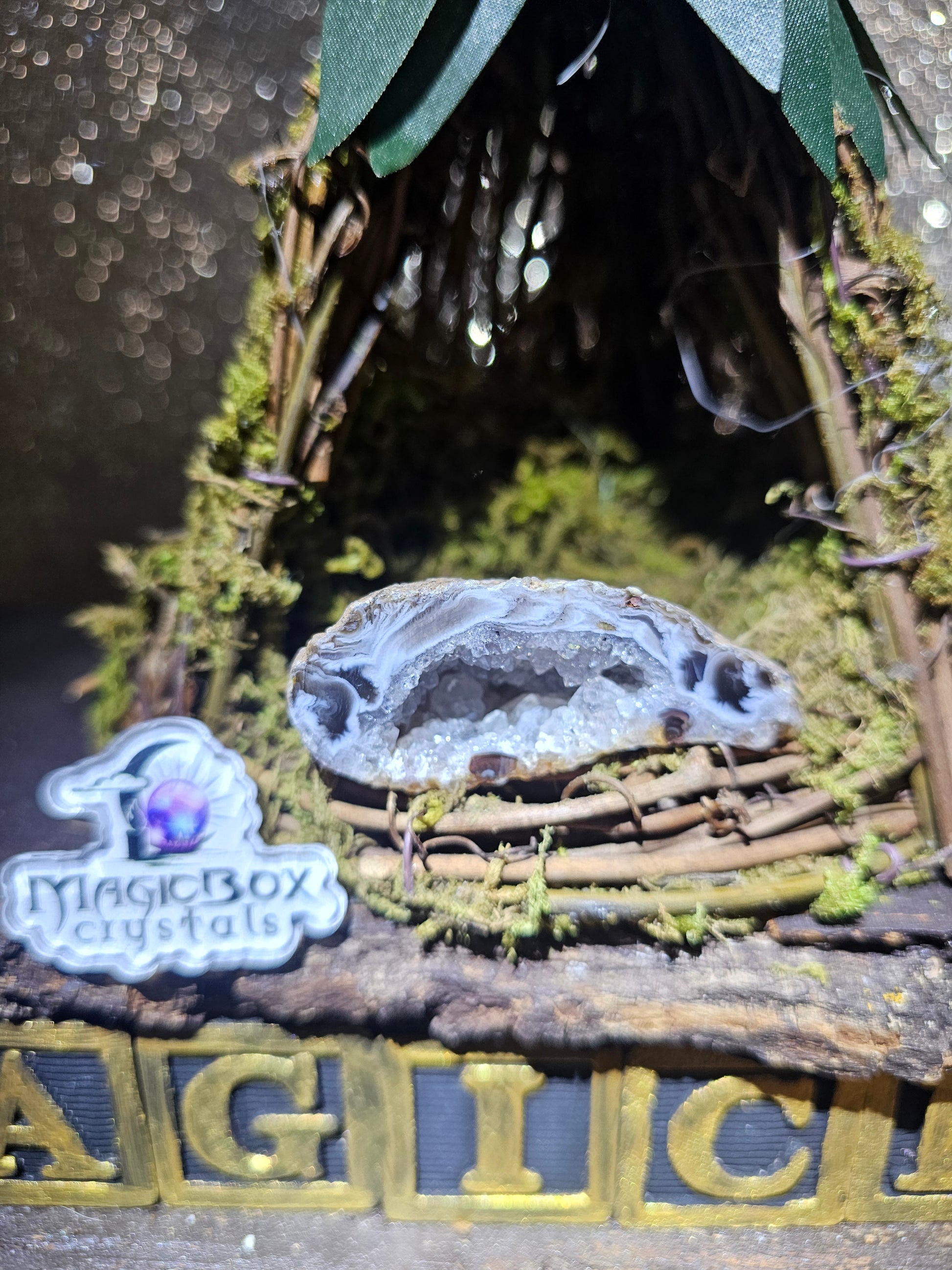Discover the enchanting allure of our Druzy Geode, a captivating fusion of rugged charm and sparkling elegance. This geode showcases a stunning array of tiny quartz crystals, known as druzy, that blanket its interior in a shimmering spectacle of brilliance. Each crystal glitters and gleams with iridescent hues, creating a mesmerizing display that captures the imagination. Perfect for adding a touch of natural beauty to any space, our Druzy Geode is a timeless treasure that invites you to embrace the wonder of the Earth's creations. Experience the magic of the natural world with this exquisite geode today!