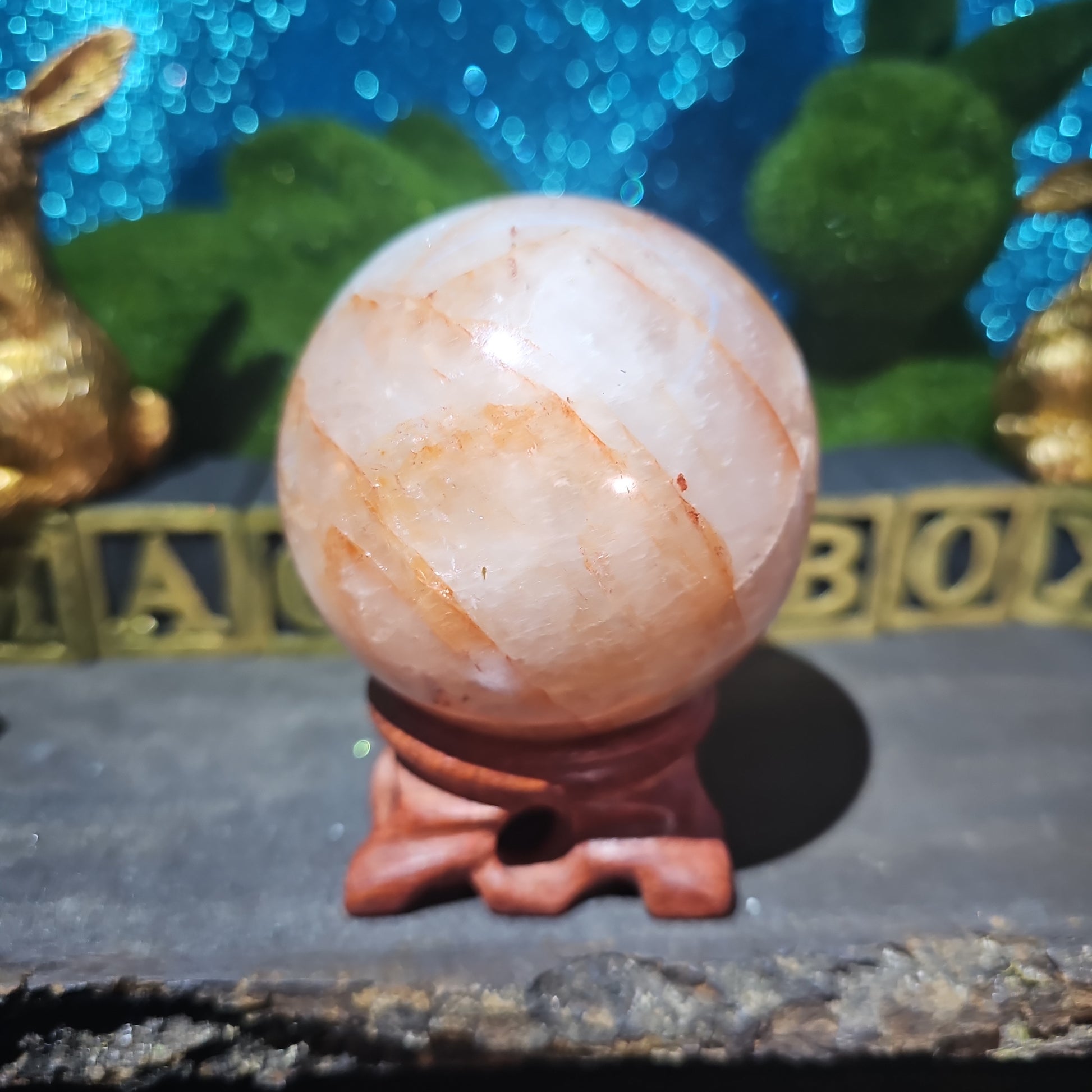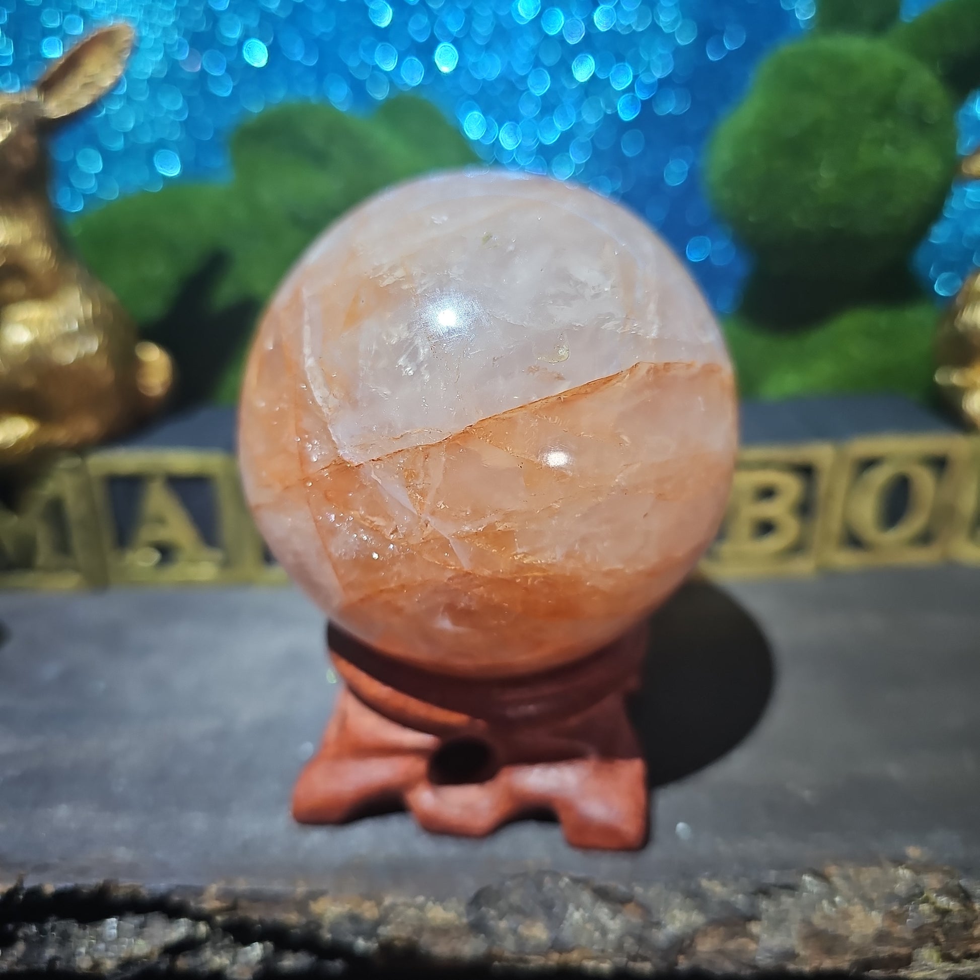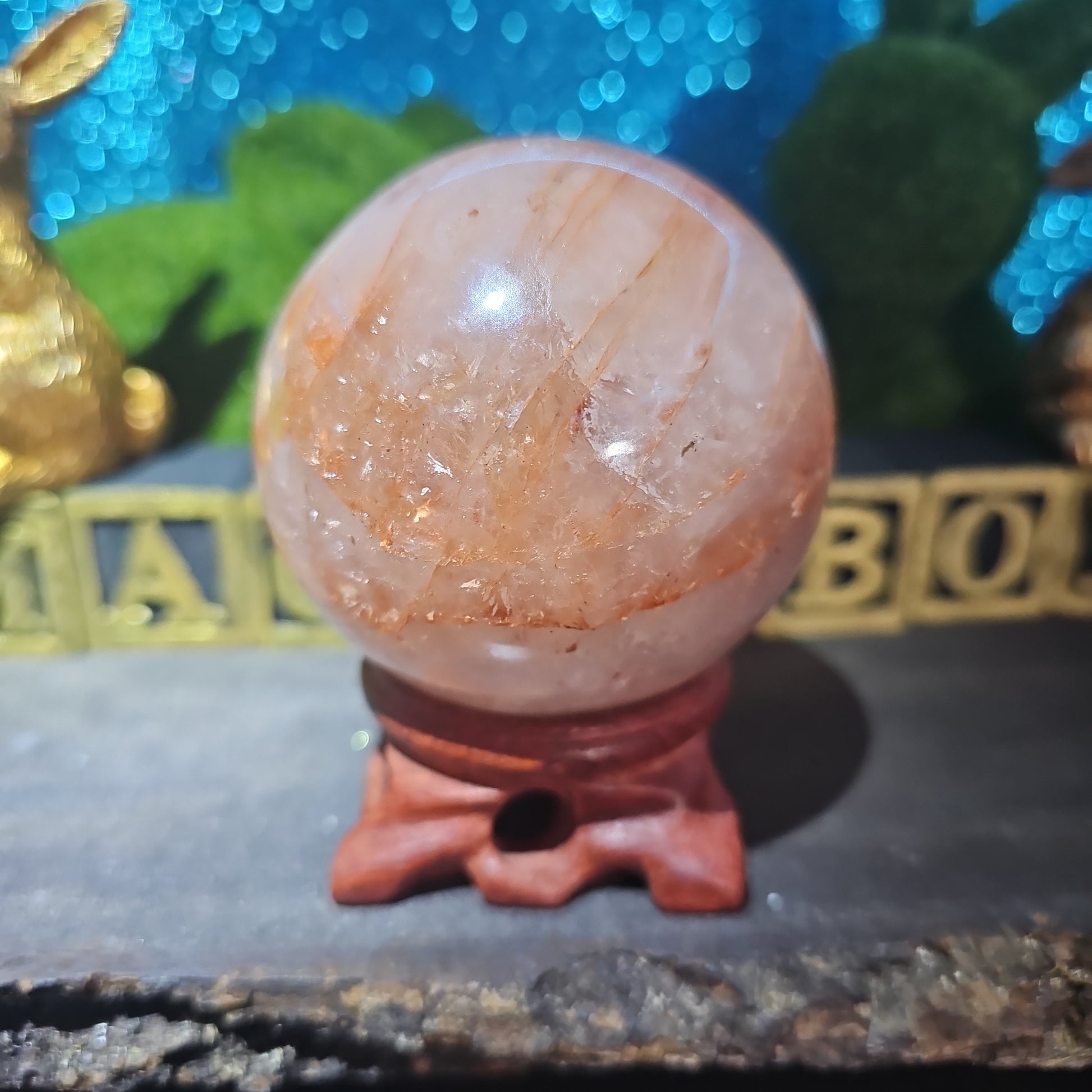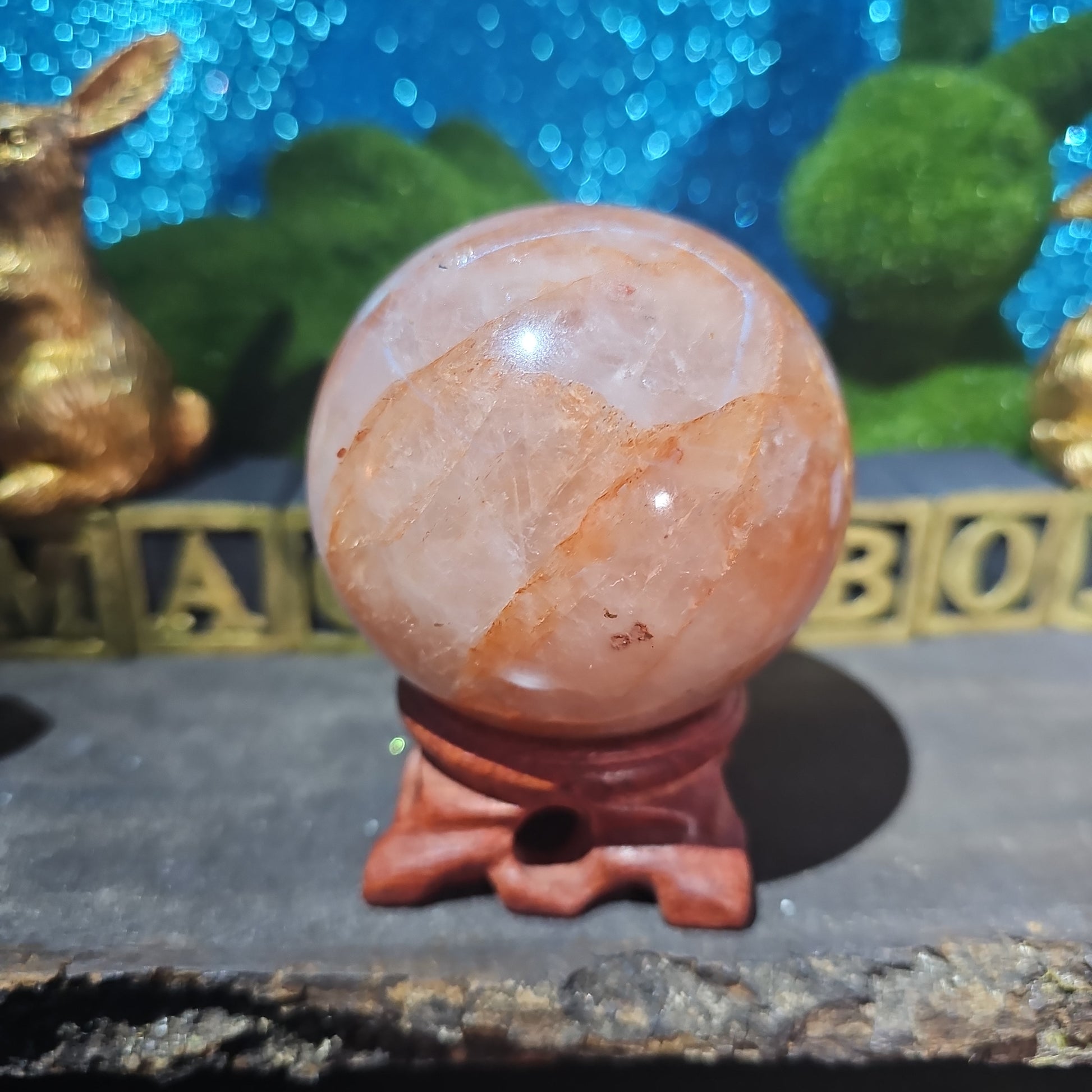 This breathtaking sphere is handcrafted from high-quality Fire Quartz, a captivating crystal known for its fiery hues and unique patterns.