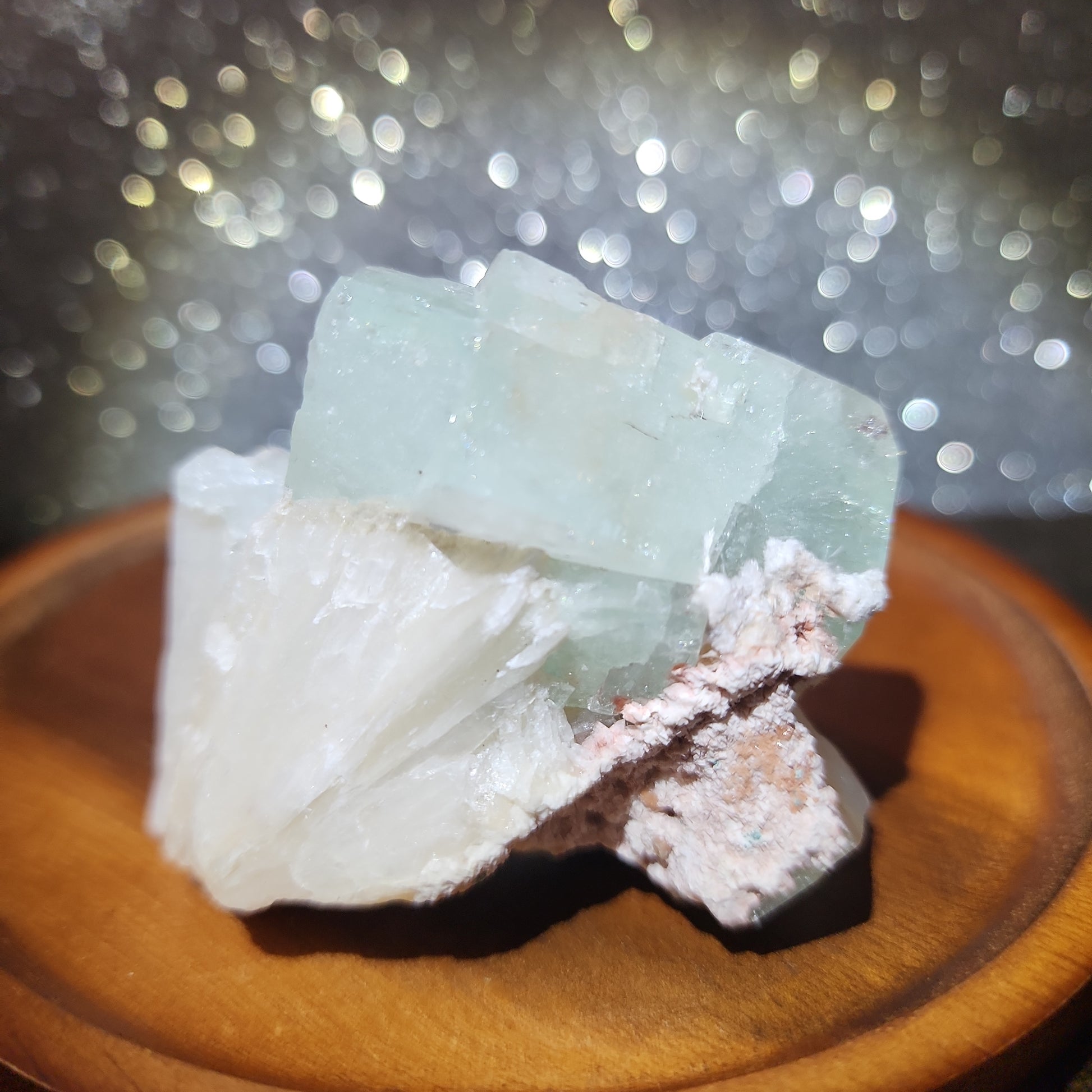 Introducing the Fluorapophyllite Specimen – a stunning showcase of nature's beauty. This unique specimen, with its vibrant green crystals, adds a touch of elegance and tranquility to any space. Perfect for collectors and enthusiasts, it's a piece of natural art that captivates with its charm and color.