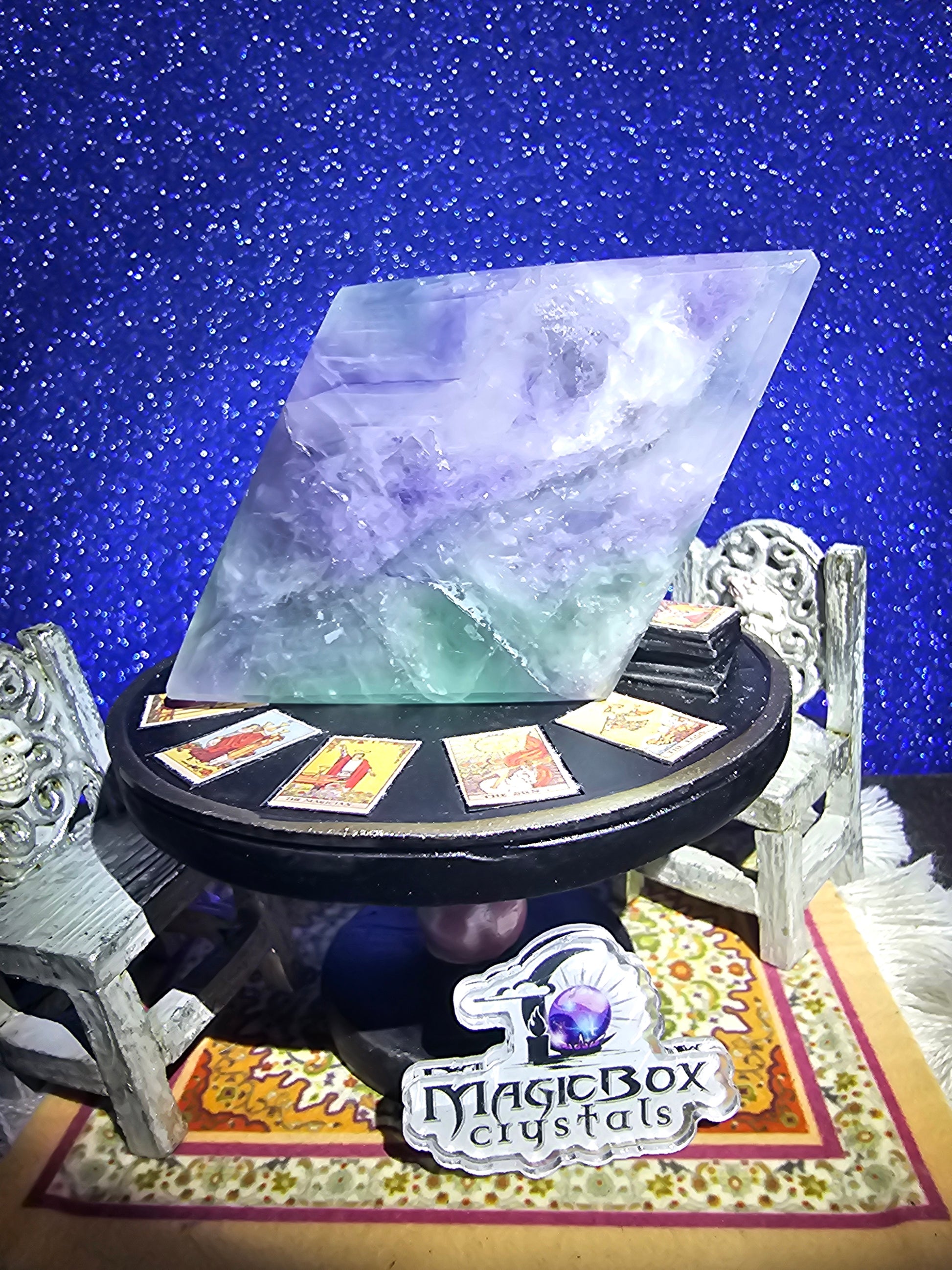 Unveil the enchanting beauty of our Fluorite Diamond. Crafted from the finest fluorite, this exquisite specimen showcases the mesmerizing hues and intricate patterns of this beloved crystal.