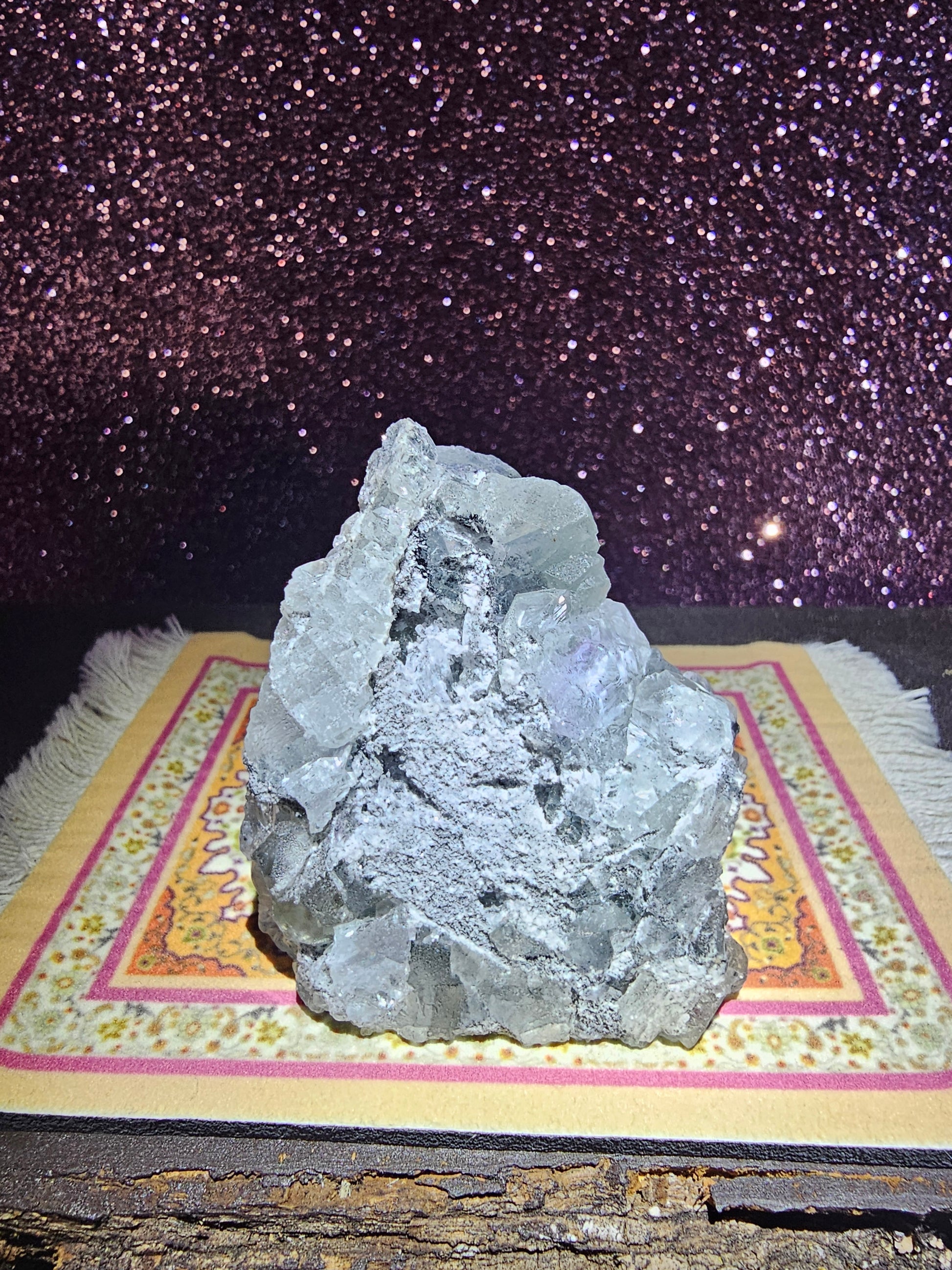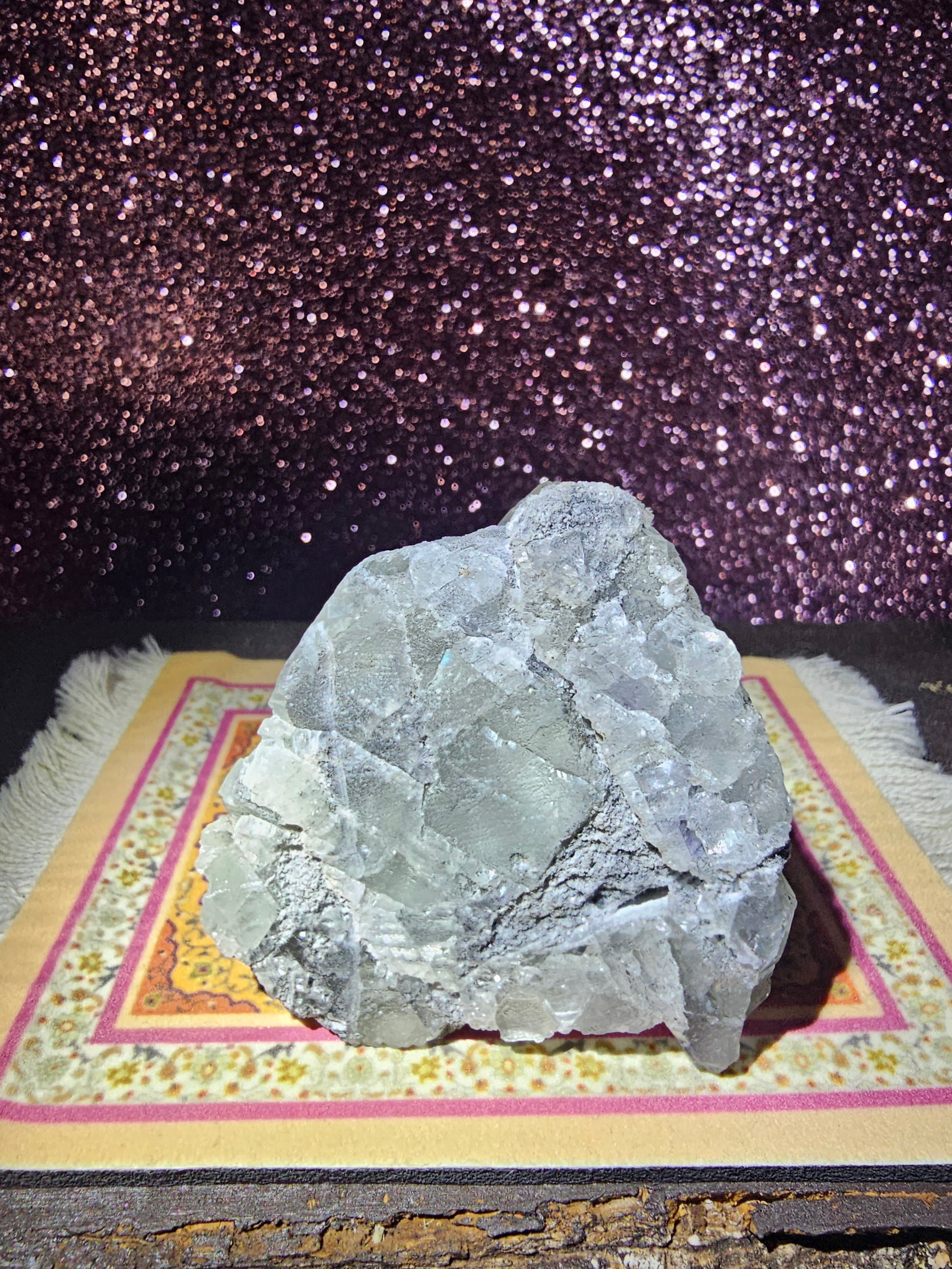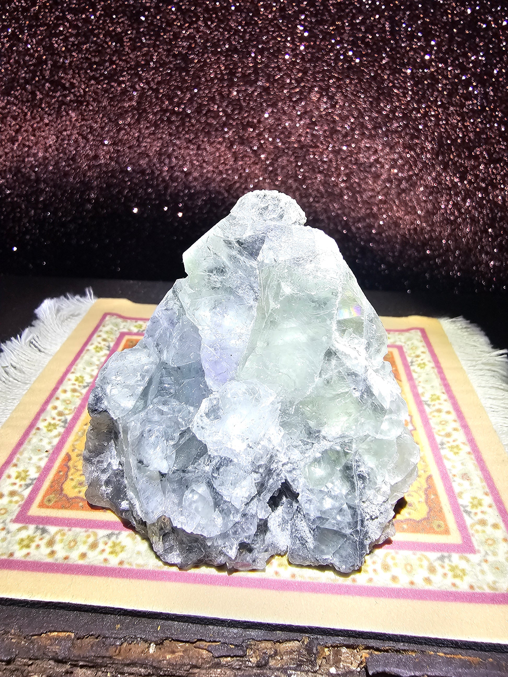 A fluorite specimen is a mineral specimen that consists of the mineral fluorite, which is a colorful and highly fluorescent mineral made up of calcium fluoride. It is typically found in a variety of colors, including purple, green, blue, yellow, and pink, and often displays a variety of unique patterns and shapes. Fluorite specimens are highly sought after by collectors and enthusiasts due to their beauty and unique properties, including their fluorescence under ultraviolet light. They can be used for decorative purposes or as a source of fluorine, which has a wide range of industrial applications.