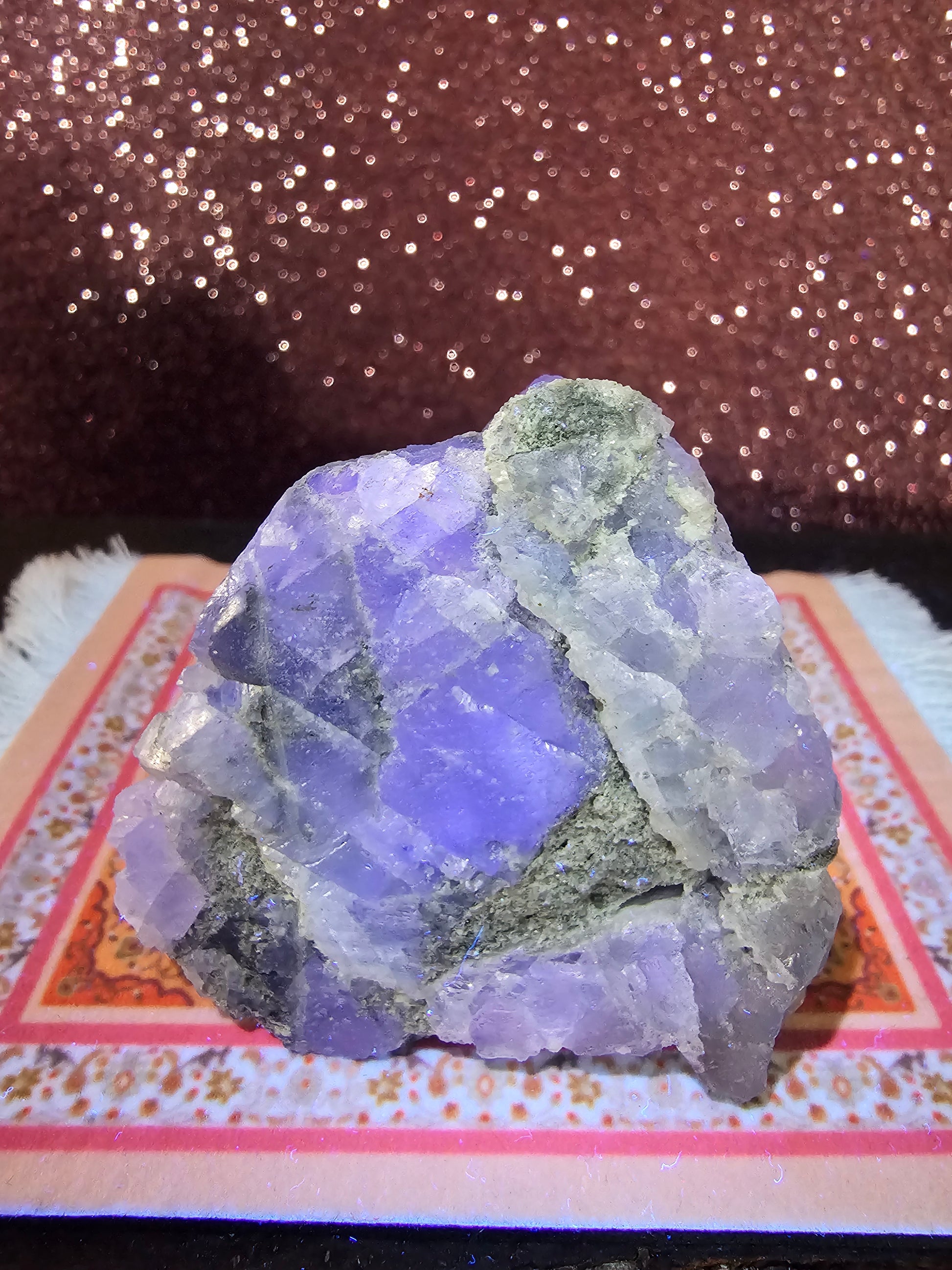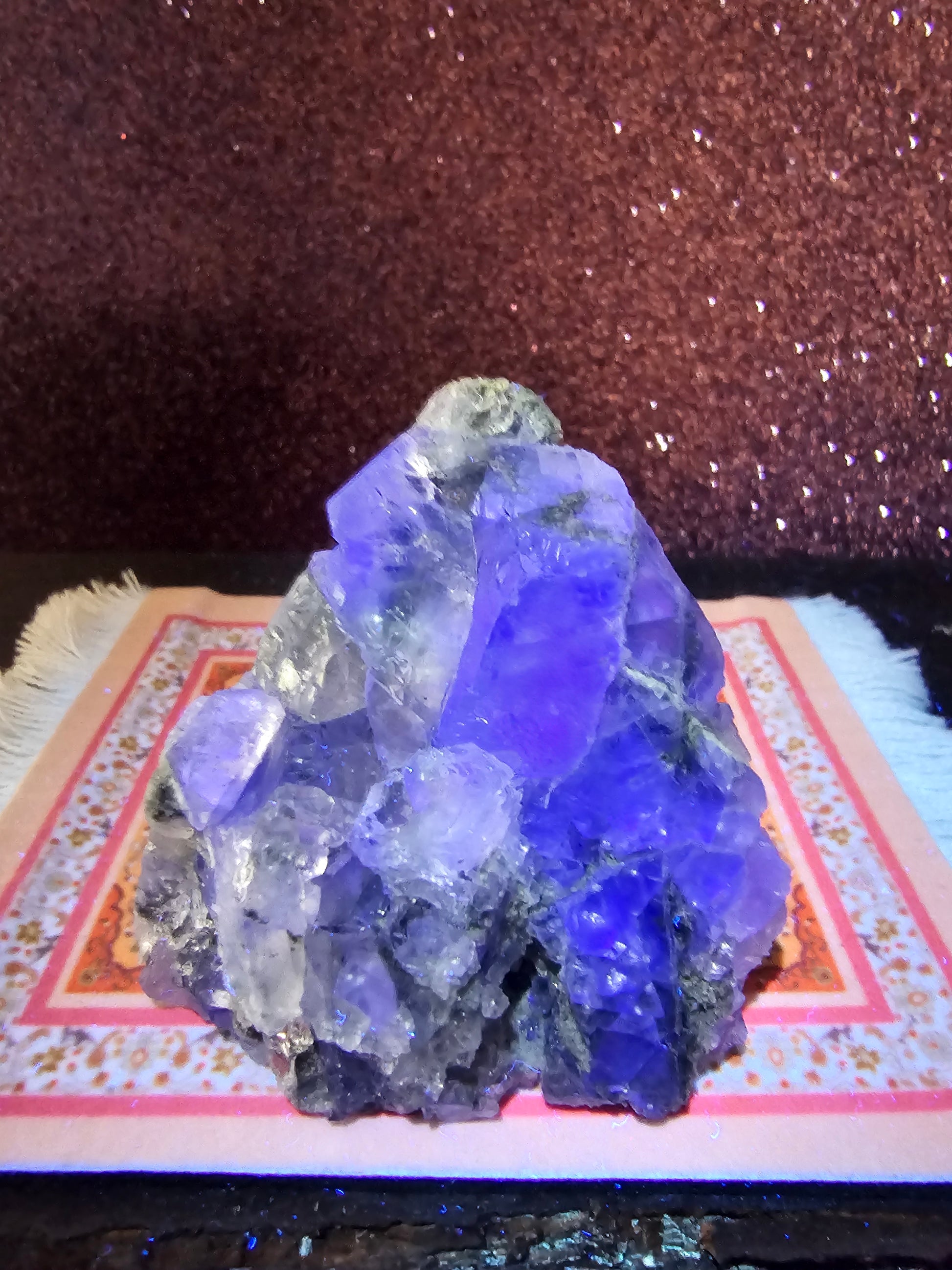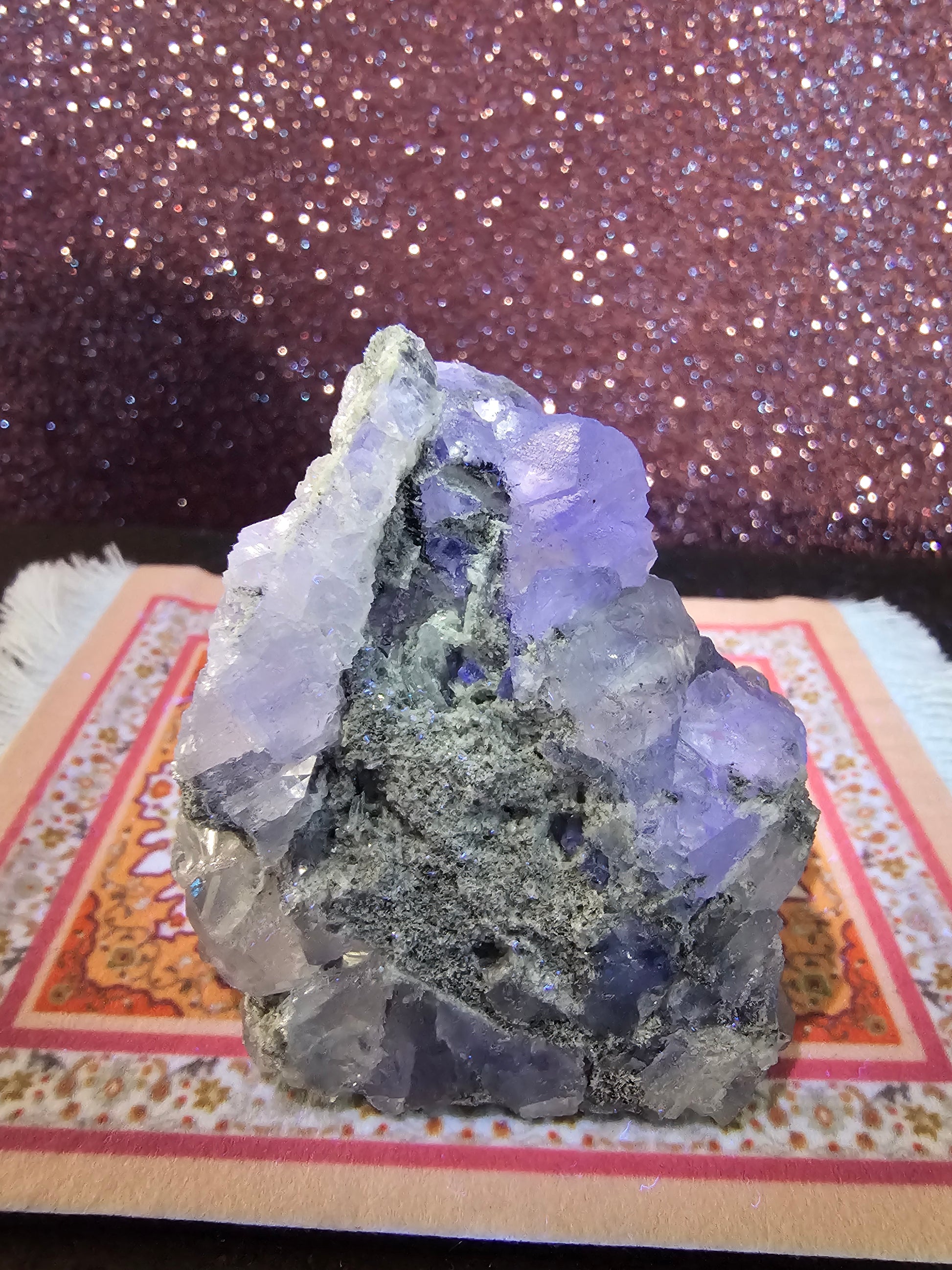 A fluorite specimen is a mineral specimen that consists of the mineral fluorite, which is a colorful and highly fluorescent mineral made up of calcium fluoride. It is typically found in a variety of colors, including purple, green, blue, yellow, and pink, and often displays a variety of unique patterns and shapes. Fluorite specimens are highly sought after by collectors and enthusiasts due to their beauty and unique properties, including their fluorescence under ultraviolet light. They can be used for decorative purposes or as a source of fluorine, which has a wide range of industrial applications.