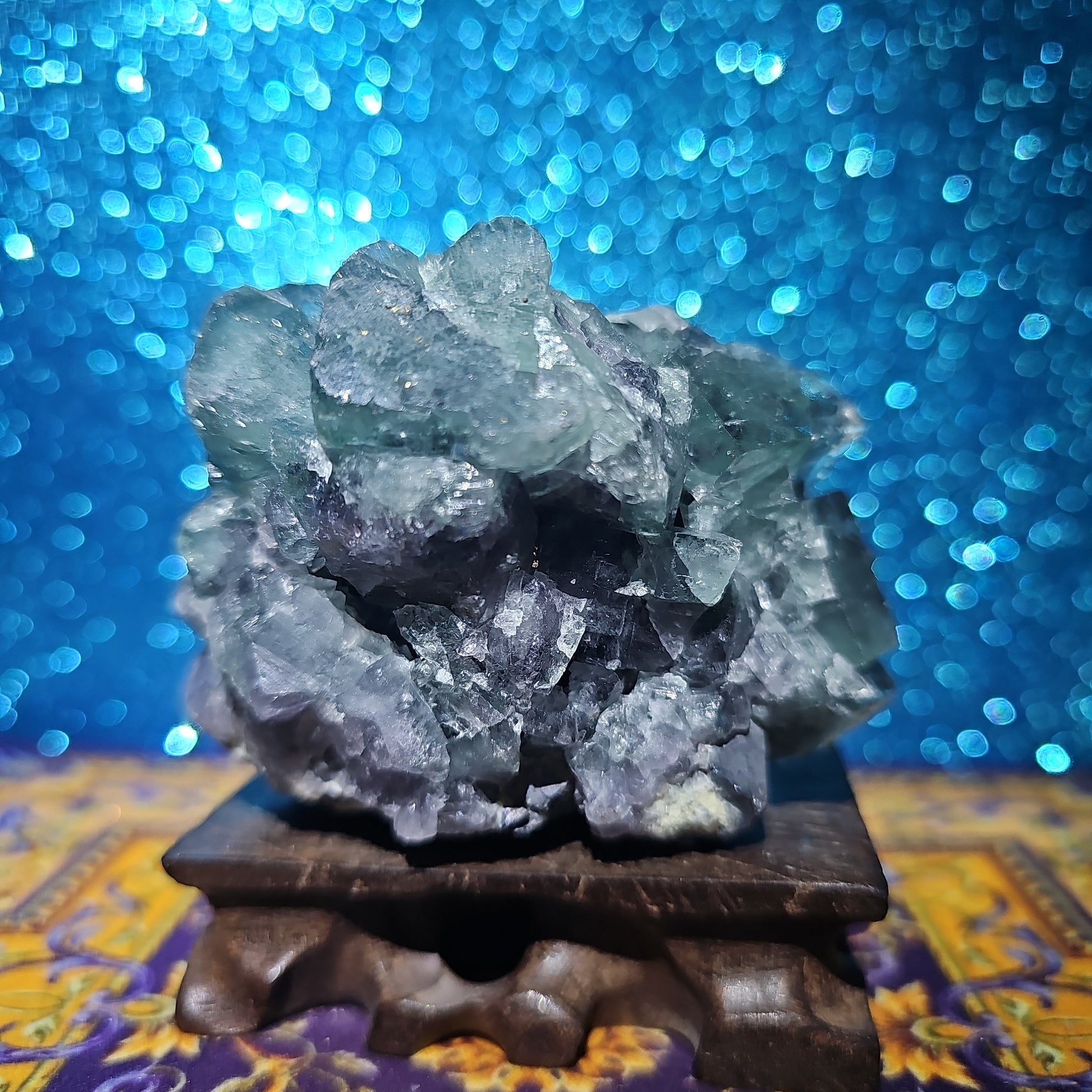 A fluorite specimen is a mineral specimen that consists of the mineral fluorite, which is a colorful and highly fluorescent mineral made up of calcium fluoride. It is typically found in a variety of colors, including purple, green, blue, yellow, and pink, and often displays a variety of unique patterns and shapes. Fluorite specimens are highly sought after by collectors and enthusiasts due to their beauty and unique properties, including their fluorescence under ultraviolet light. They can be used for decorative purposes or as a source of fluorine, which has a wide range of industrial applications.