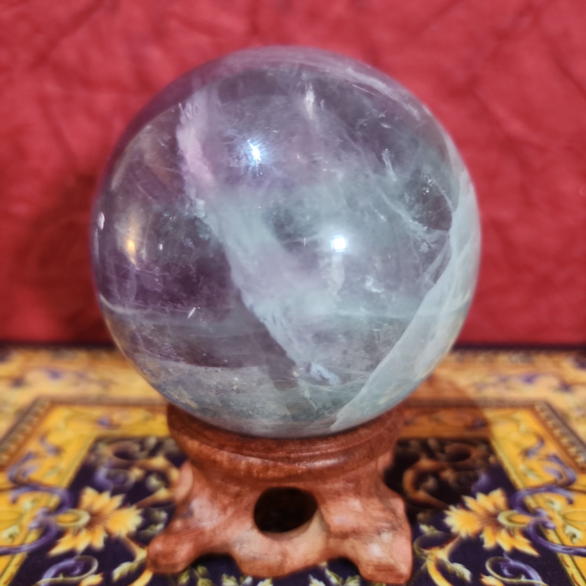 The Fluorite Sphere serves as a visually enchanting centerpiece, radiating an aura of elegance and tranquility wherever it is placed. Its smooth and polished surface reflects light, revealing the intricate layers and natural formations within the crystal. The soothing blend of vibrant hues, ranging from deep purples and greens to soft blues and yellows, creates a captivating display that captivates the eye and sparks curiosity.