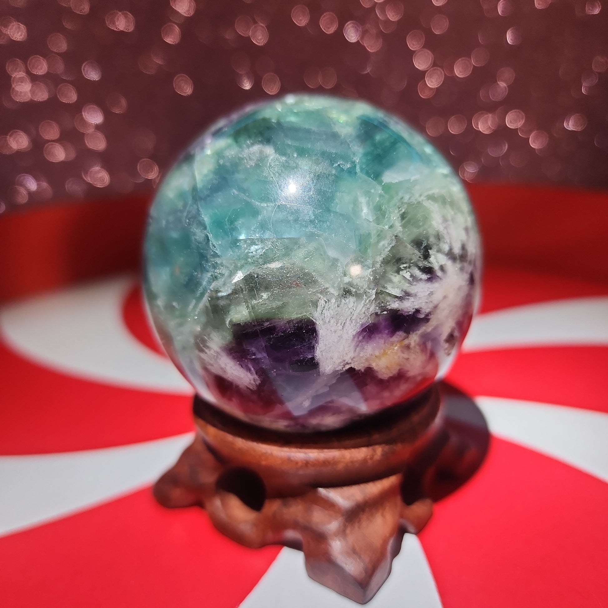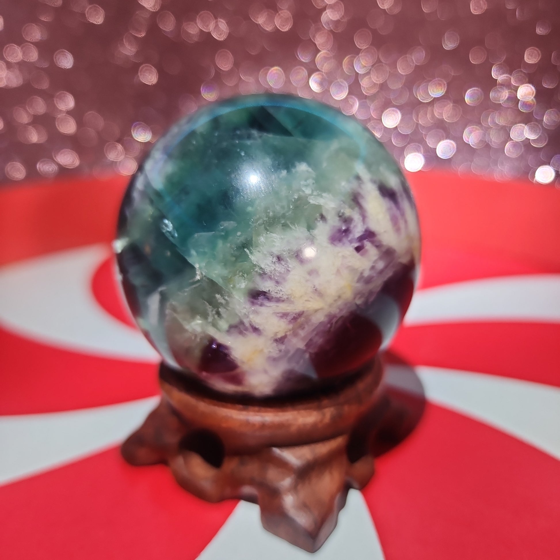 Introducing the captivating Fluorite Sphere, a stunning and versatile decorative object that seamlessly combines beauty and metaphysical properties. Crafted from high-quality fluorite crystal, this sphere showcases the mesmerizing array of colors and patterns unique to fluorite, making it an exquisite addition to any space.