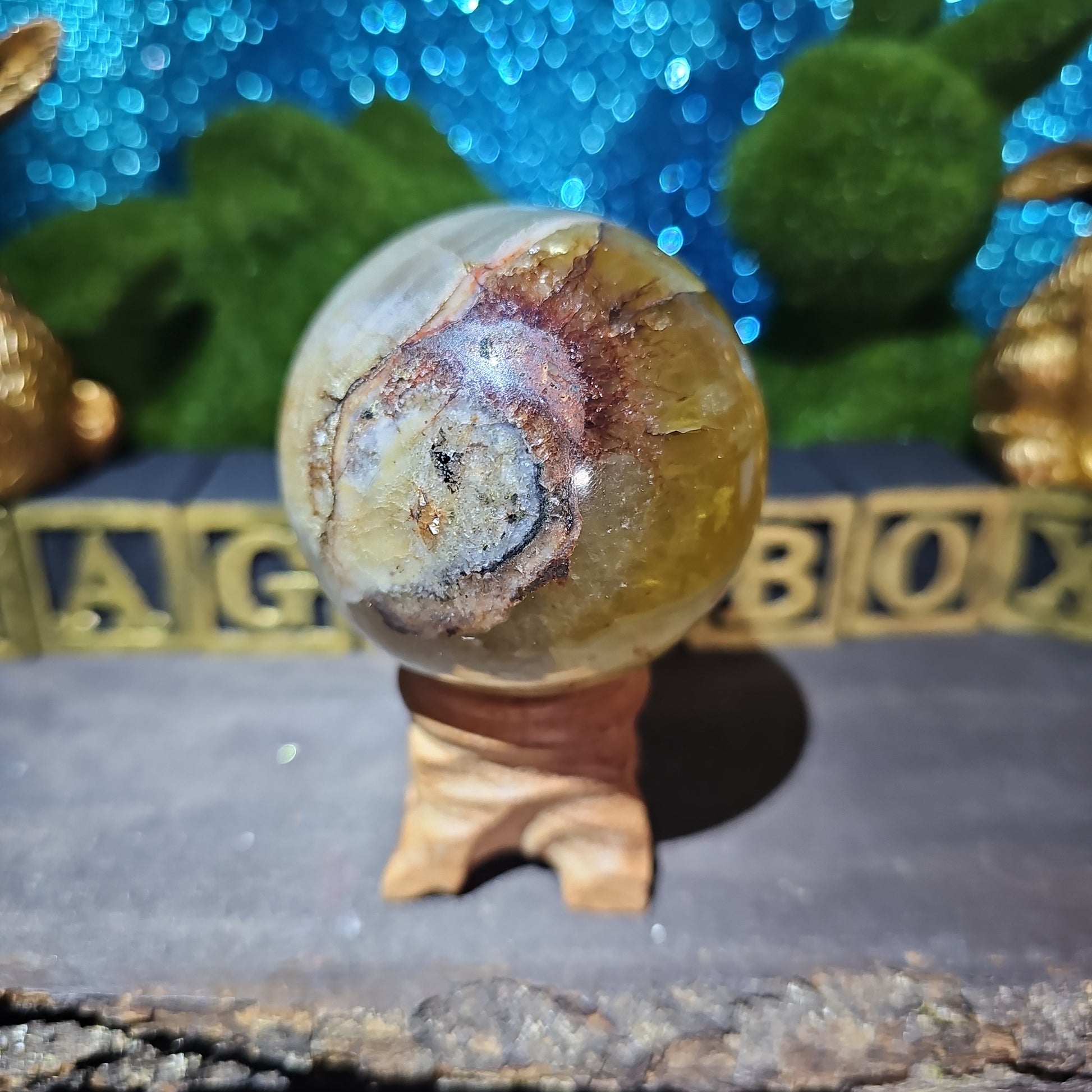 Introducing the captivating Fluorite Sphere, a stunning and versatile decorative object that seamlessly combines beauty and metaphysical properties. Crafted from high-quality fluorite crystal, this sphere showcases the mesmerizing array of colors and patterns unique to fluorite, making it an exquisite addition to any space.