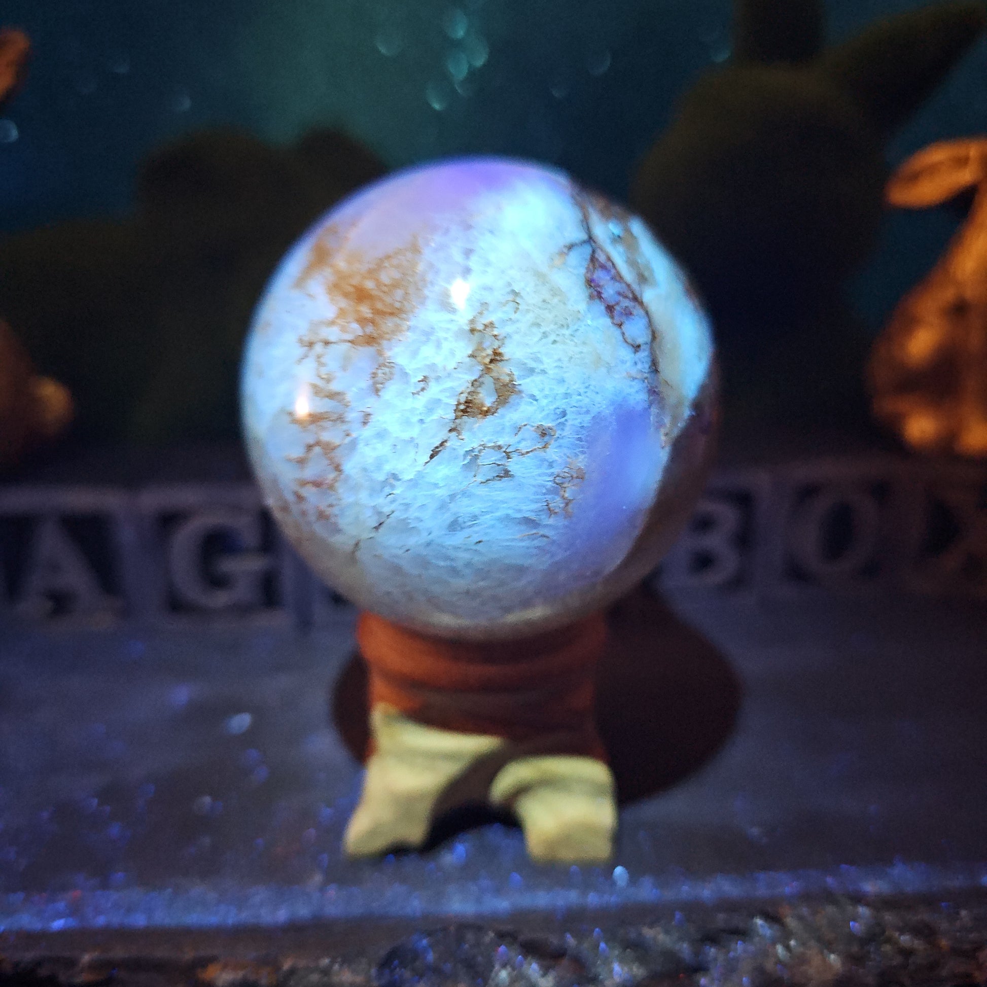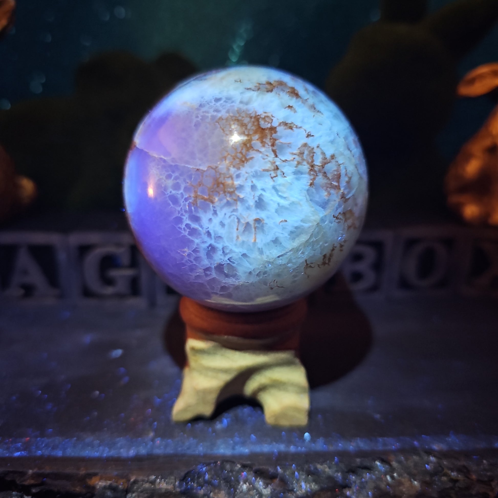 The Fluorite Sphere serves as a visually enchanting centerpiece, radiating an aura of elegance and tranquility wherever it is placed. Its smooth and polished surface reflects light, revealing the intricate layers and natural formations within the crystal. The soothing blend of vibrant hues, ranging from deep purples and greens to soft blues and yellows, creates a captivating display that captivates the eye and sparks curiosity.