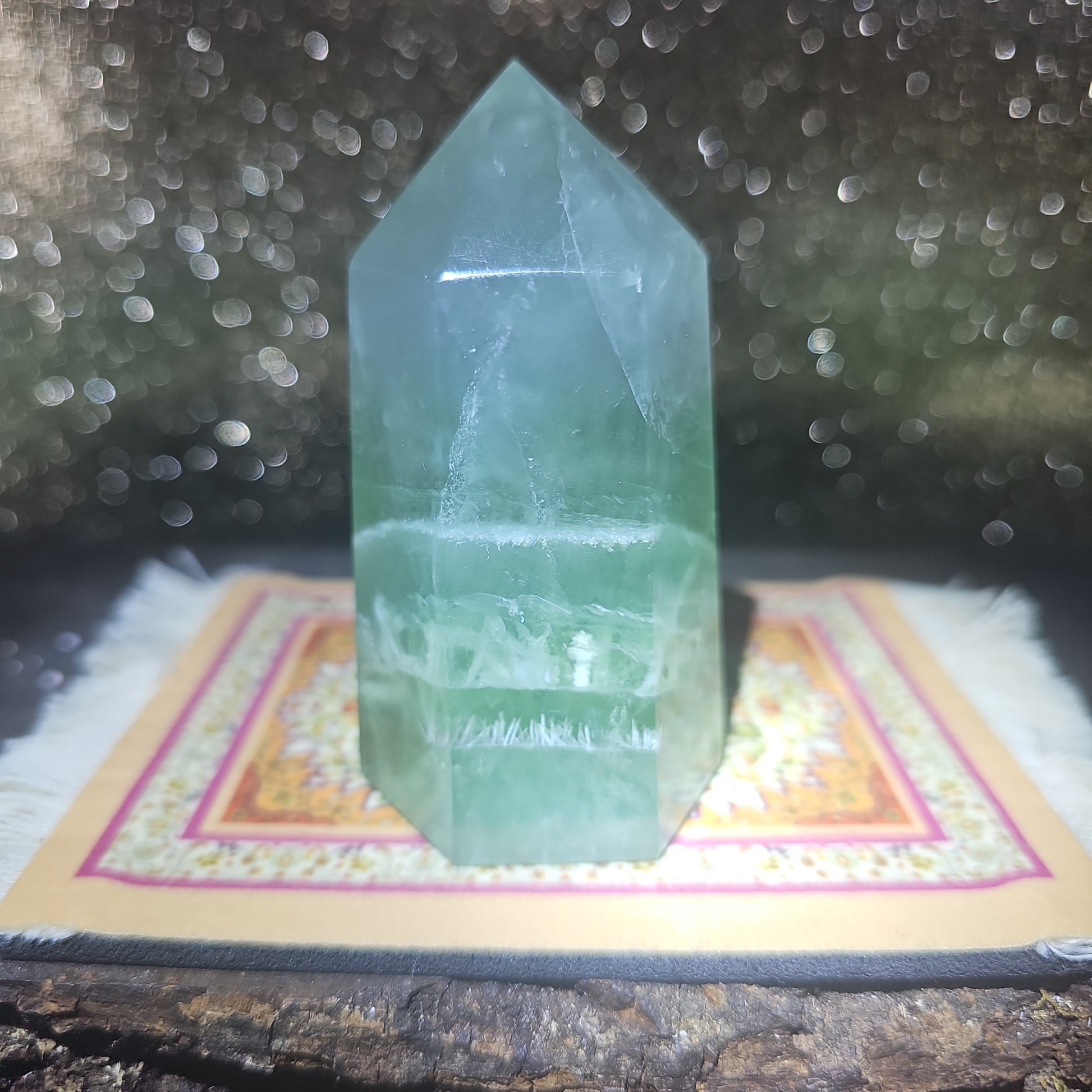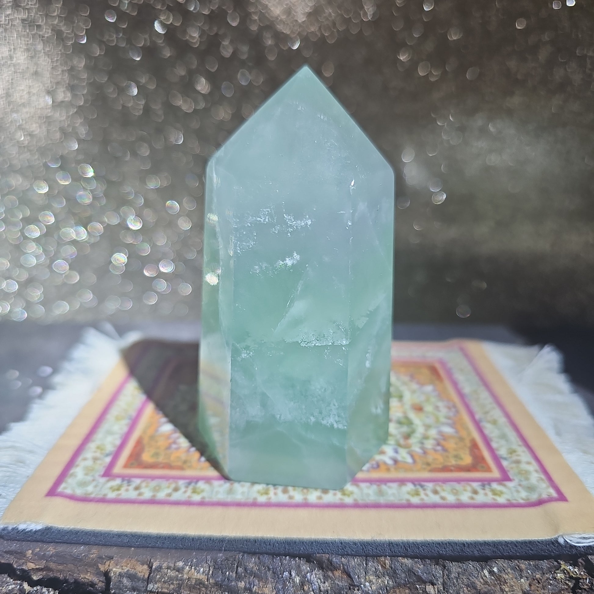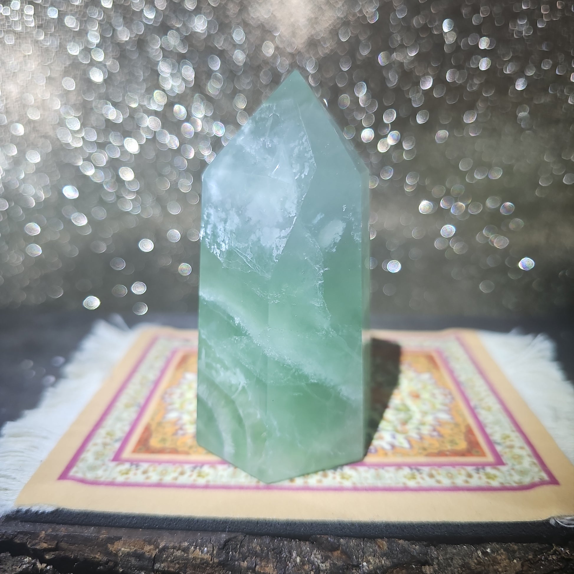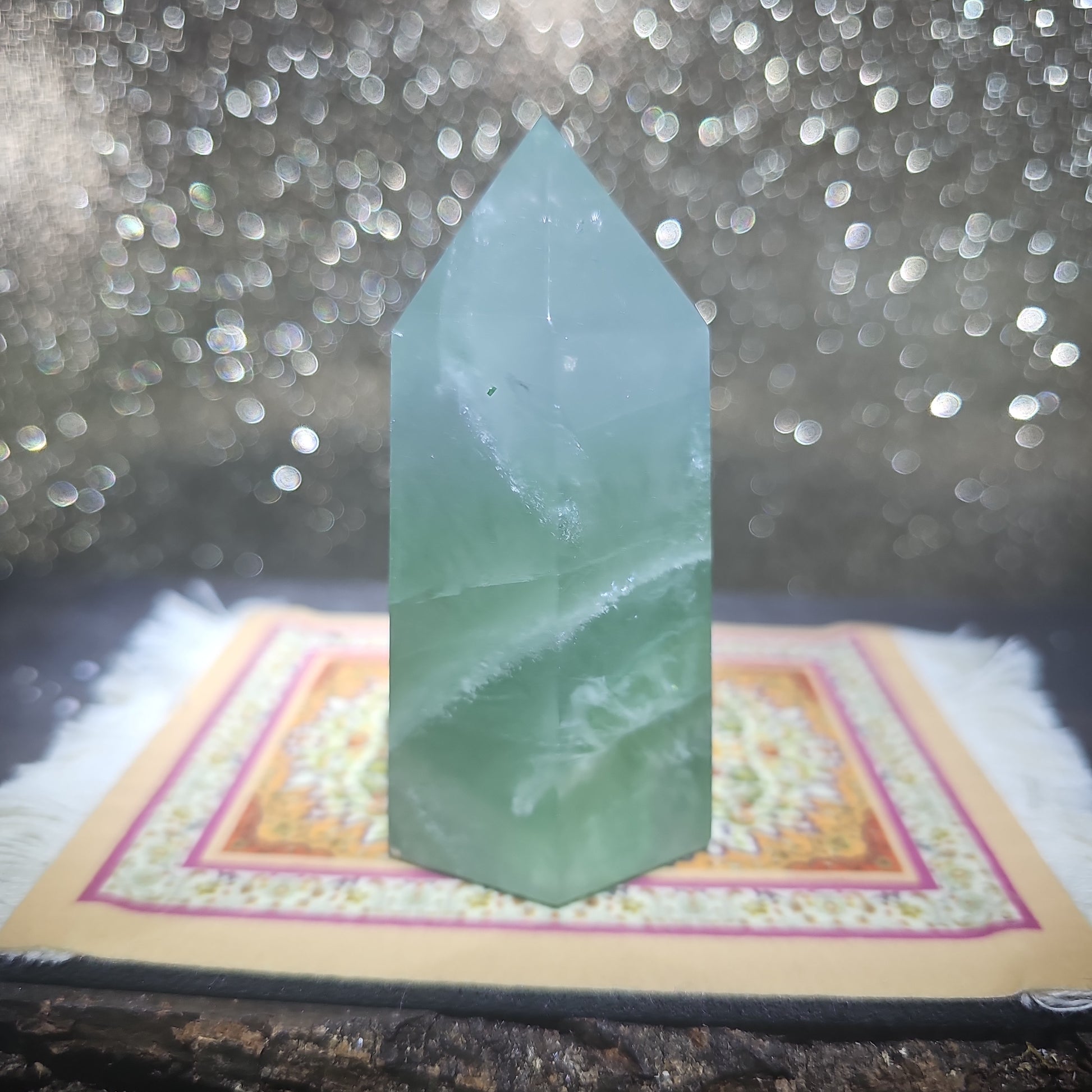 Fluorite is known for its stunning range of colors, from deep purple to vibrant green, and this tower showcases those colors perfectly. Its smooth, polished surface and striking geometric shape make it a perfect centerpiece for your desk, shelf, or meditation space.