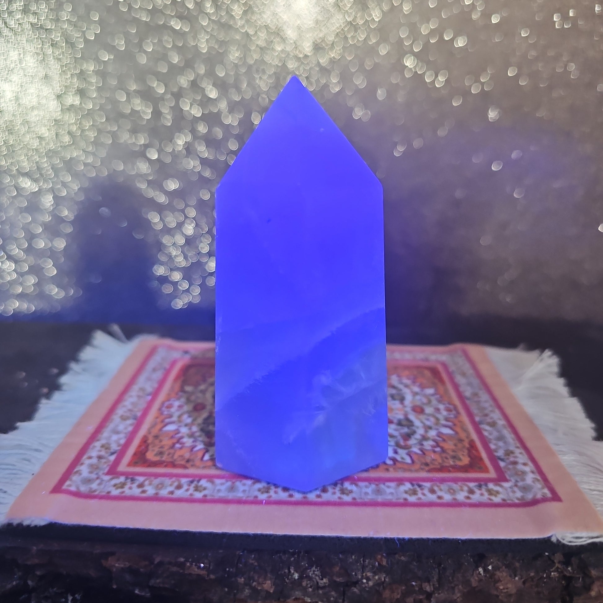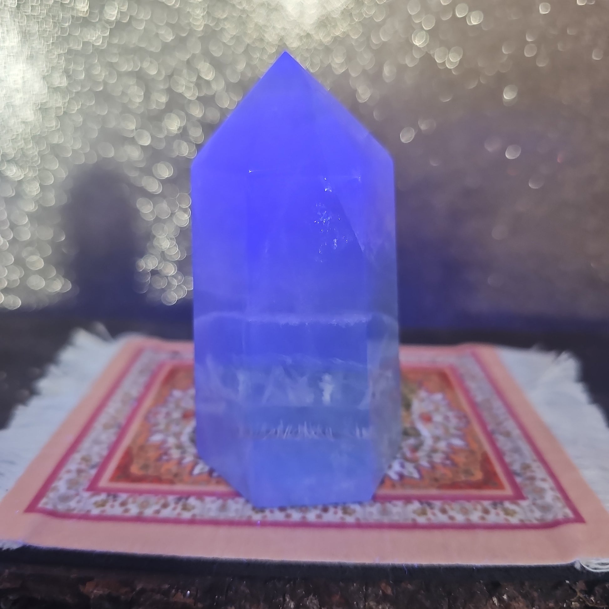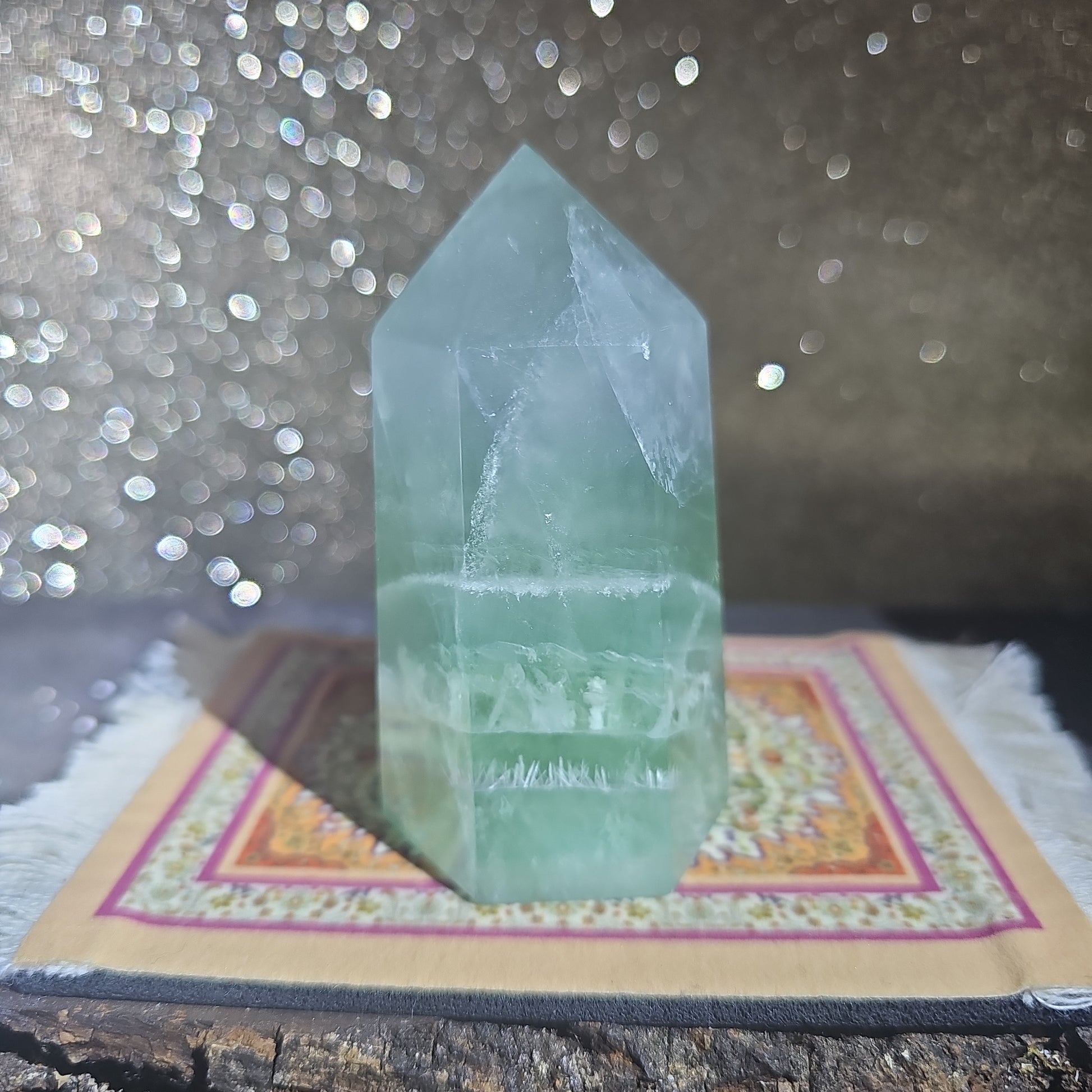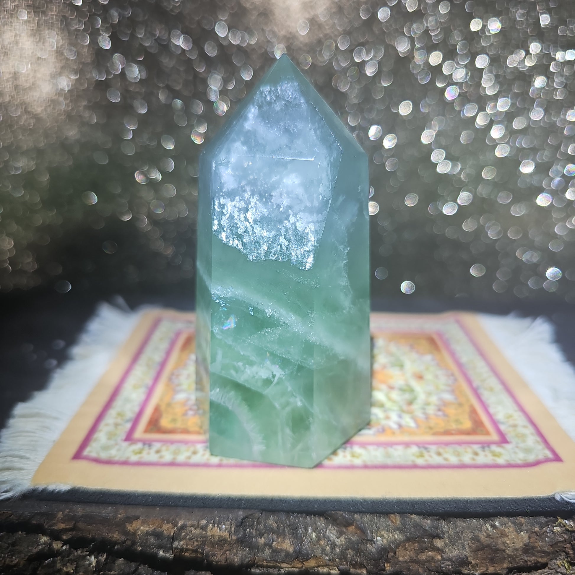 Fluorite is known for its stunning range of colors, from deep purple to vibrant green, and this tower showcases those colors perfectly. Its smooth, polished surface and striking geometric shape make it a perfect centerpiece for your desk, shelf, or meditation space.