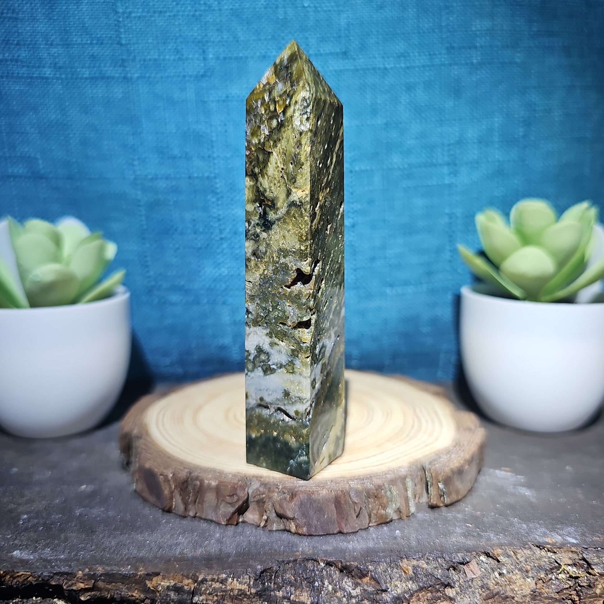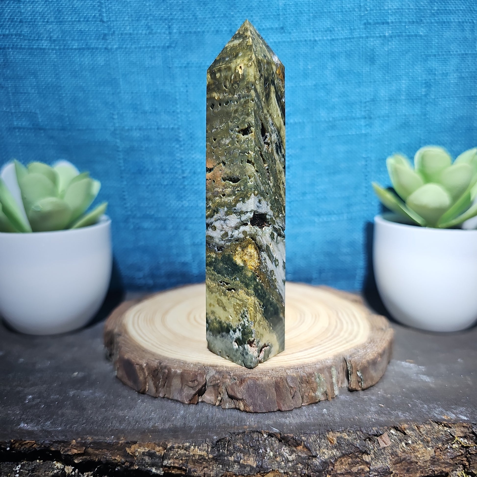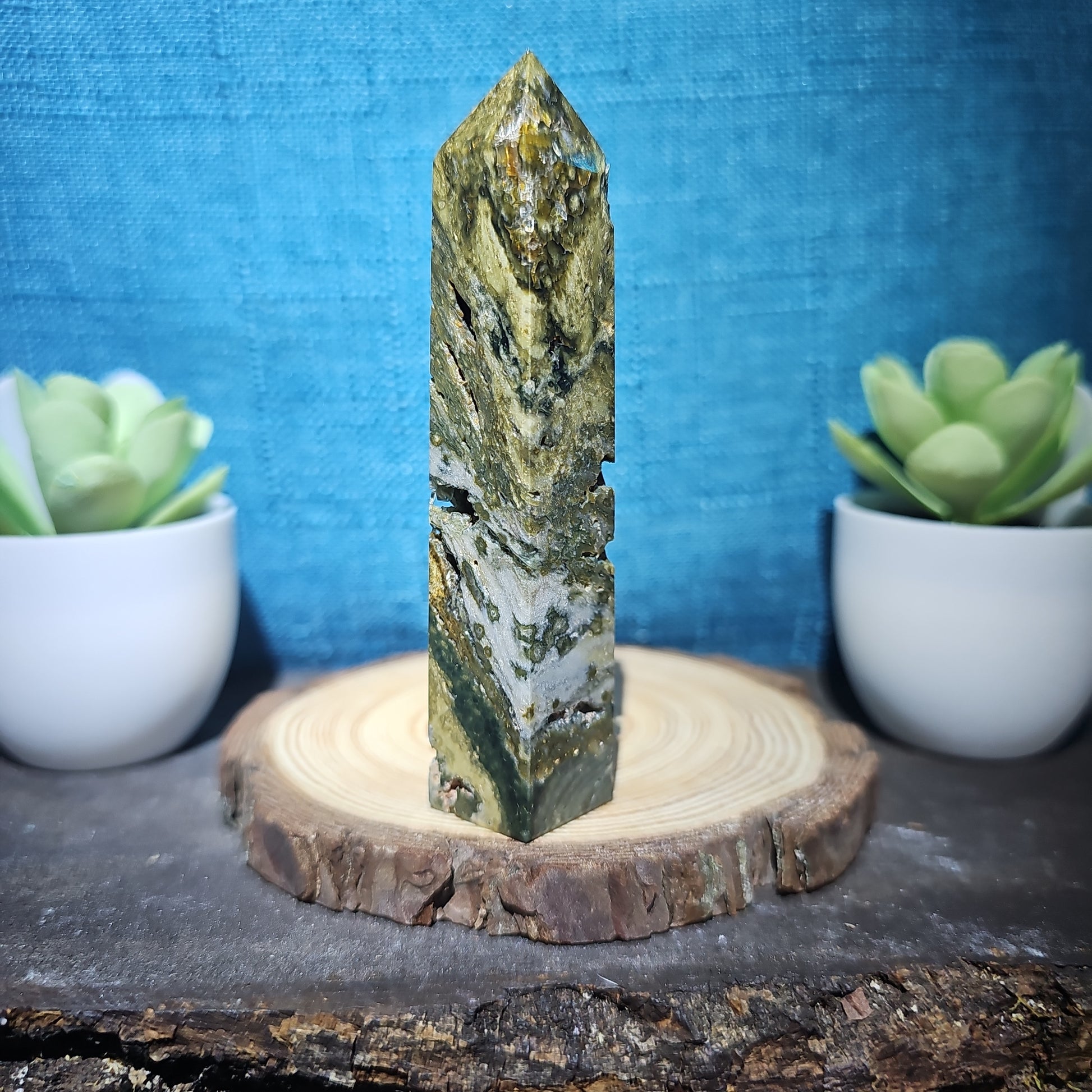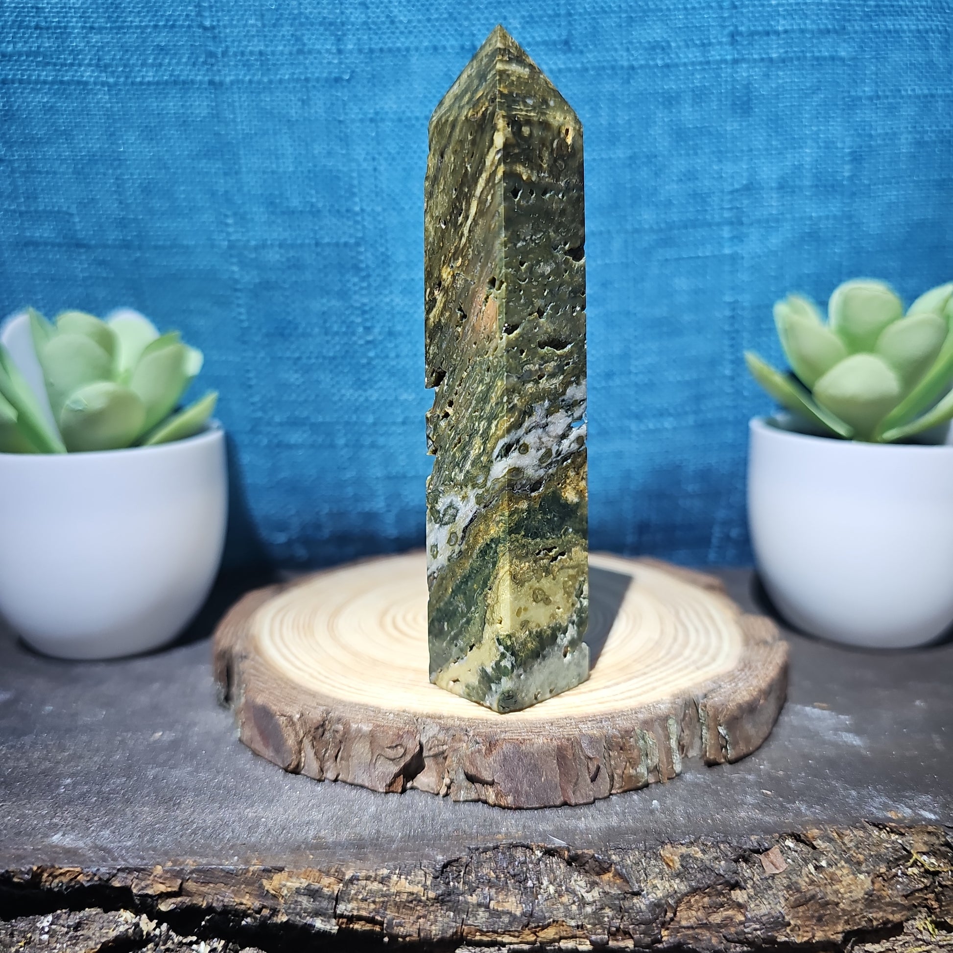 Each Bumblebee Jasper Tower is completely unique, making it a one-of-a-kind piece that you'll treasure for years to come. Whether you're a crystal collector or just looking to add some beauty and positive energy to your home or office, this tower is an excellent choice. Don't miss out on the opportunity to own a piece of the natural world's beauty and power with the Bumblebee Jasper Tower.
