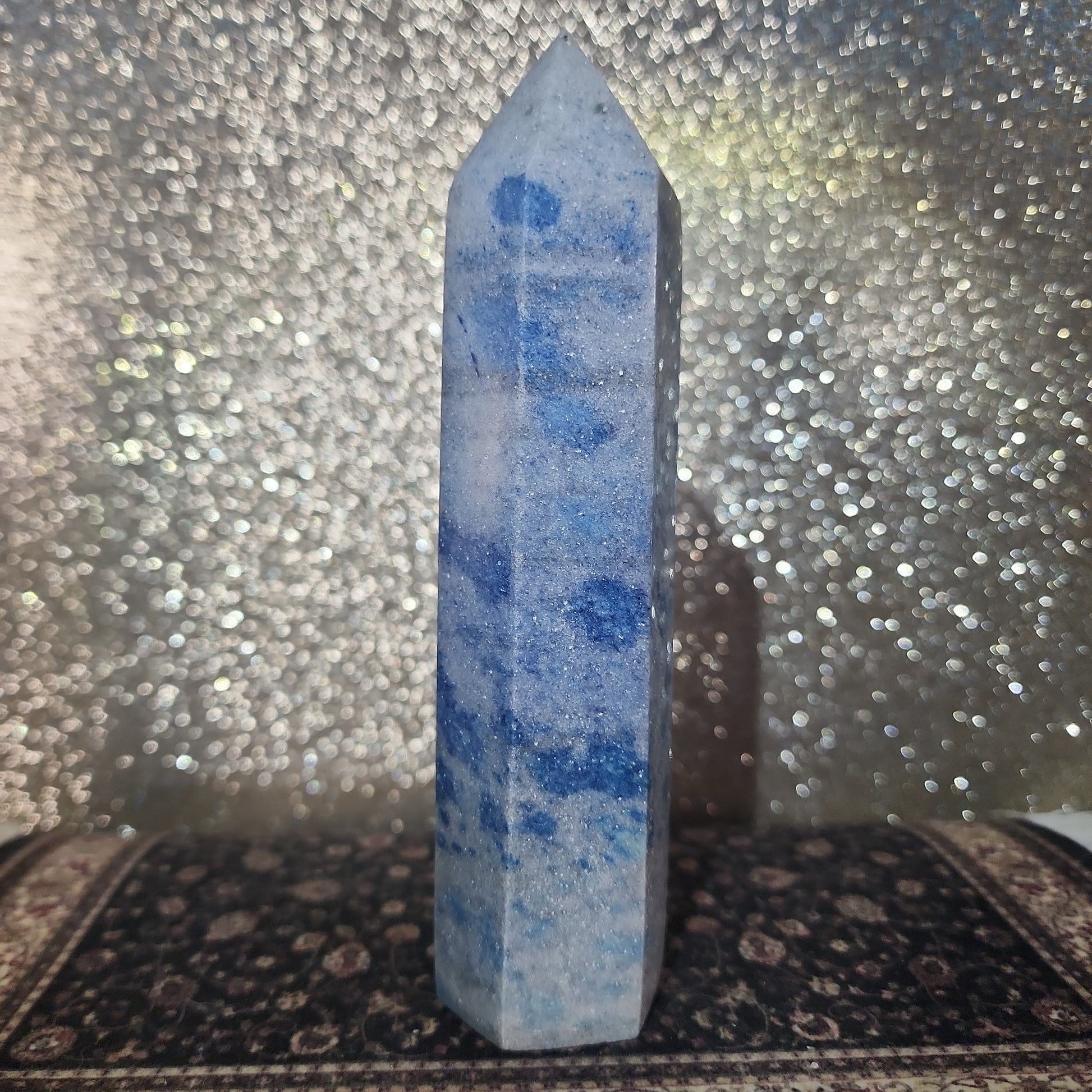 Introducing our K2 Tower, a remarkable piece of natural artistry that takes you on a journey to the remote, rugged peaks of the Karakoram Range, where this unique stone is sourced. The K2 Tower is meticulously crafted from K2 granite, a captivating blend of blue azurite orbs set within a field of white granite. Like a snapshot of the Himalayan wilderness, this tower showcases the serene beauty of nature's contrast. Its polished surface reflects the grandeur of the world's second-highest mountain, evoking a sense of adventure and awe. Whether displayed as a symbol of exploration, a meditation focal point, or a collector's gem, the K2 Tower elevates any space with its harmonious fusion of earthy elegance and mountainous mystique. Embrace the grounding energies and timeless aesthetics of this rare gem, a tribute to the rugged beauty of the natural world. Illuminate your environment with the inspiring allure of the K2 Tower, a true testament to the Earth's majestic grandeur.