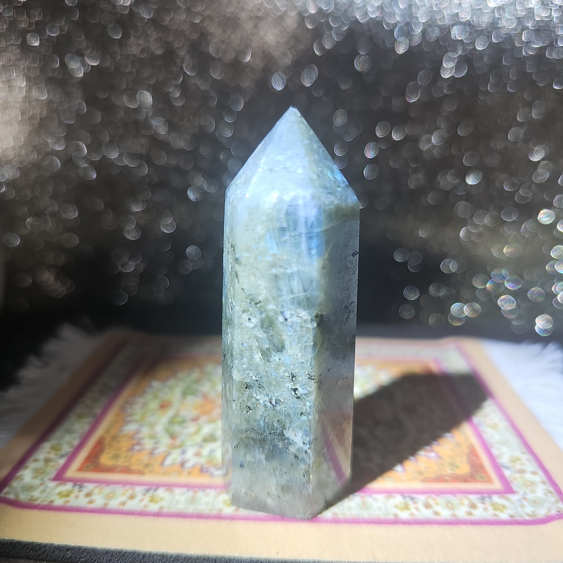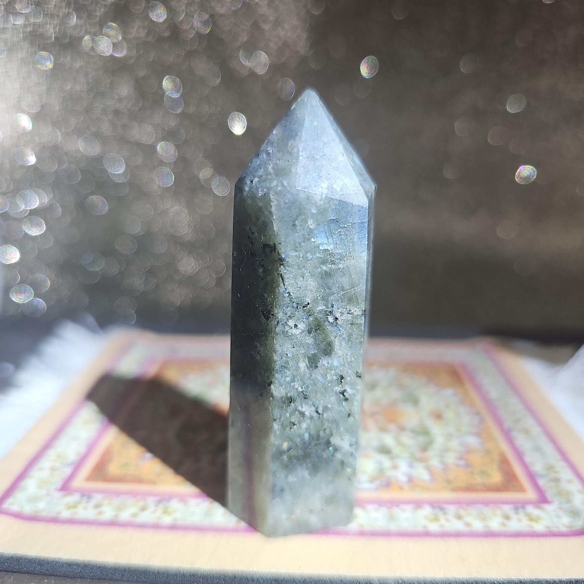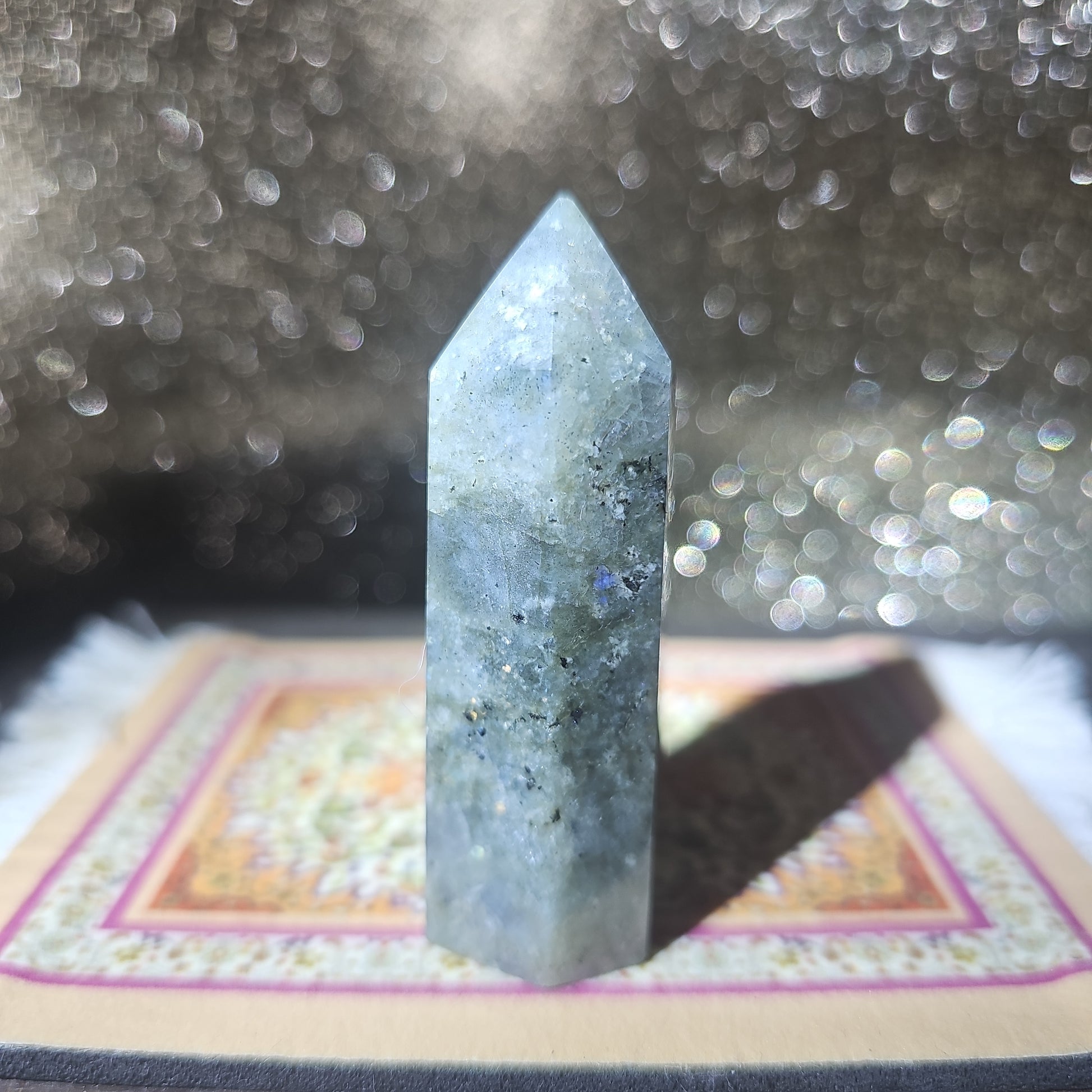Introducing the Labradorite Tower, a stunning crystal tower that will add a touch of elegance and mystique to any space. Made from genuine labradorite, this tower features a unique iridescence that shimmers in the light, displaying hues of blue, green, and gold. Labradorite is known for its protective and transformative qualities, making this tower the perfect addition to any spiritual or meditative practice.