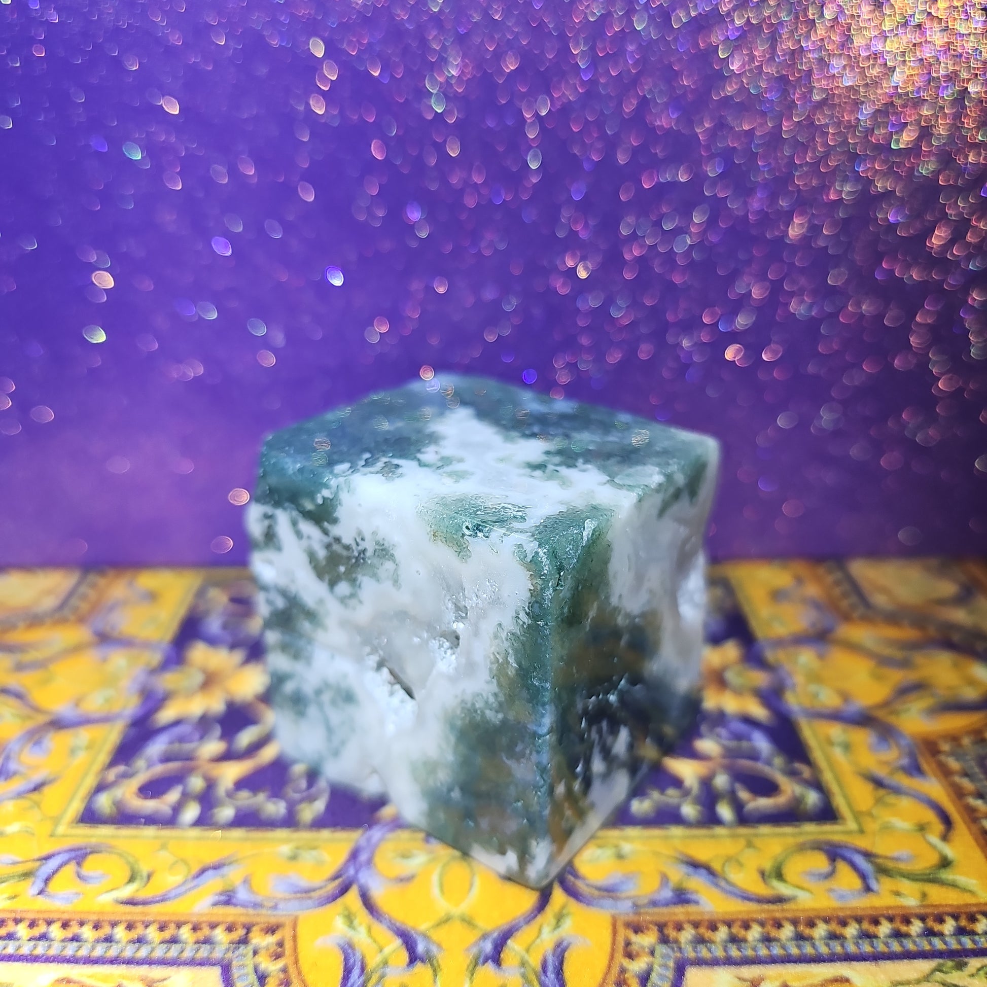 Moss agate is known for its grounding and calming properties, making this cube the perfect addition to any meditation or relaxation space. Its smooth edges and solid weight make it a satisfying item to hold and fidget with during times of stress.