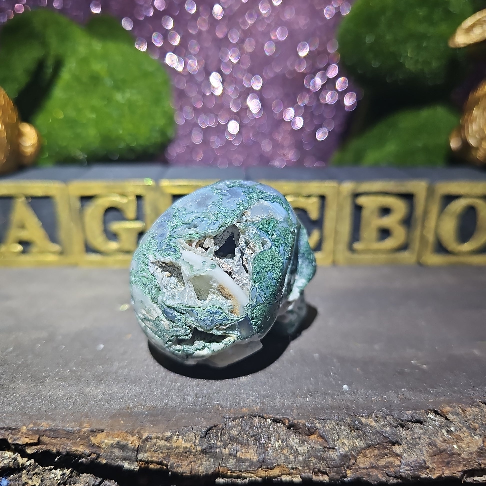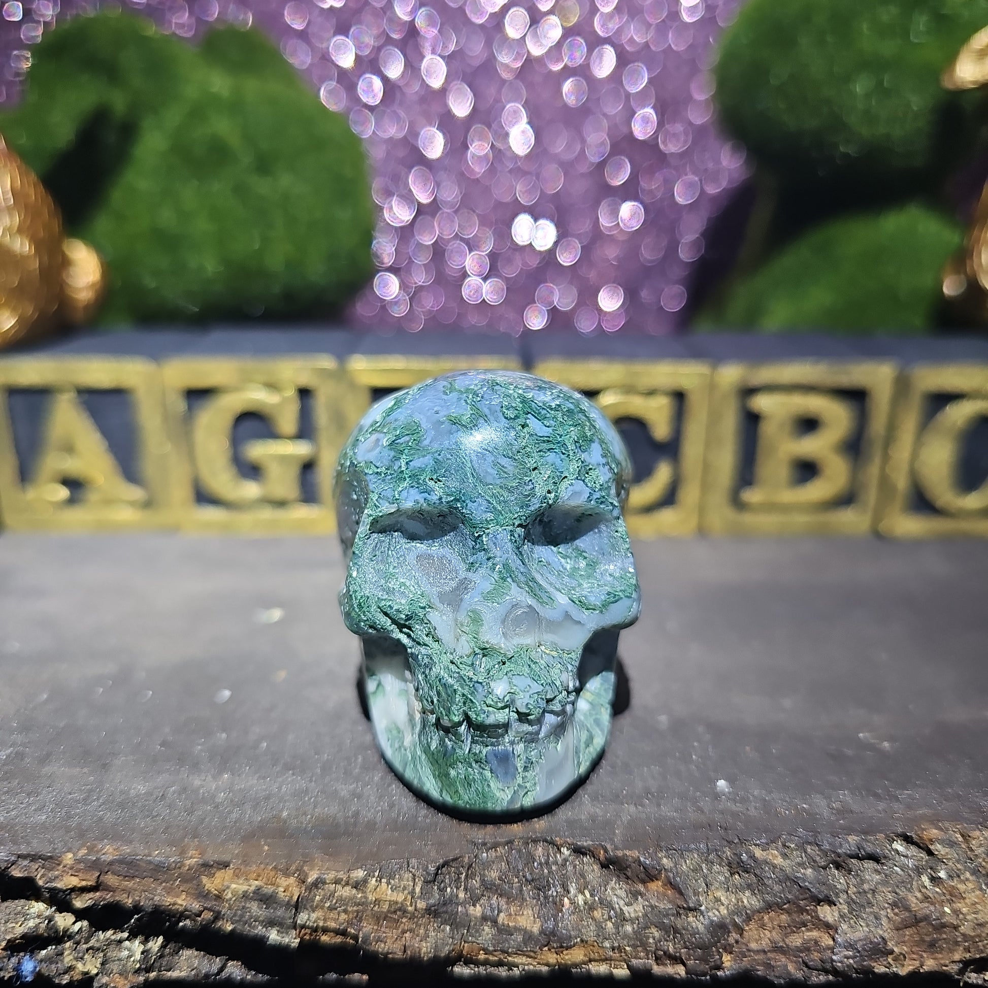 Moss Agate Skull