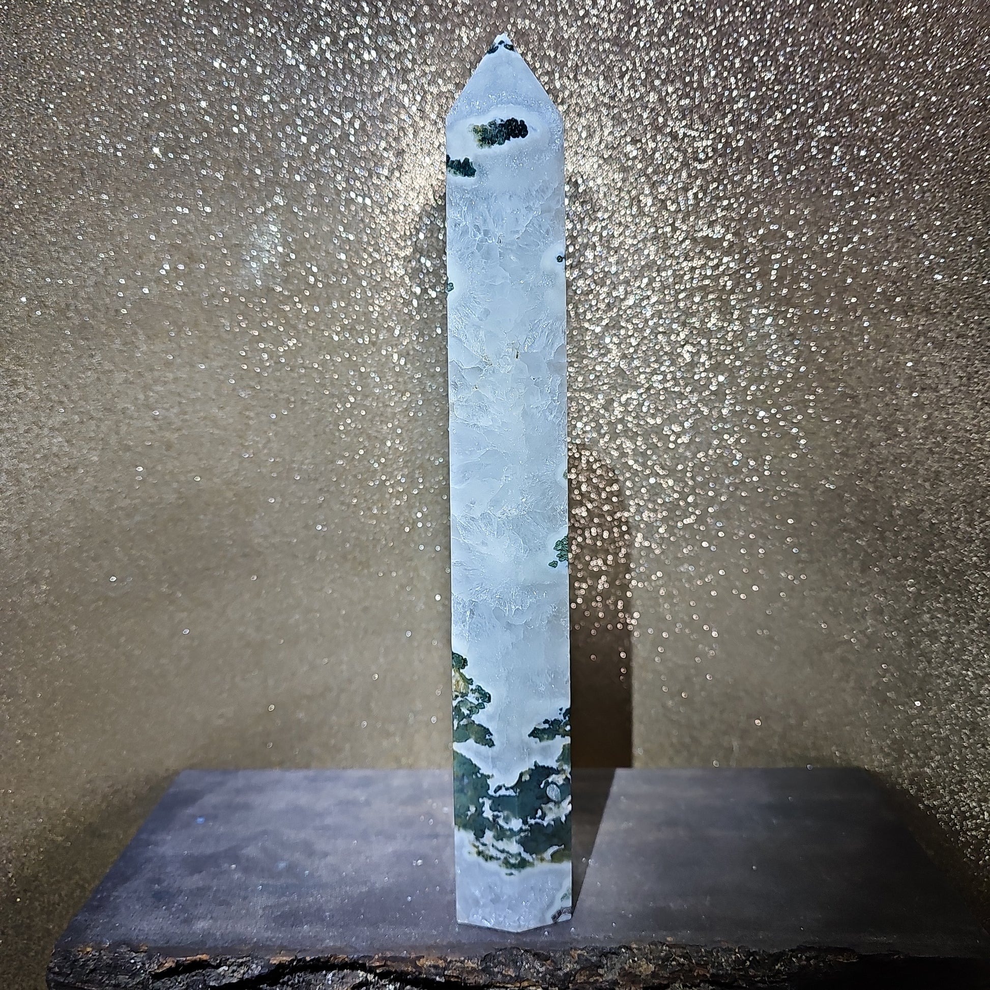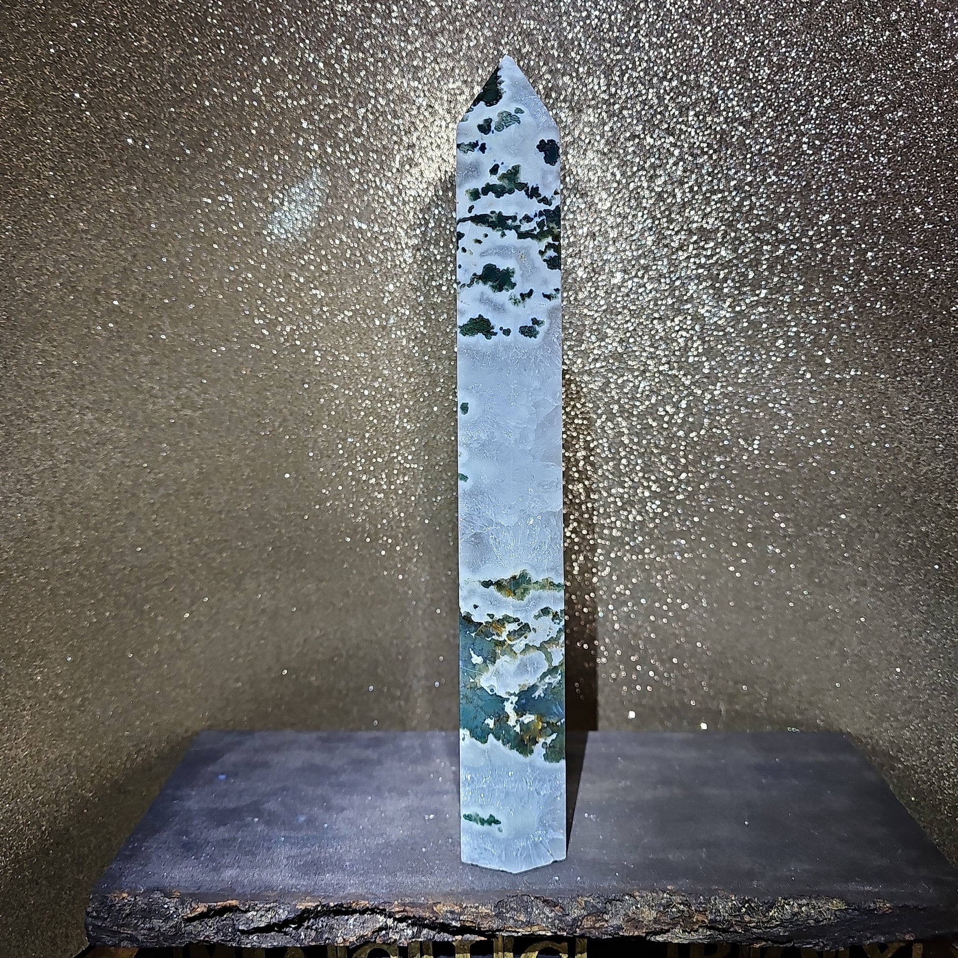 Introducing our stunning Moss Agate Tower, a beautiful addition to any crystal collection or home decor. Made from high-quality moss agate, each tower is unique with its own distinctive patterns and markings.