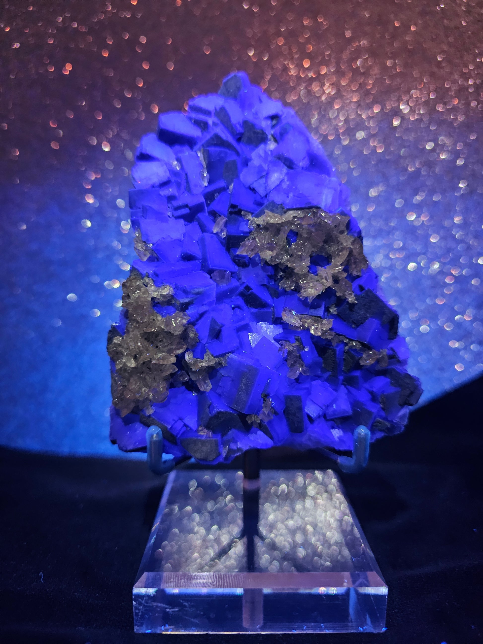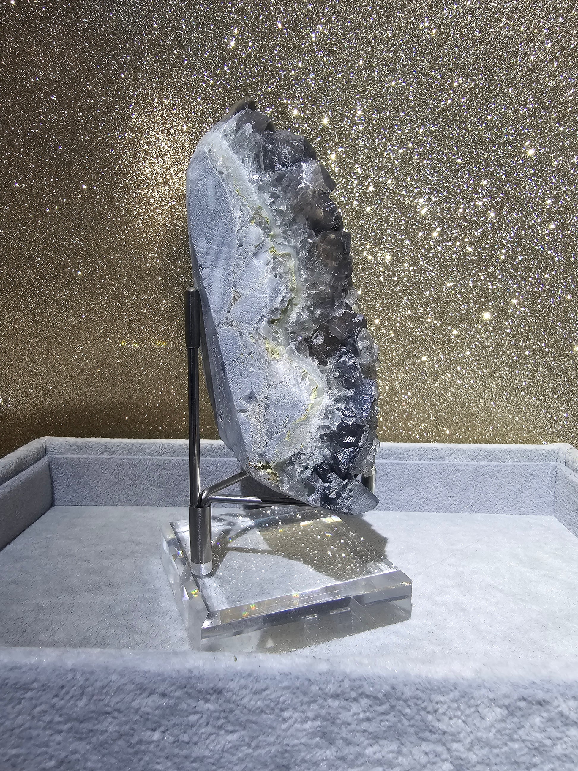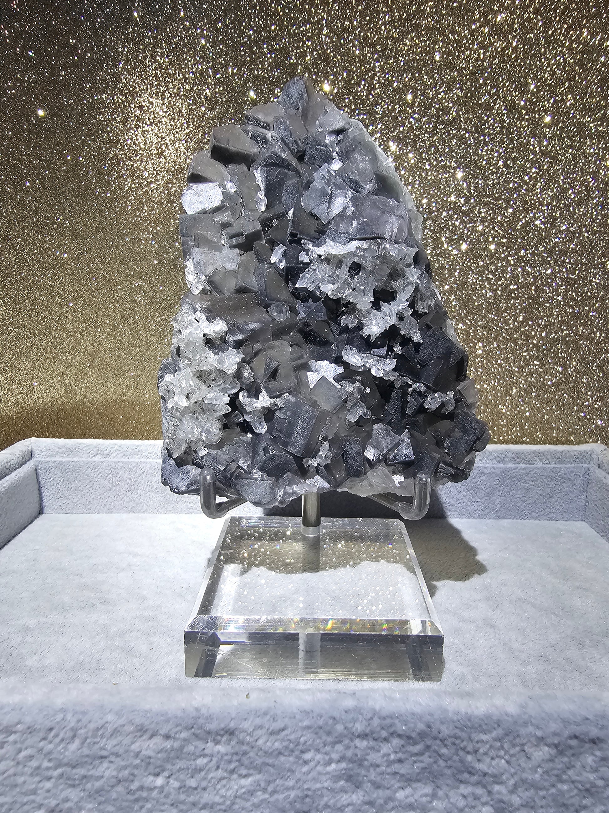 A fluorite specimen is a mineral specimen that consists of the mineral fluorite, which is a colorful and highly fluorescent mineral made up of calcium fluoride. It is typically found in a variety of colors, including purple, green, blue, yellow, and pink, and often displays a variety of unique patterns and shapes. Fluorite specimens are highly sought after by collectors and enthusiasts due to their beauty and unique properties, including their fluorescence under ultraviolet light. They can be used for decorative purposes or as a source of fluorine, which has a wide range of industrial applications.