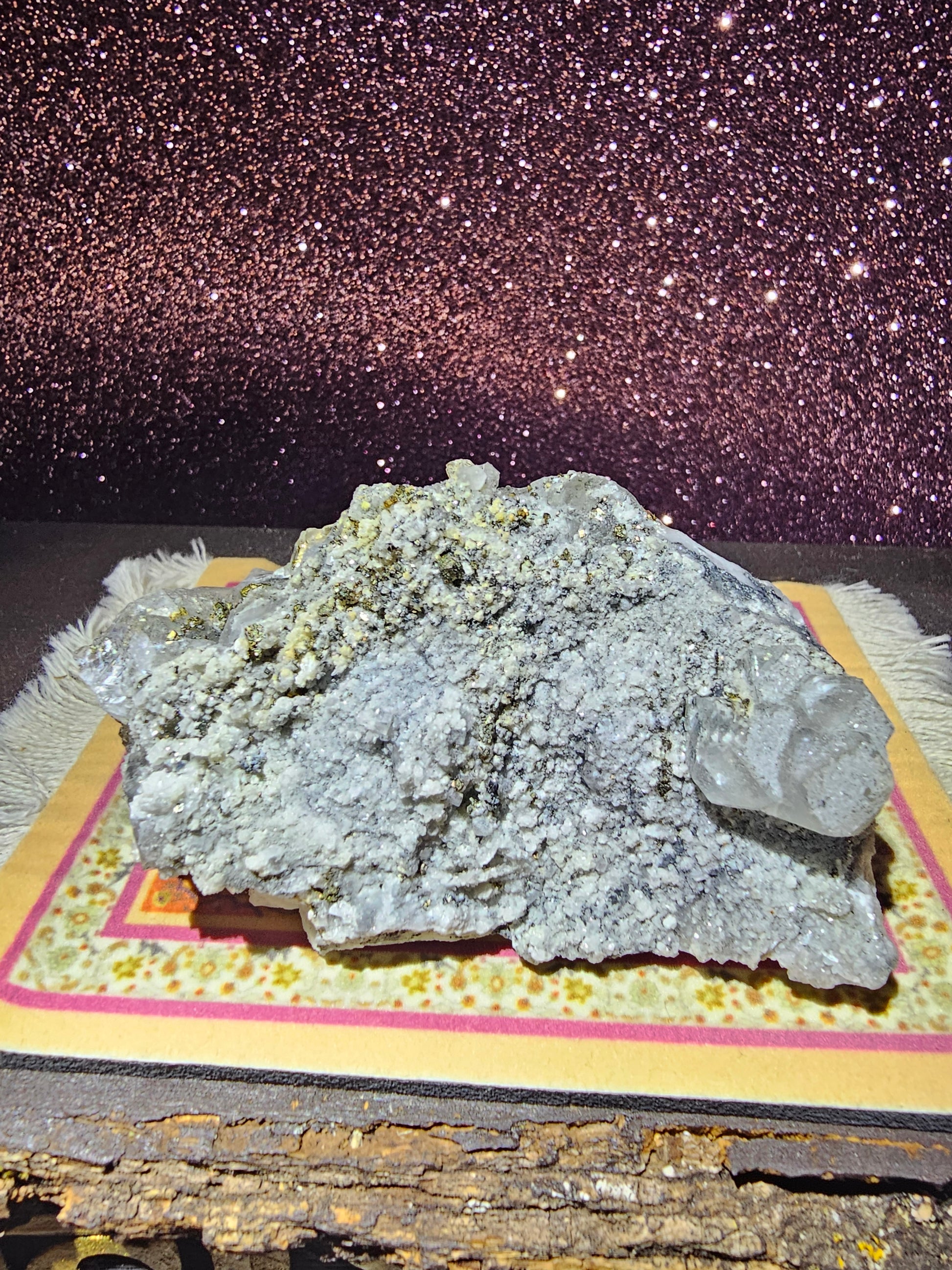 Unearth the mystique of our Pyrite Quartz Cluster Geode, a natural wonder that marries the raw beauty of geology with the brilliance of pyrite and quartz crystals. Nestled within a captivating geode formation, these pyrite specimens glisten with a mesmerizing golden luster, harmoniously intertwined with quartz crystals that add a touch of ethereal elegance. Whether displayed as a centerpiece or admired in your collection, this geode offers a glimpse into the Earth's captivating secrets, making it a striking conversation piece and a stunning addition to any space.