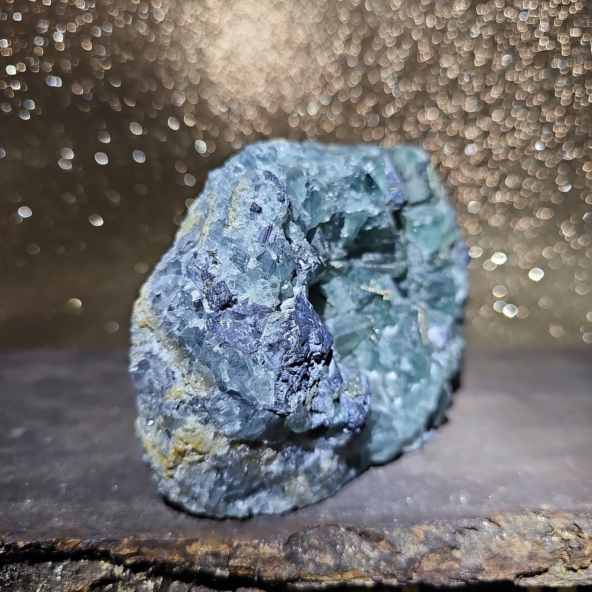 Fluorite, known for its soothing and harmonizing energies, takes on an extra layer of brilliance with the addition of pyrite dust. The pyrite's golden sparkles add a touch of glamour and grounding properties to the already captivating fluorite.