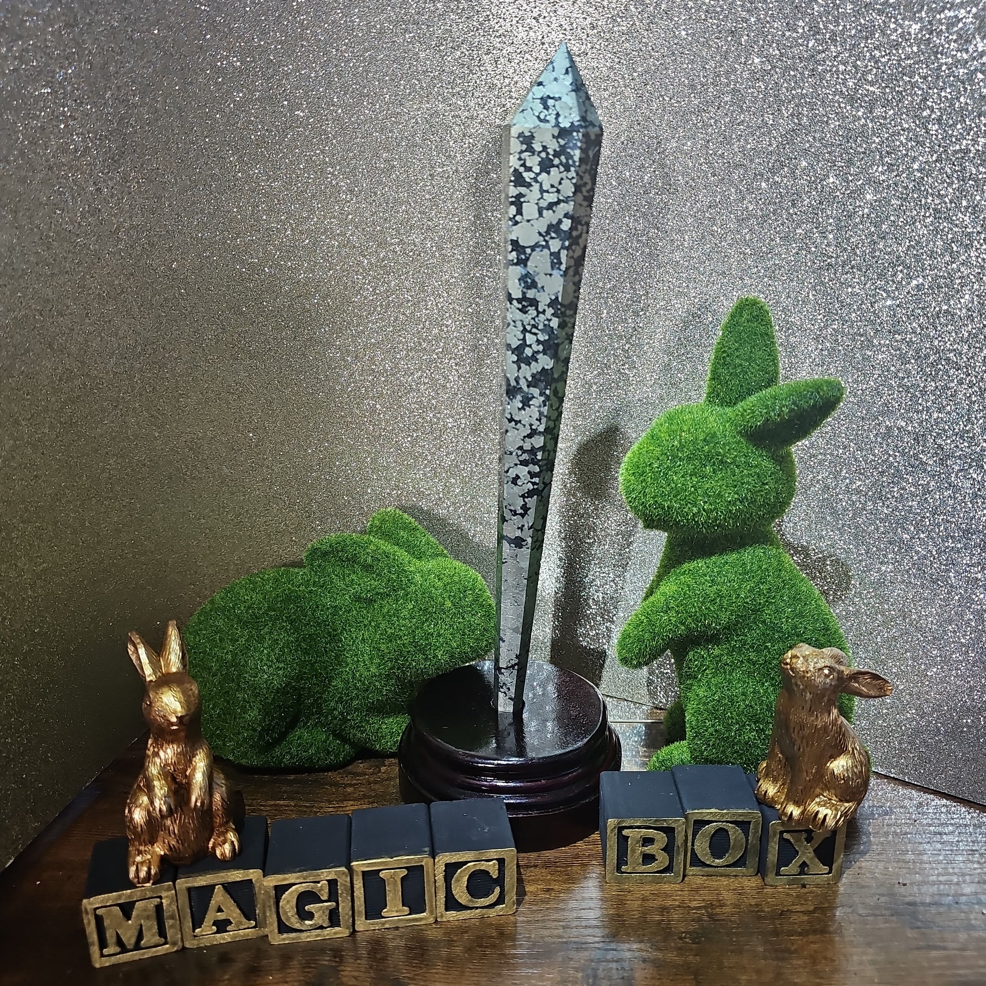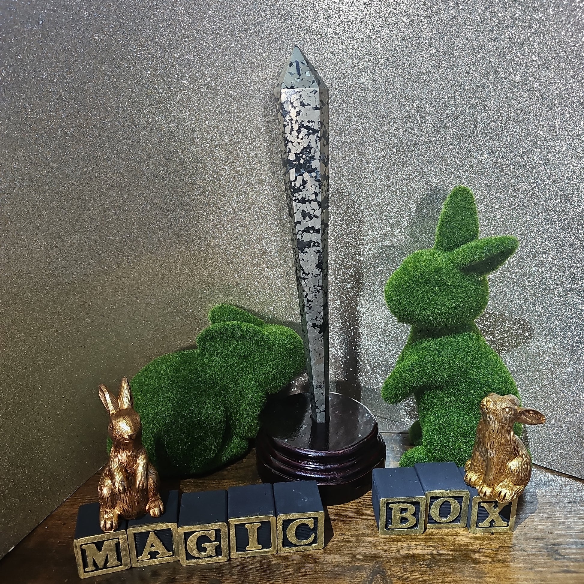 Each wand freeform is meticulously polished to highlight the natural beauty and unique formations of pyrite, creating a stunning focal point for any space. Paired with a sleek stand, this piece becomes a captivating addition to your altar, meditation area, or crystal collection.