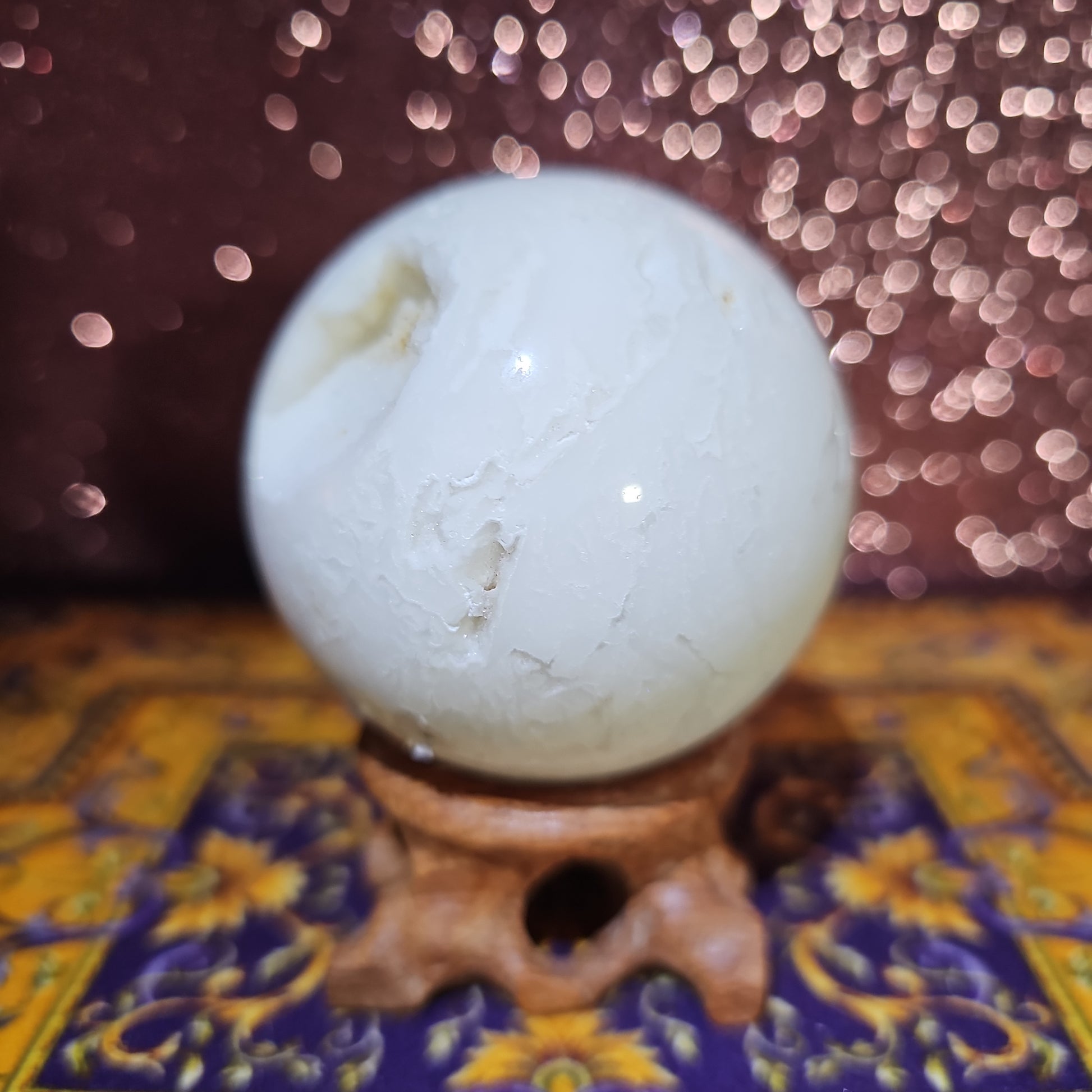 As you hold the Snow Agate Sphere in your hands, you'll be enchanted by its subtle yet enchanting patterns, reminiscent of delicate snowflakes dancing in the breeze. This exquisite gem serves as a gentle reminder of the beauty found in simplicity, encouraging you to embrace moments of tranquility and inner reflection.