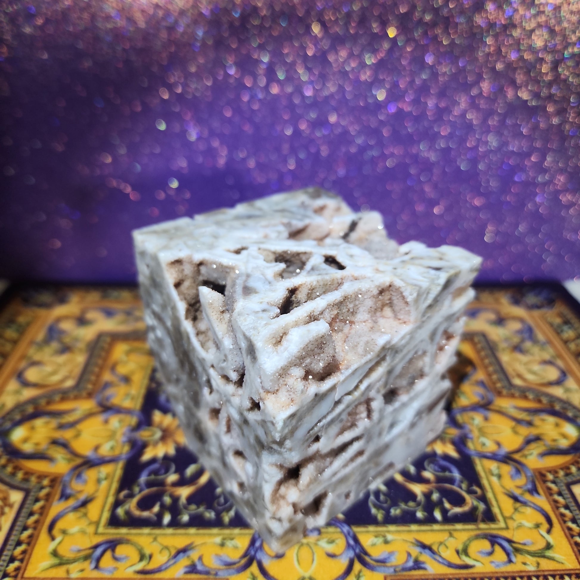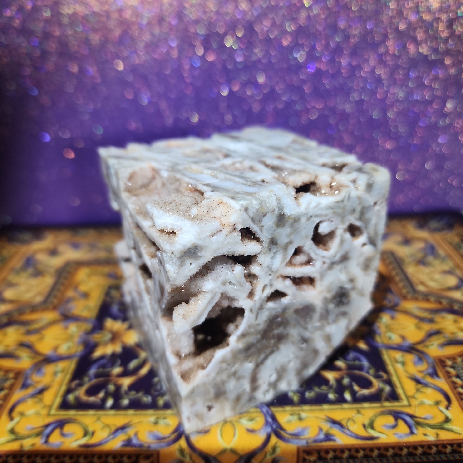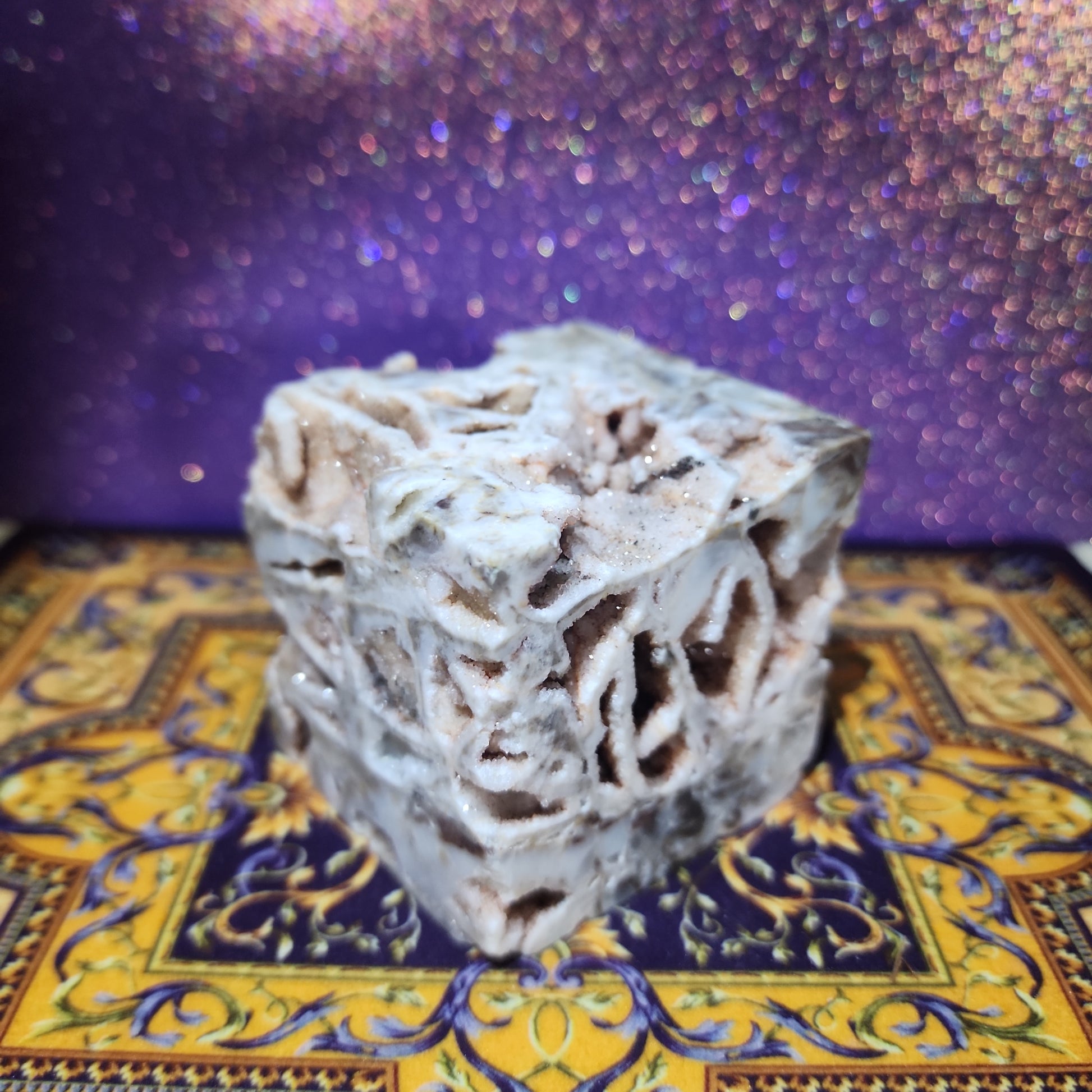 The Sphalerite Cube is a unique and beautiful crystal specimen that is sought after by collectors and crystal enthusiasts alike. This cube-shaped mineral is composed of zinc, iron, and sulfur, and is known for its distinct brown, yellow, or orange coloration. The crystal is often found in mines and is prized for its perfect cubic shape, which is a result of its unique crystal structure. Each Sphalerite Cube is completely unique, with its own distinct coloration and patterns. These beautiful crystals can be used for decorative purposes or as a meditation aid, and are sure to add a touch of natural beauty to any collection.