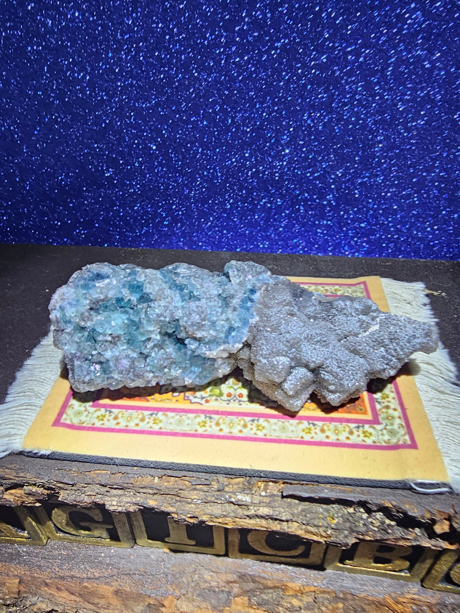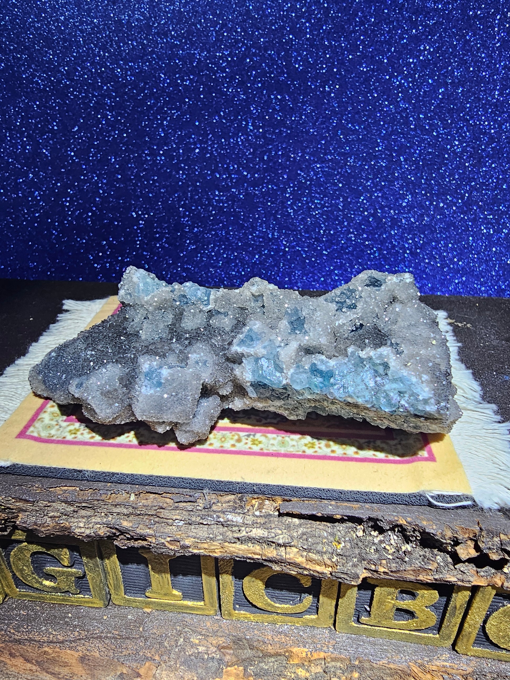 Introducing our Sugar Druzy Xianghualing Fluorite, a mesmerizing fusion of captivating colors and crystalline beauty. This extraordinary specimen of Xianghualing Fluorite is adorned with intricate, sugar-like druzy crystal formations, which shimmer and sparkle like a field of diamonds in the sunlight. Its translucent to transparent fluorite crystals exhibit a stunning array of colors, ranging from deep purples and blues to soft greens and pinks, creating an enchanting display of nature's palette. Whether used as a decorative centerpiece, a meditation focal point, or a collector's gem, the Sugar Druzy Xianghualing Fluorite elevates any space with its ethereal charm. Embrace the harmonizing energies and exquisite aesthetics of this rare fluorite specimen, a true testament to the artistry of the Earth's treasures. Illuminate your environment with the magical allure of this unique gem, an exquisite marriage of natural wonder and aesthetic elegance.
