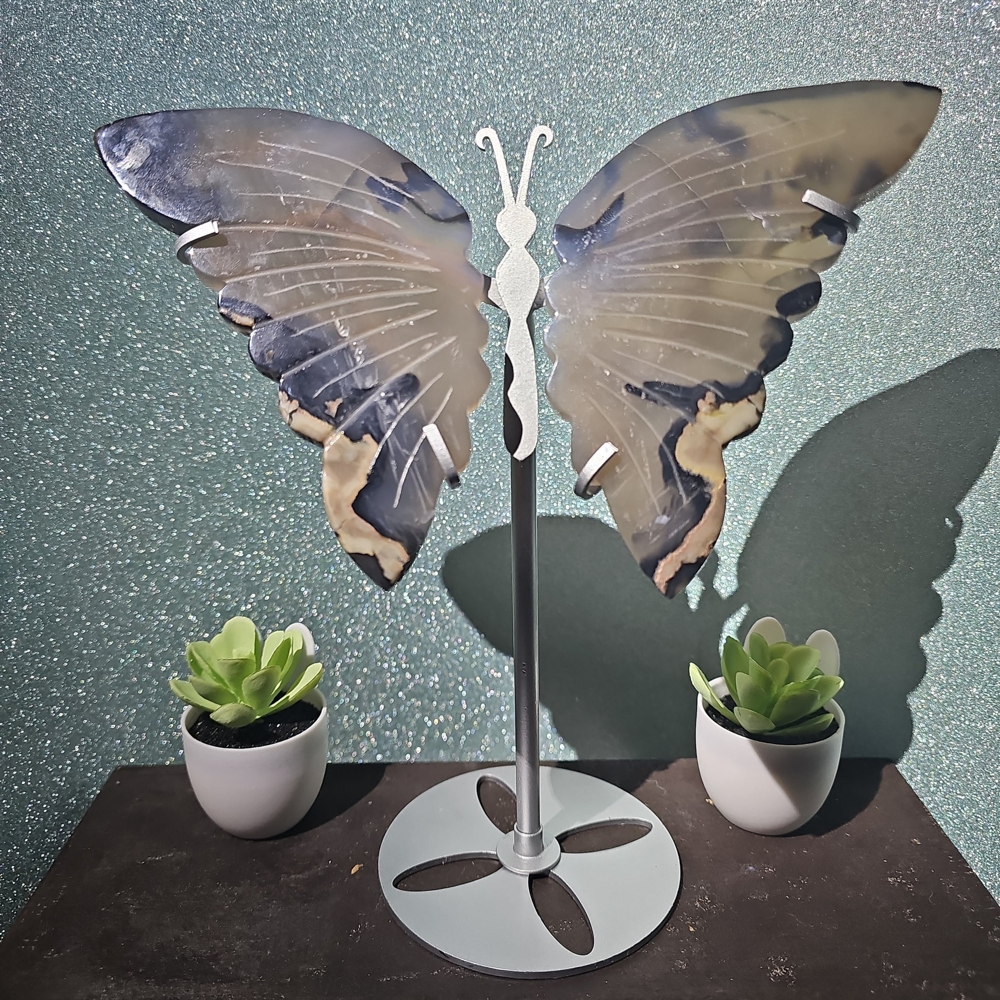 Introducing Volcanic Agate Butterfly Wings – a mesmerizing and enchanting accessory that embodies the delicate allure of butterflies fused with the raw beauty of volcanic agate. Handcrafted with precision and care, these wings showcase the intricate patterns and vibrant colors found in volcanic agate, resulting in a truly breathtaking piece of art.