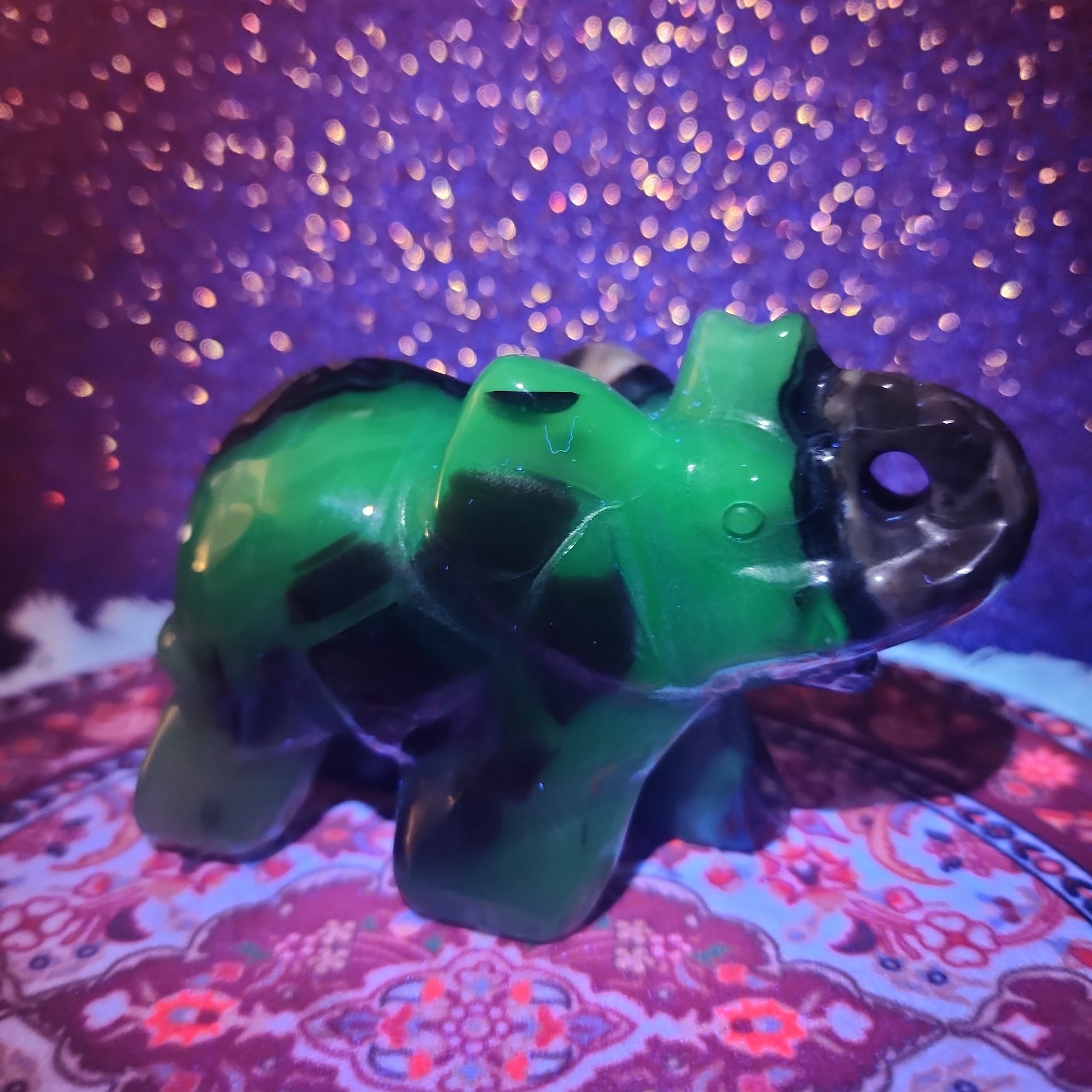 The volcanic agate, with its fiery and dynamic colors, pays homage to the molten forces that shape our world. The unique patterns and textures in the stone add depth and character to this extraordinary elephant sculpture. Each piece is meticulously crafted, reflecting the rich history and vibrant energy of the volcanic agate.